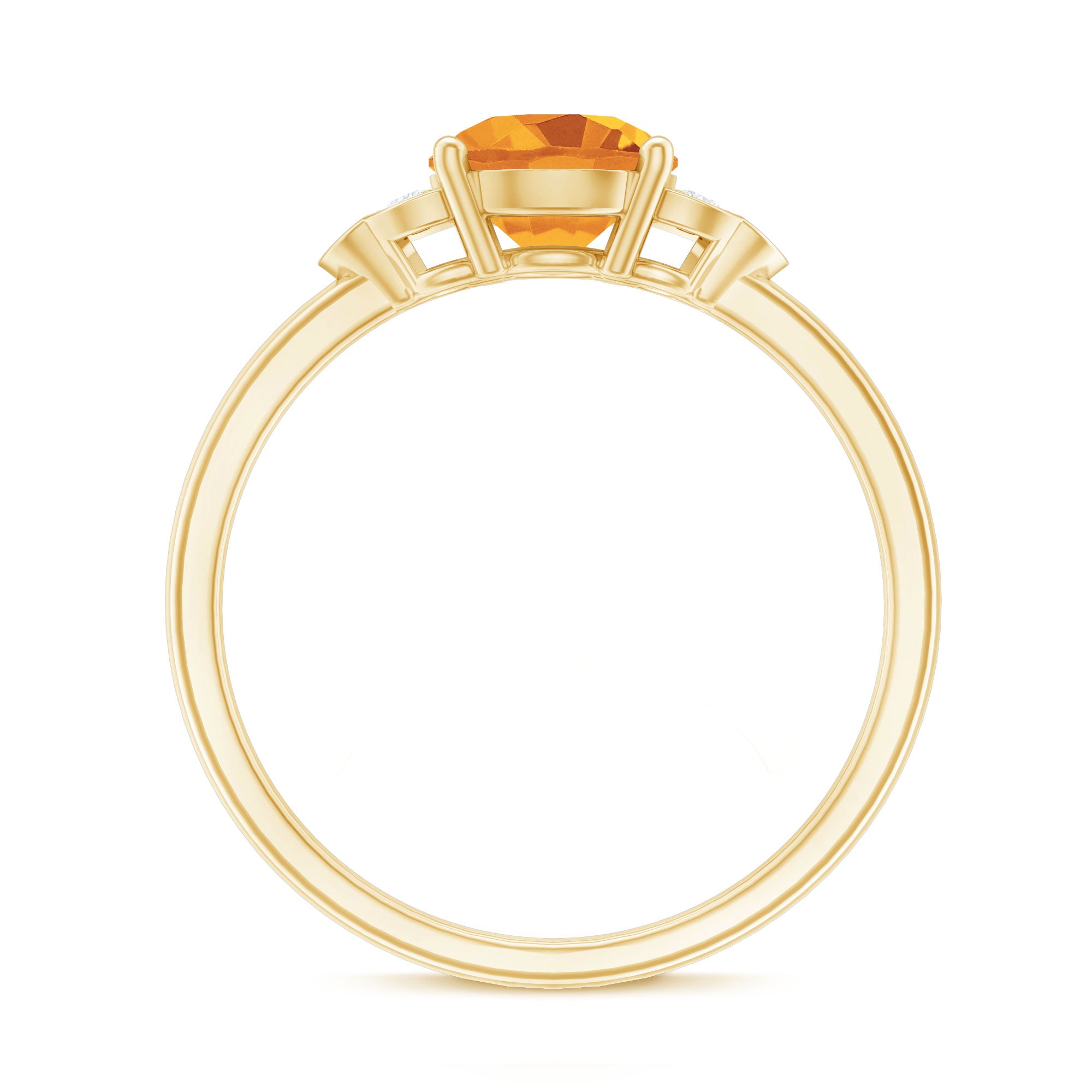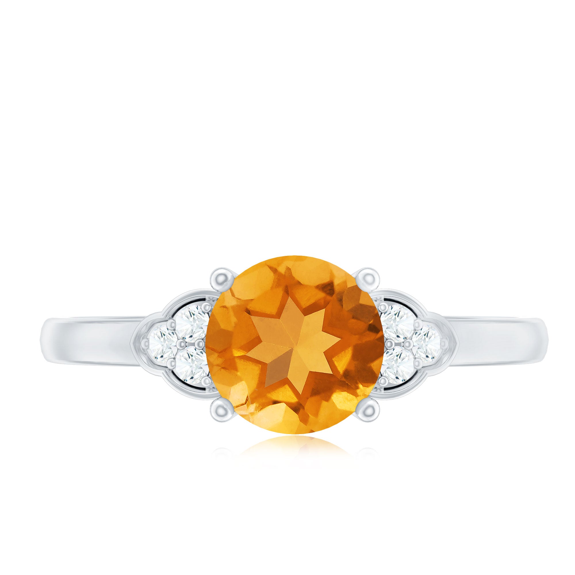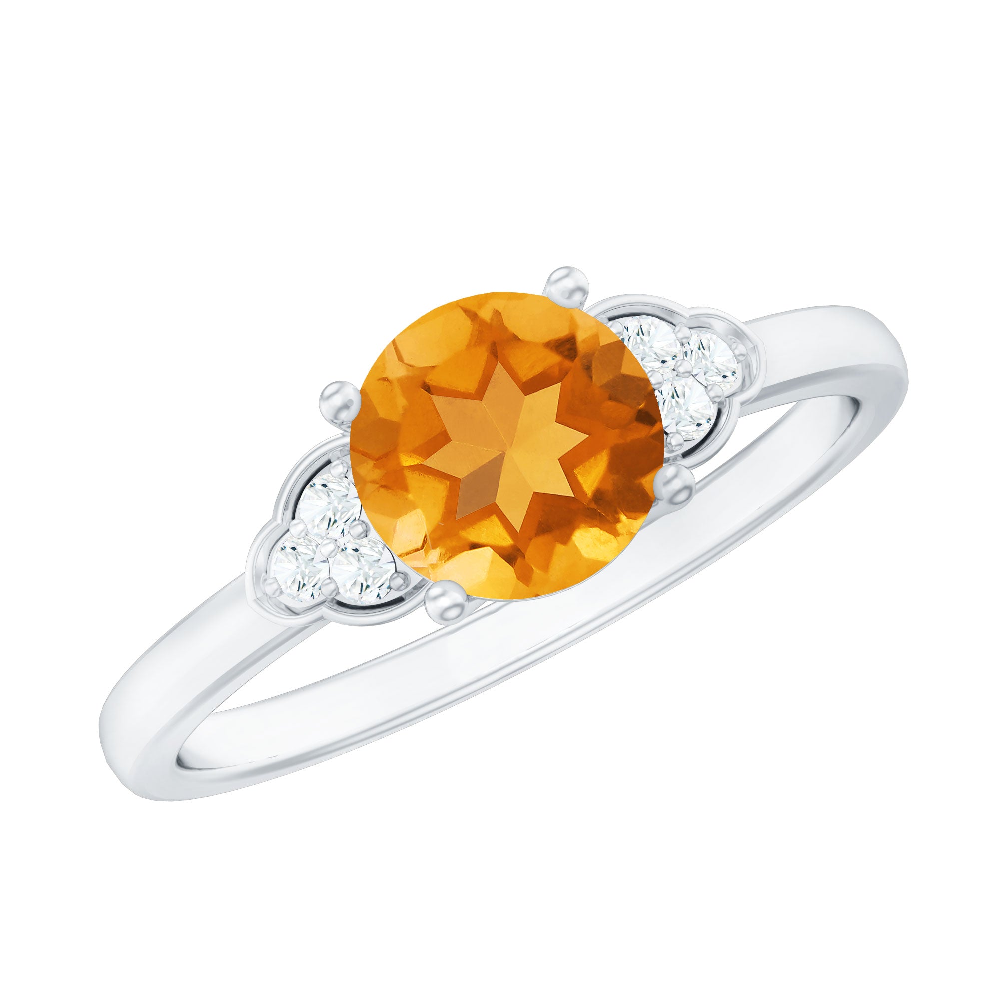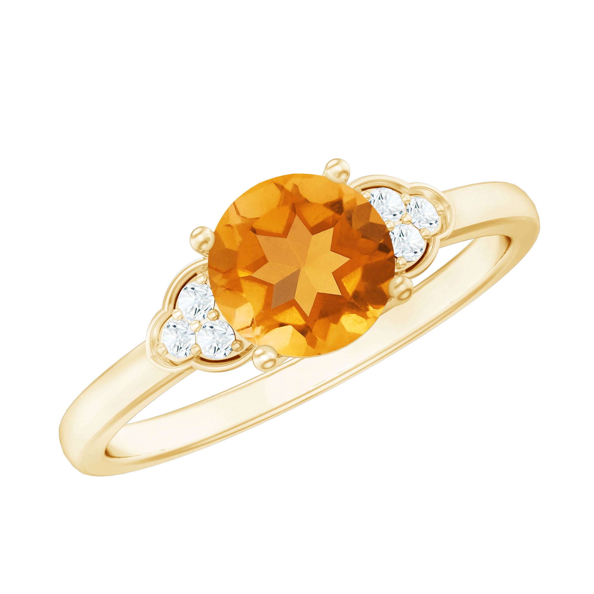 Beautifully designed for your loved one, this Engagement ring is adorned with Round Shape Citrine in a Prong setting and a Diamond Trio accent. Gift this charming ring to your partner on a special occasion.