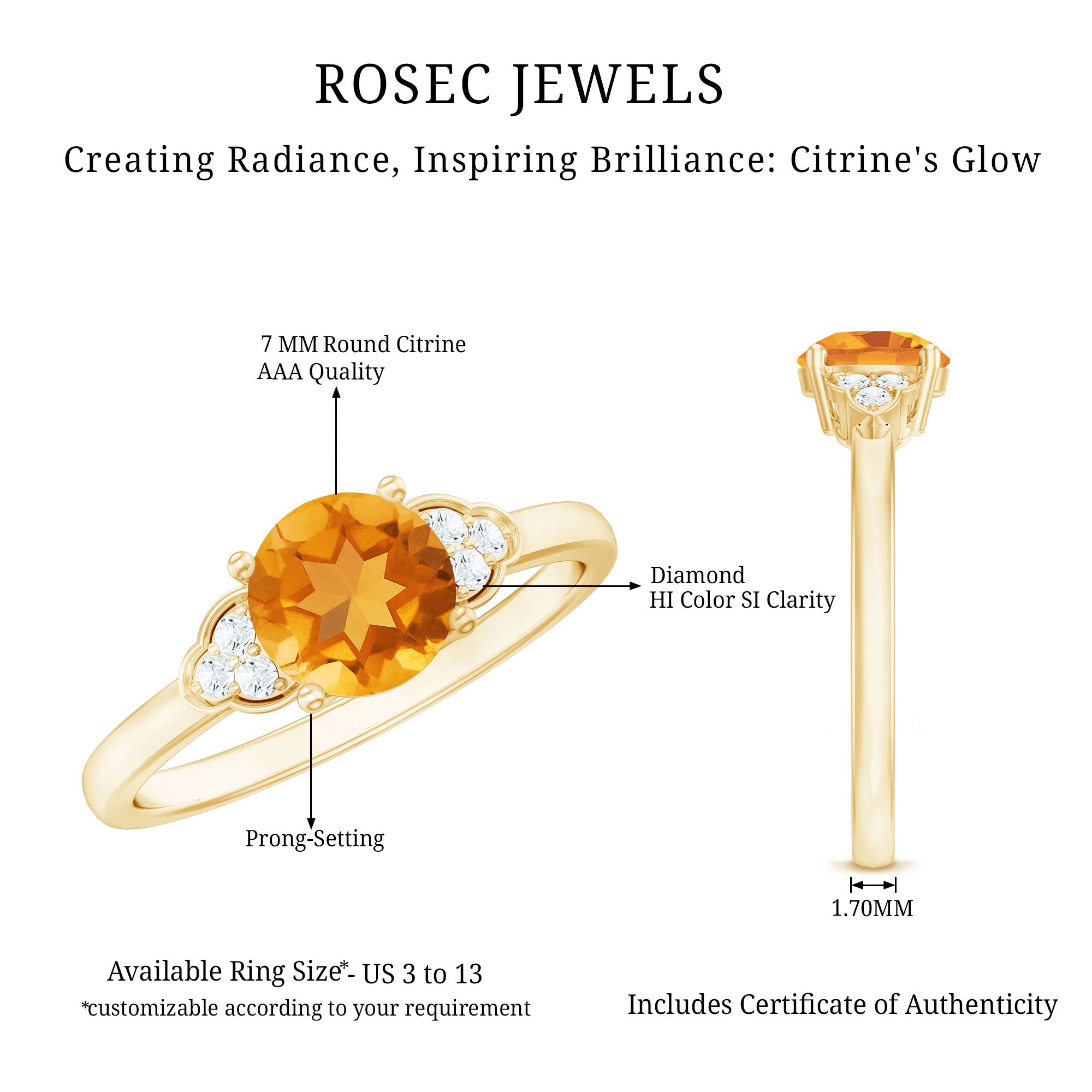 Natural 7mm Citrine Engagement Ring with Diamond Trio
