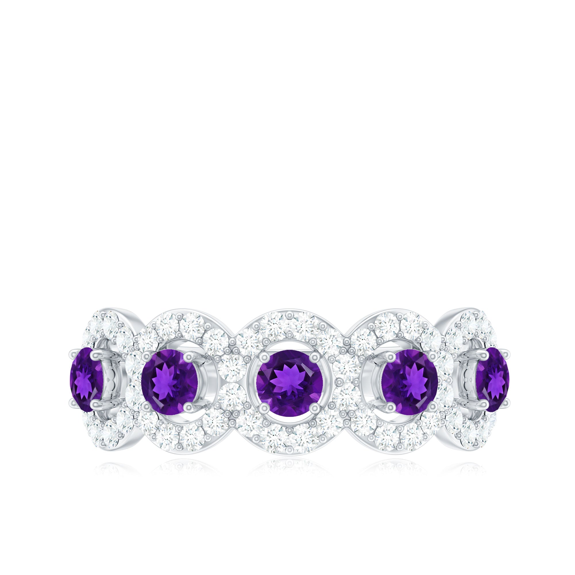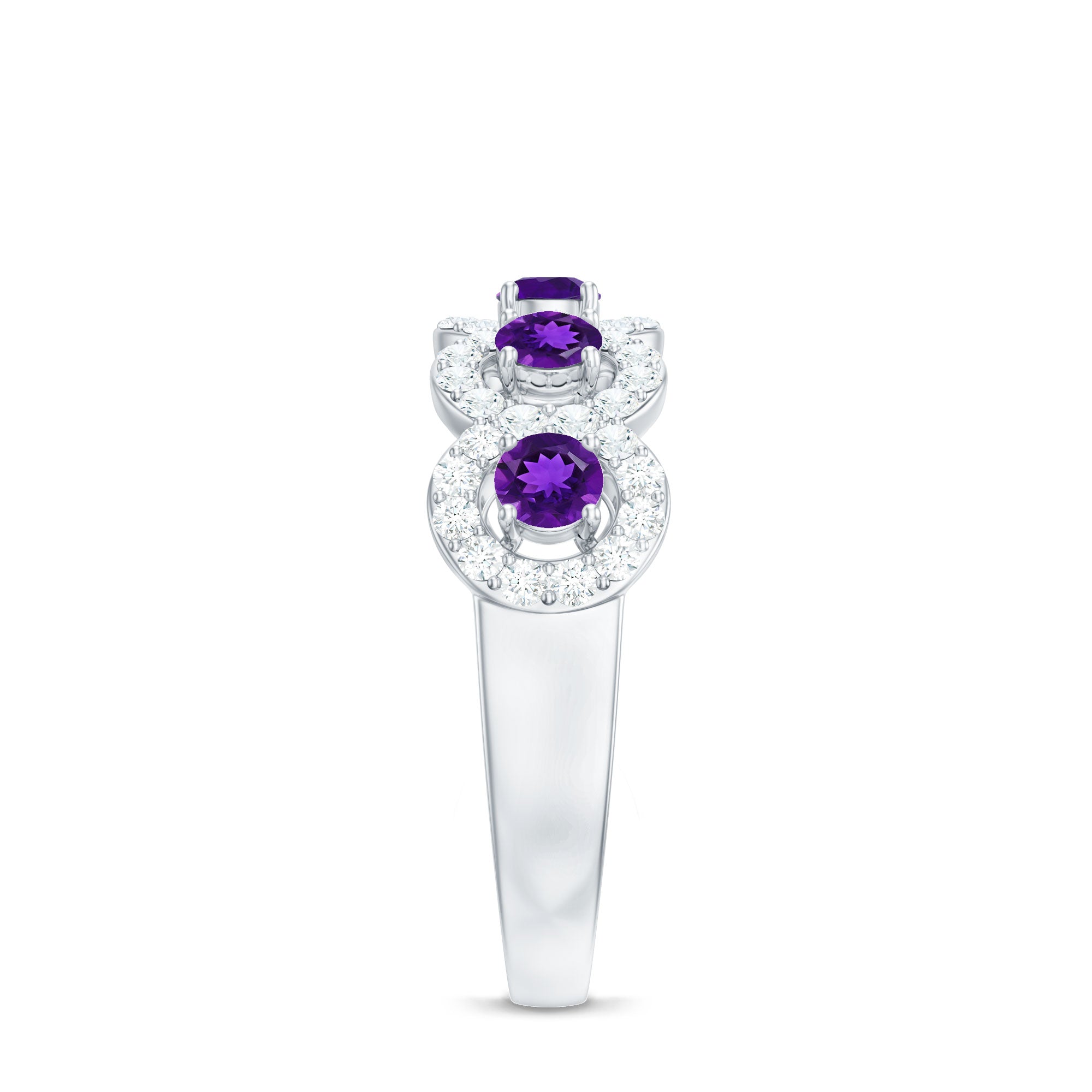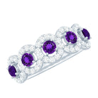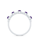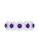 1.25 CT Classic Amethyst Half Eternity Band Ring with Diamond Halo