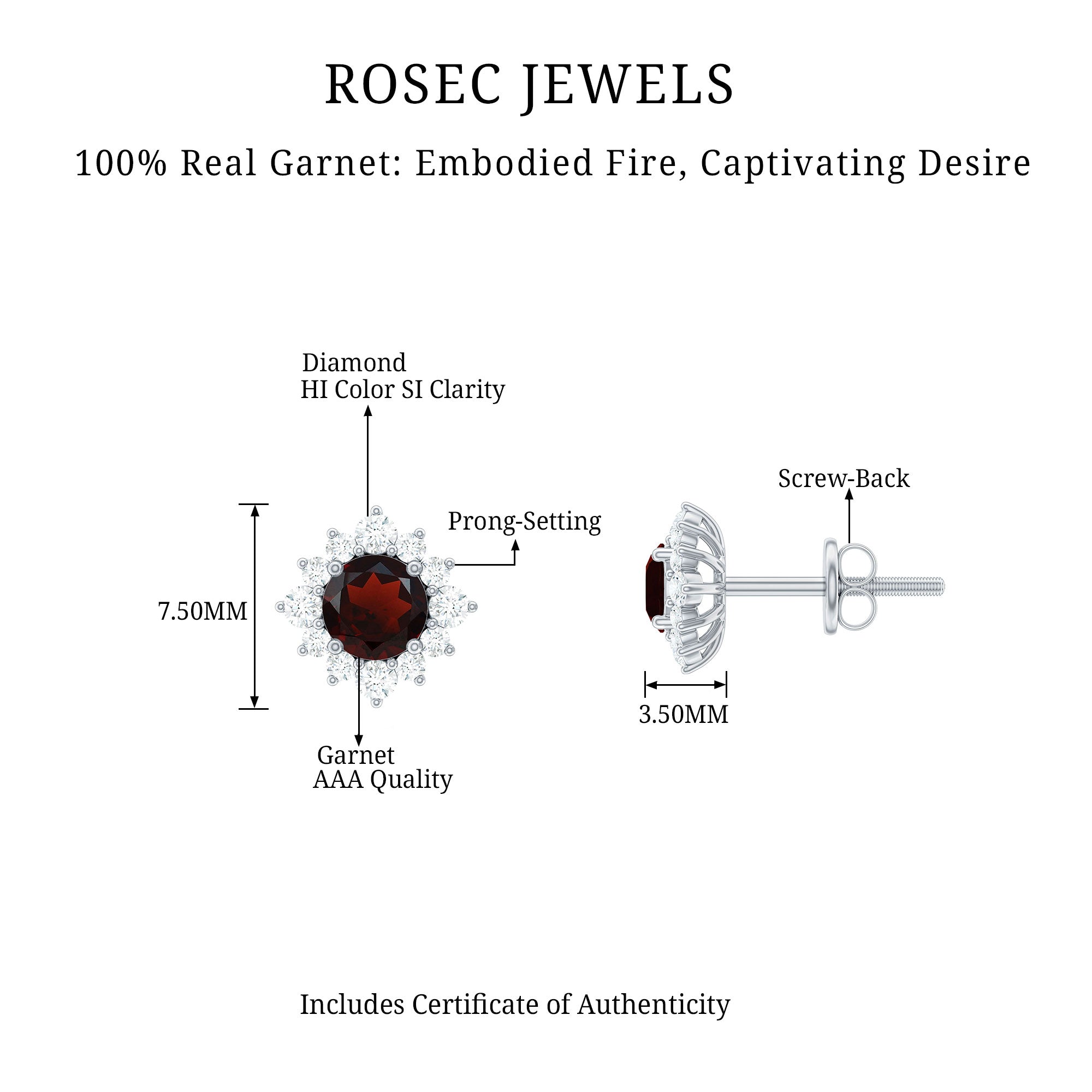 1.25 CT Classic Garnet Stud Earrings with Diamond Halo
