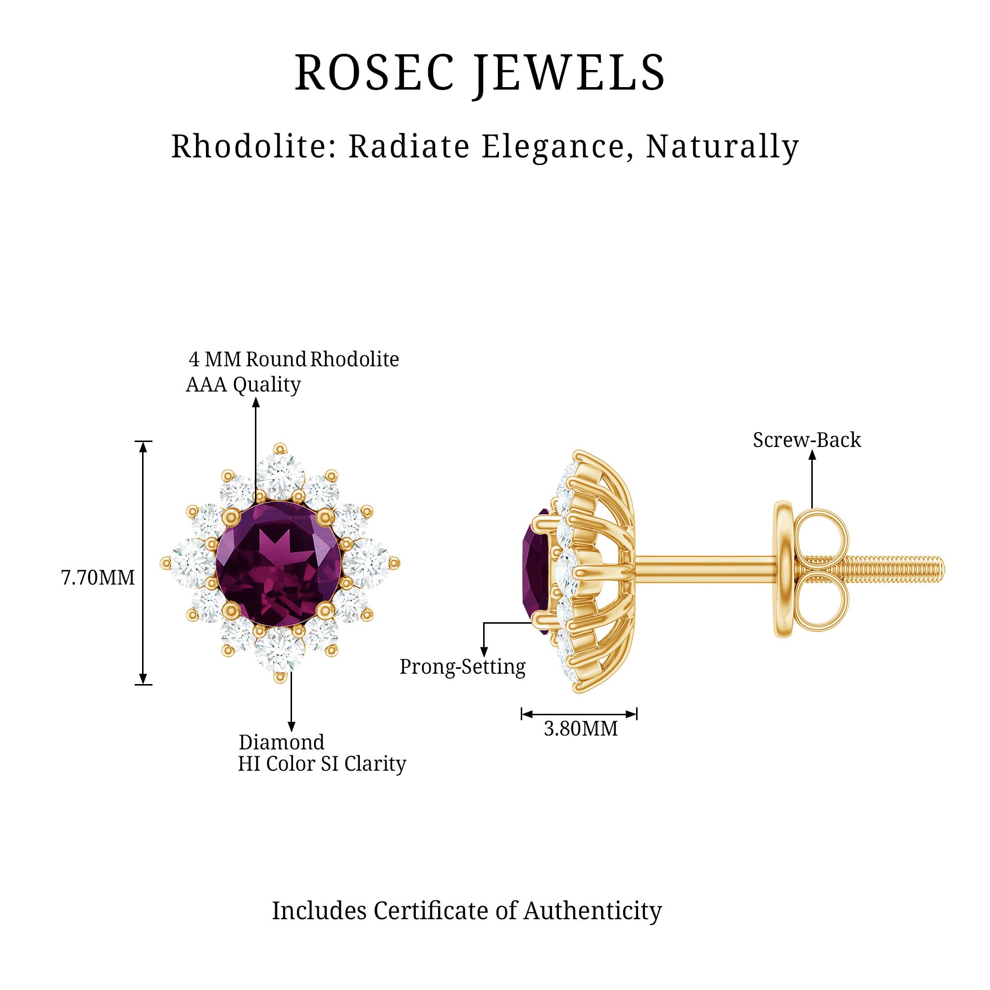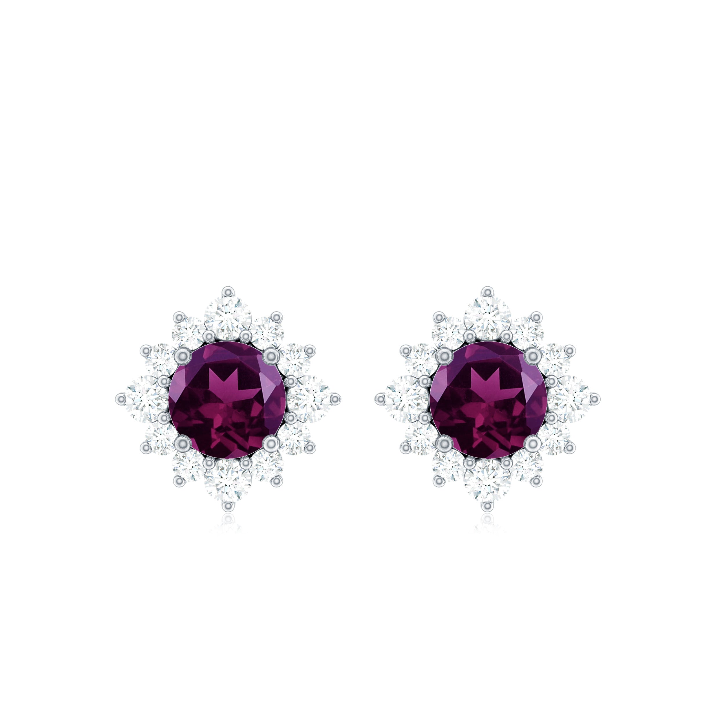1.25 CT Classic Rhodolite Stud Earrings with Diamond Halo