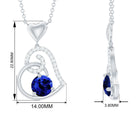 1.25 CT Created Blue Sapphire and Diamond Heart Drop Pendant