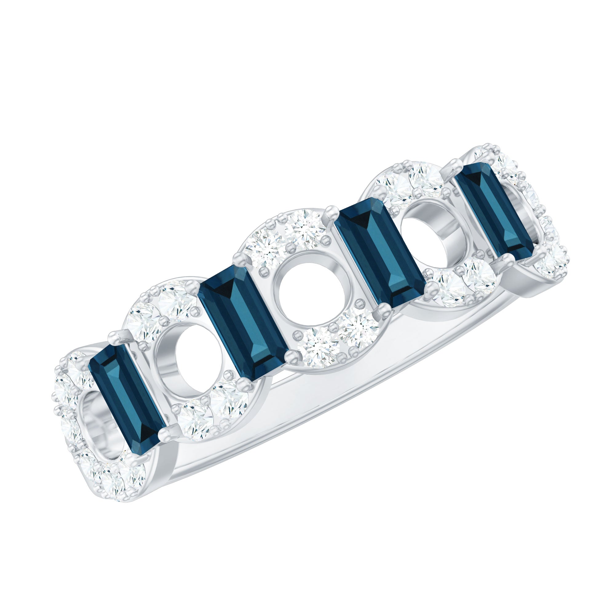 Baguette London Blue Topaz Art Deco Eternity Band with Diamond