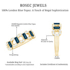 Crafted with timeless sophistication and distinctive allure, this Vintage Wedding Band serves as a remarkable emblem of love and togetherness. It showcases baguette cut london blue topaz and round diamond stones arranged in an alternating sequence across the central row, producing a striking and visually appealing contrast. Diamonds are set in a circle style, enhancing the overall brilliance. Each detail, from the glimmering edges to the deep allure of the topaz, contributes a special element to this meticulously designed Half Eternity Band. It is ideal for individuals who value exquisite details, significant materials, and a touch of added sparkle. The blend of AAA quality london blue topaz and dazzling HI-SI quality diamonds results in a timeless aesthetic with a dash of drama, perfect for commemorating significant events. Made with precision and care, the London Blue Topaz Eternity Ring is tailored for a secure and comfortable fit. It is presented in an elegant package, making it a delightful option for a wedding gift or a cherished memento for oneself. Whether you are making a proposal, commemorating a significant occasion, or presenting it as a gift to a cherished individual, this Blue Topaz and Diamond Ring is designed to endure and be cherished for many years. It is presented in an exquisite jewelry box, prepared to astonish, please, and integrate into your narrative.