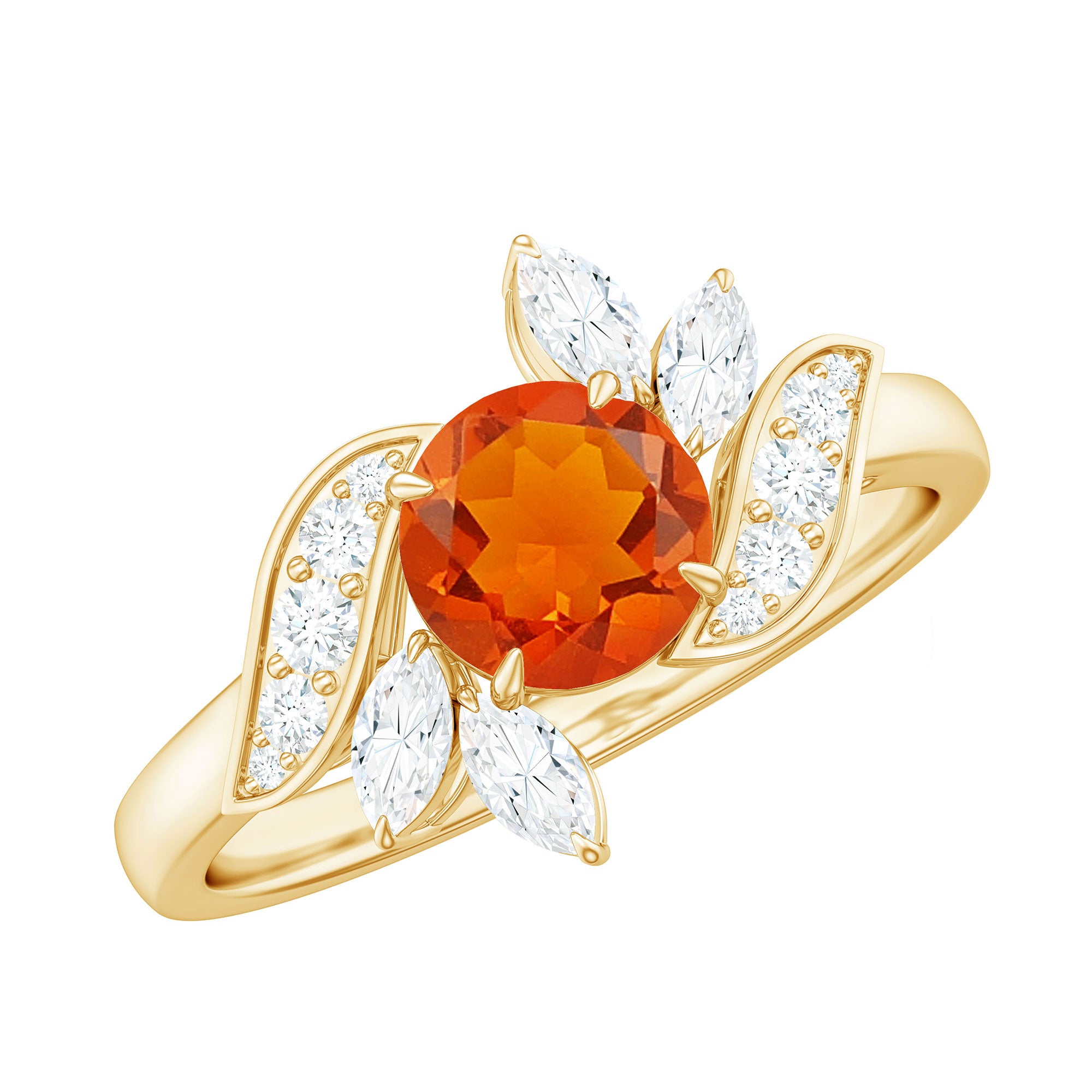 Every moment of yours is worth celebrating, so why not celebrate it with an alluring fine jewelry. This Fire Opal Engagement Ring is exactly what your are looking for your partner, Round Fire Opal and Marquise Diamond is held in Claw Setting and Round Diamond is held in prong setting are featured in leaf pattern. Show your love to your partner with this Vintage Fire Opal Ring.