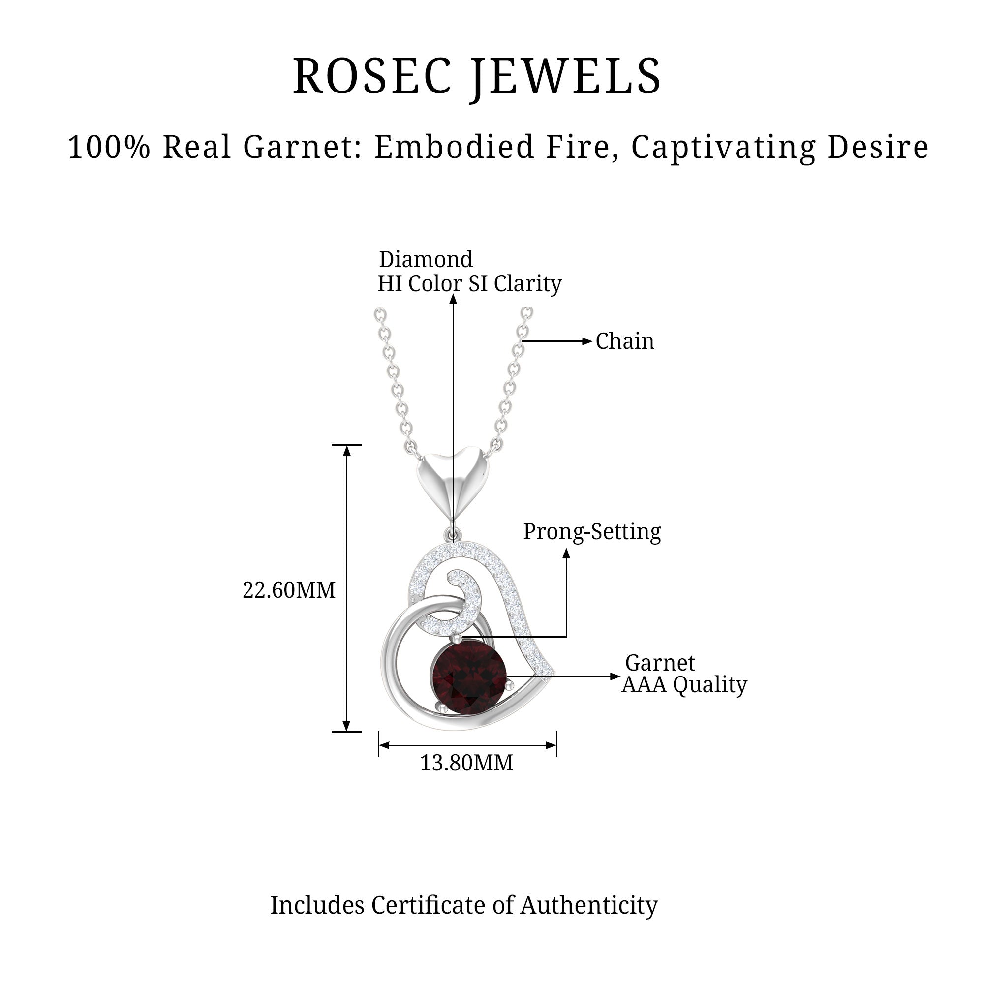Be Dazzle with these beautiful Heart Drop Pendant embellished with Round Shape Garnet as Solitaire in 3 Prong Setting and Round Shape Diamond in Prong Setting, Crafted in Solid Gold.
