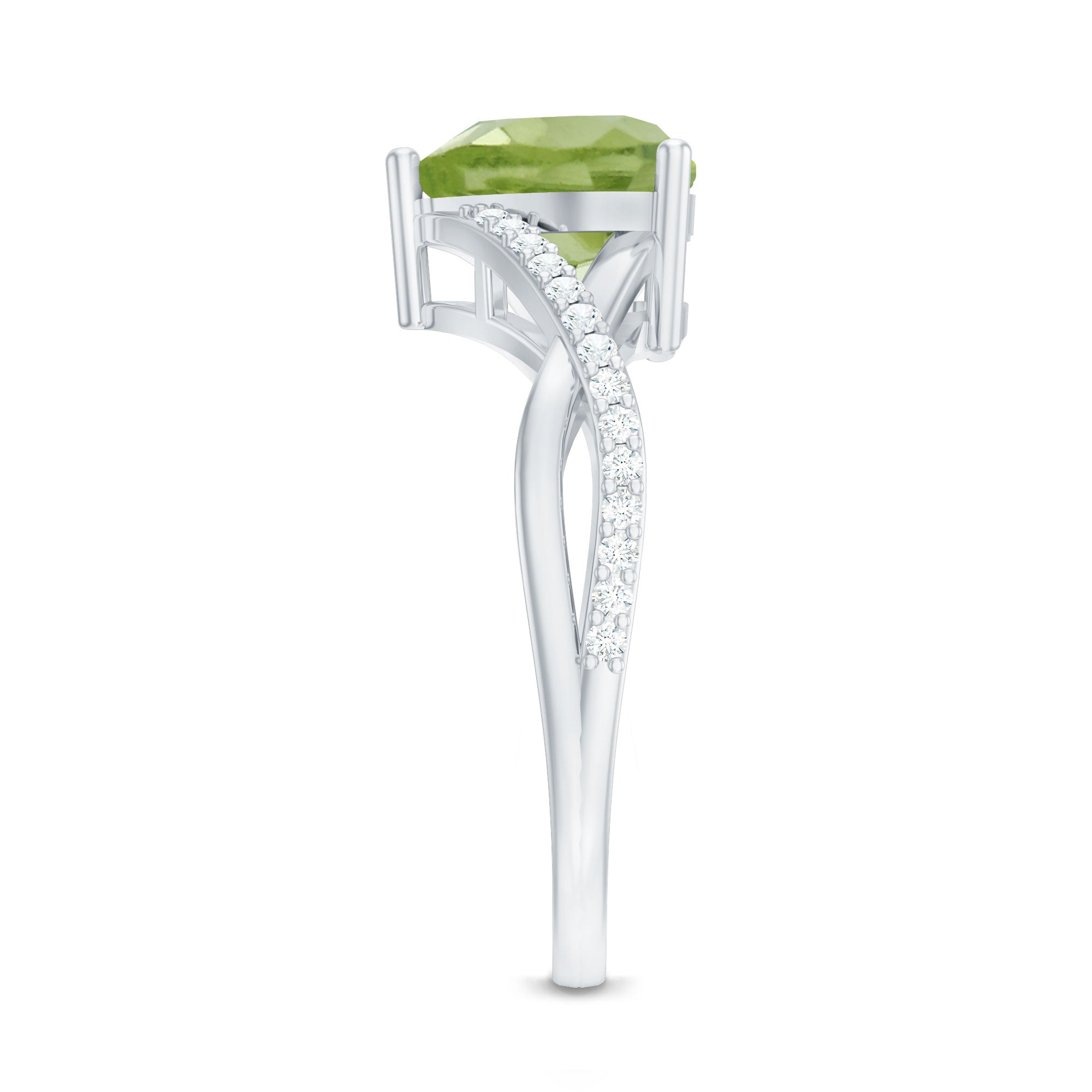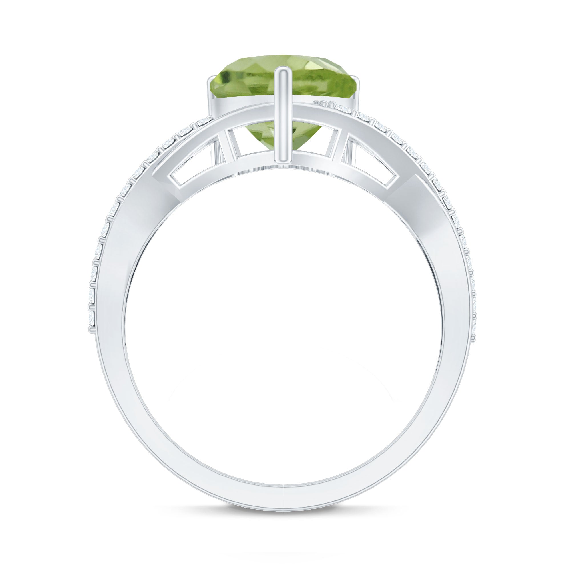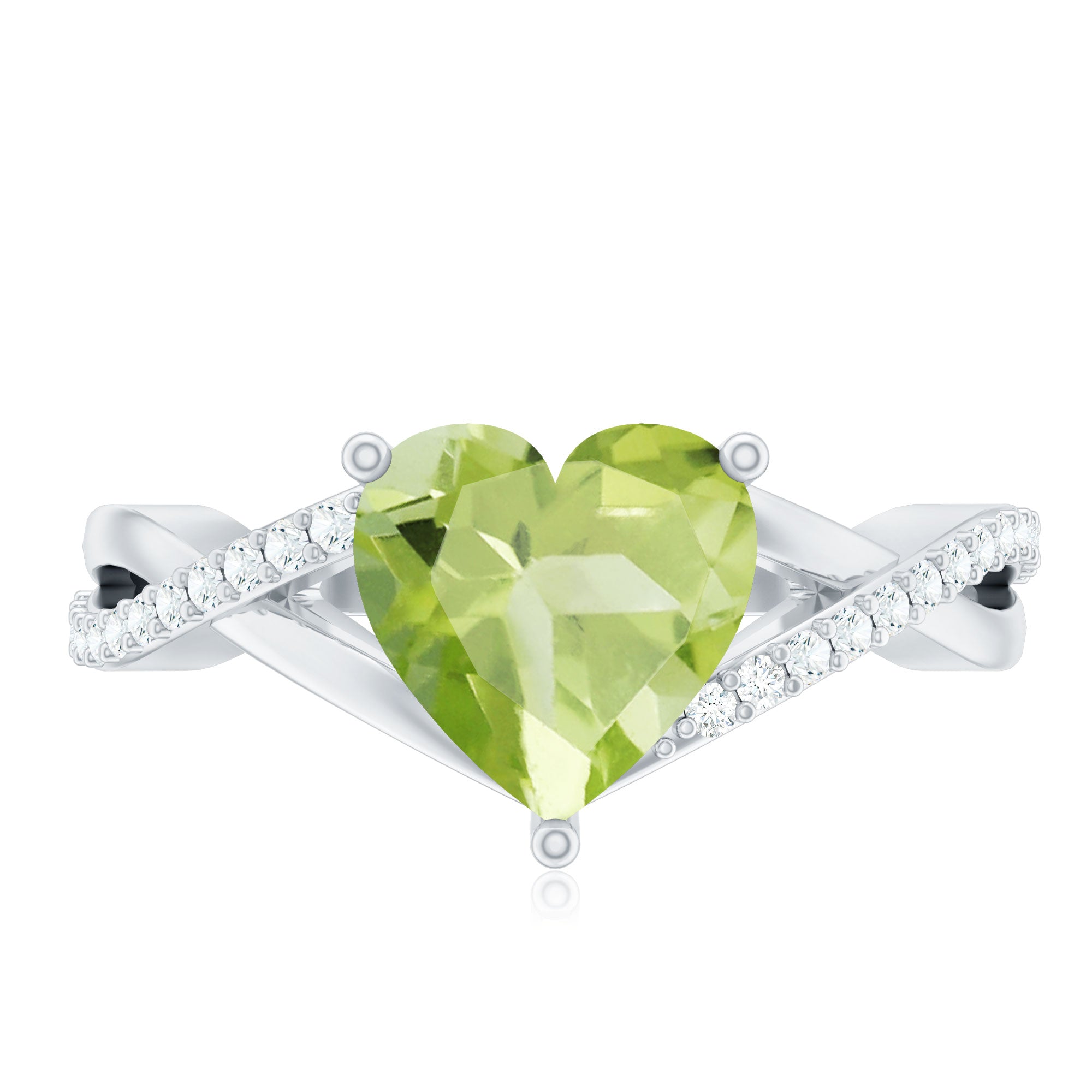 1.25 CT Heart Shape Peridot Solitaire Ring with Diamond Accent