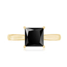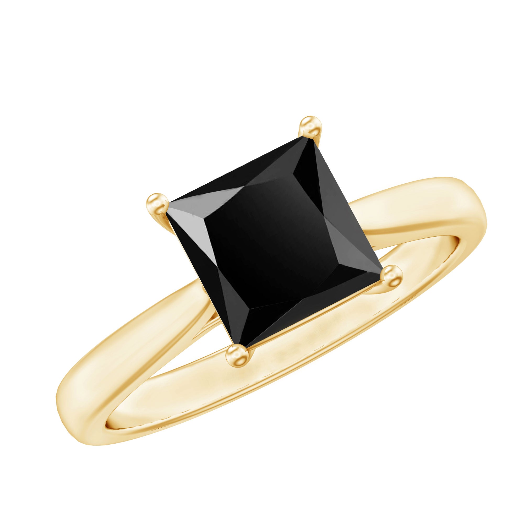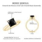 This Solitaire Ring is embellished with Princess Cut Lab Created Black Diamond as a Solitaire and Round Shape Diamonds are set in Bezel Setting. This Princess Cut Ring is mounted in Solid Gold.