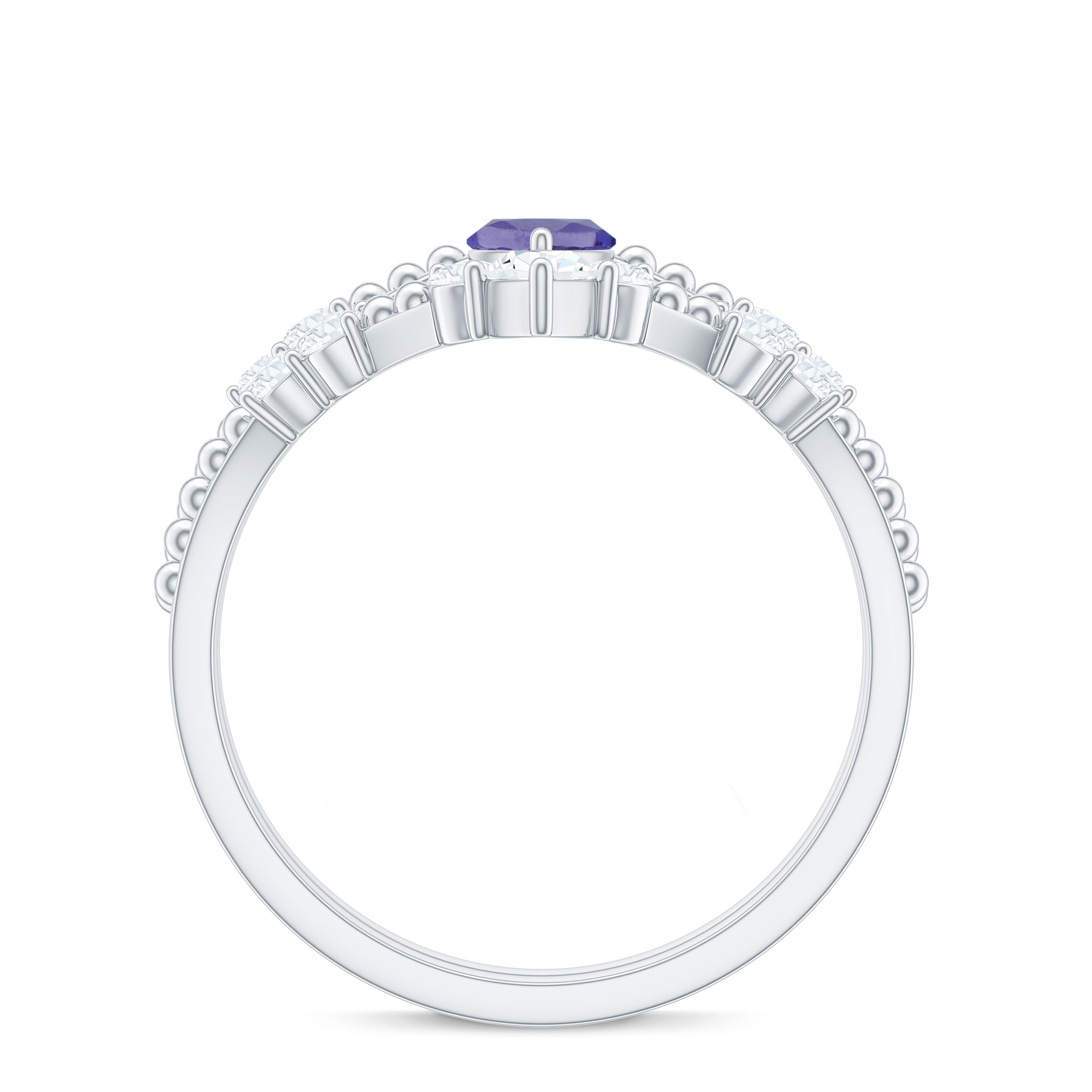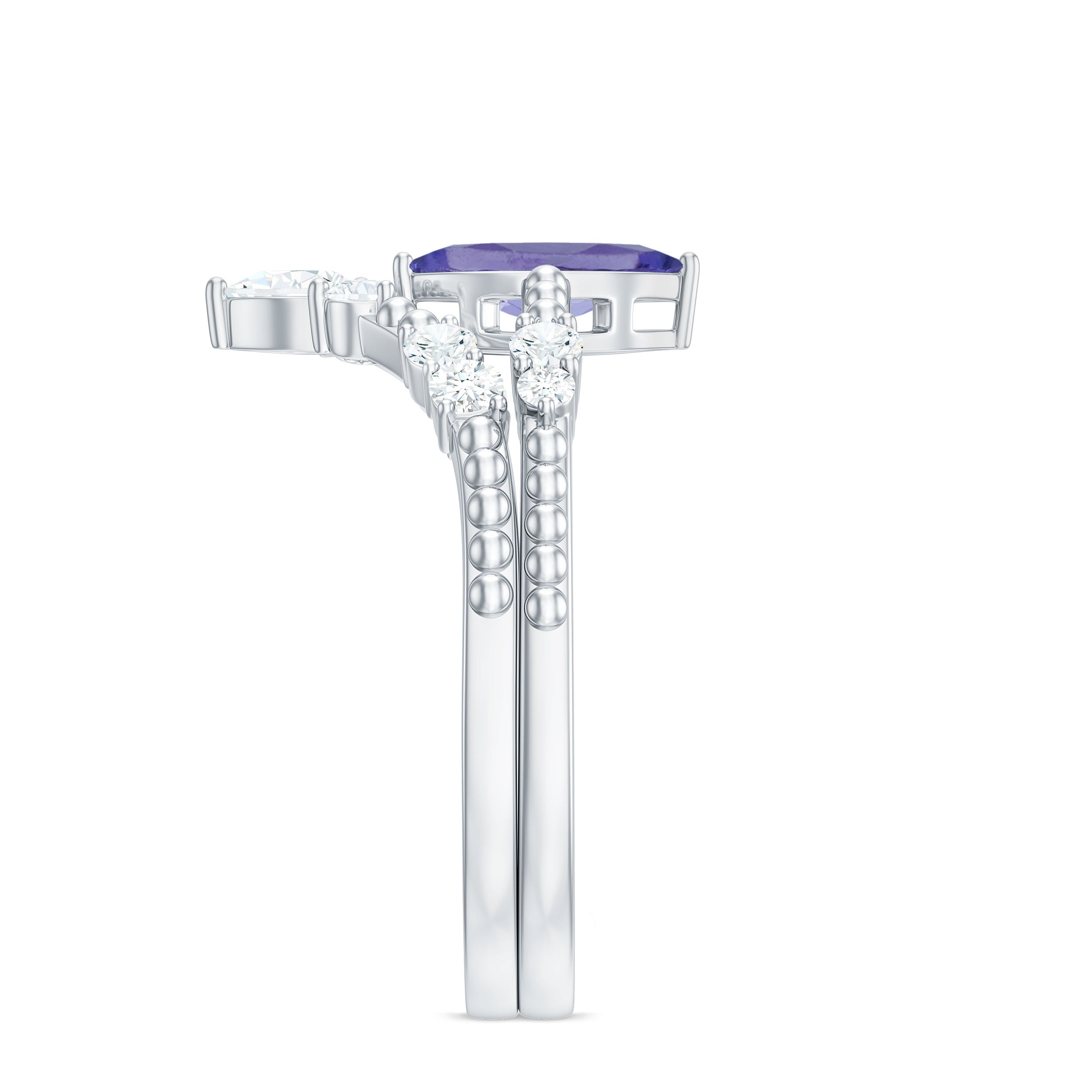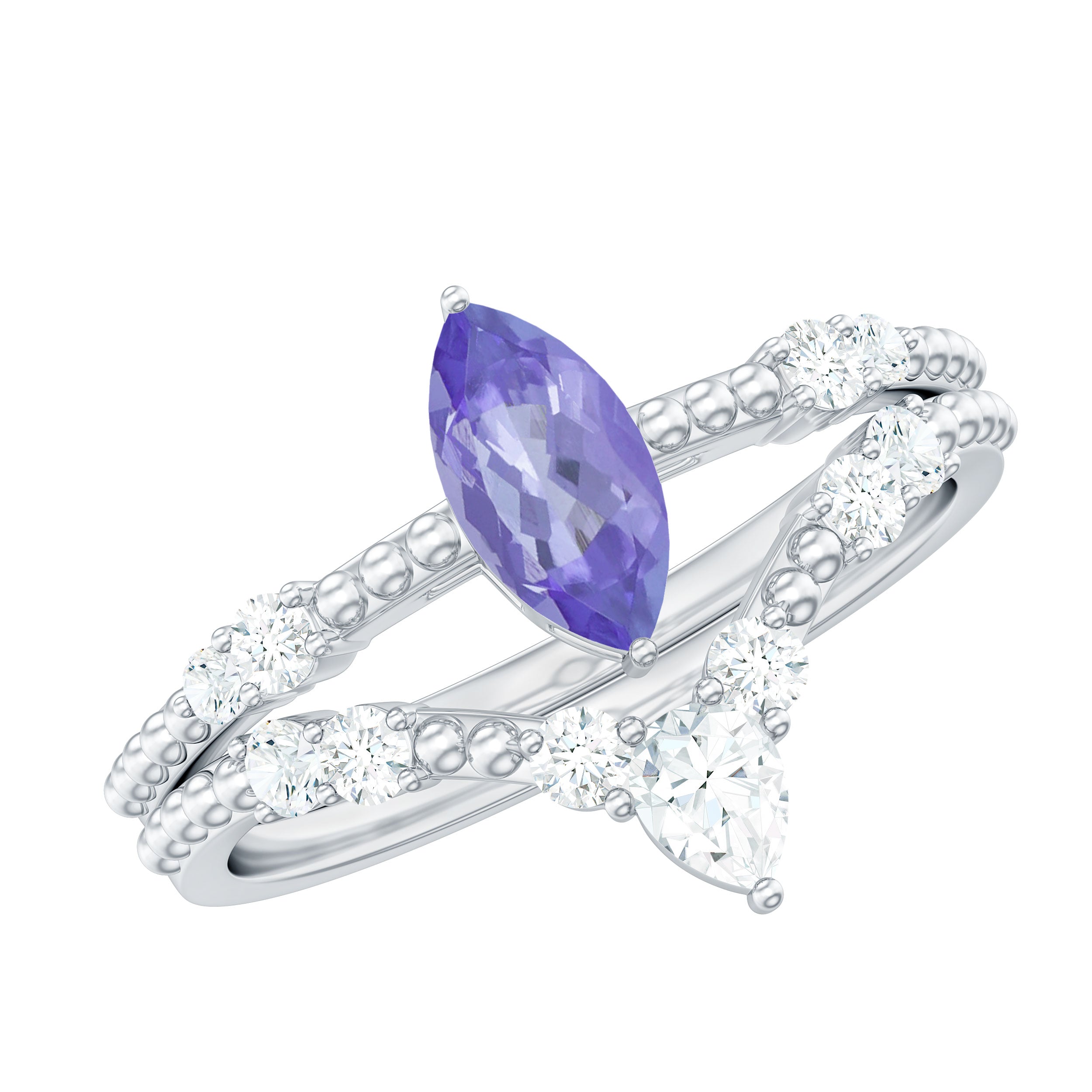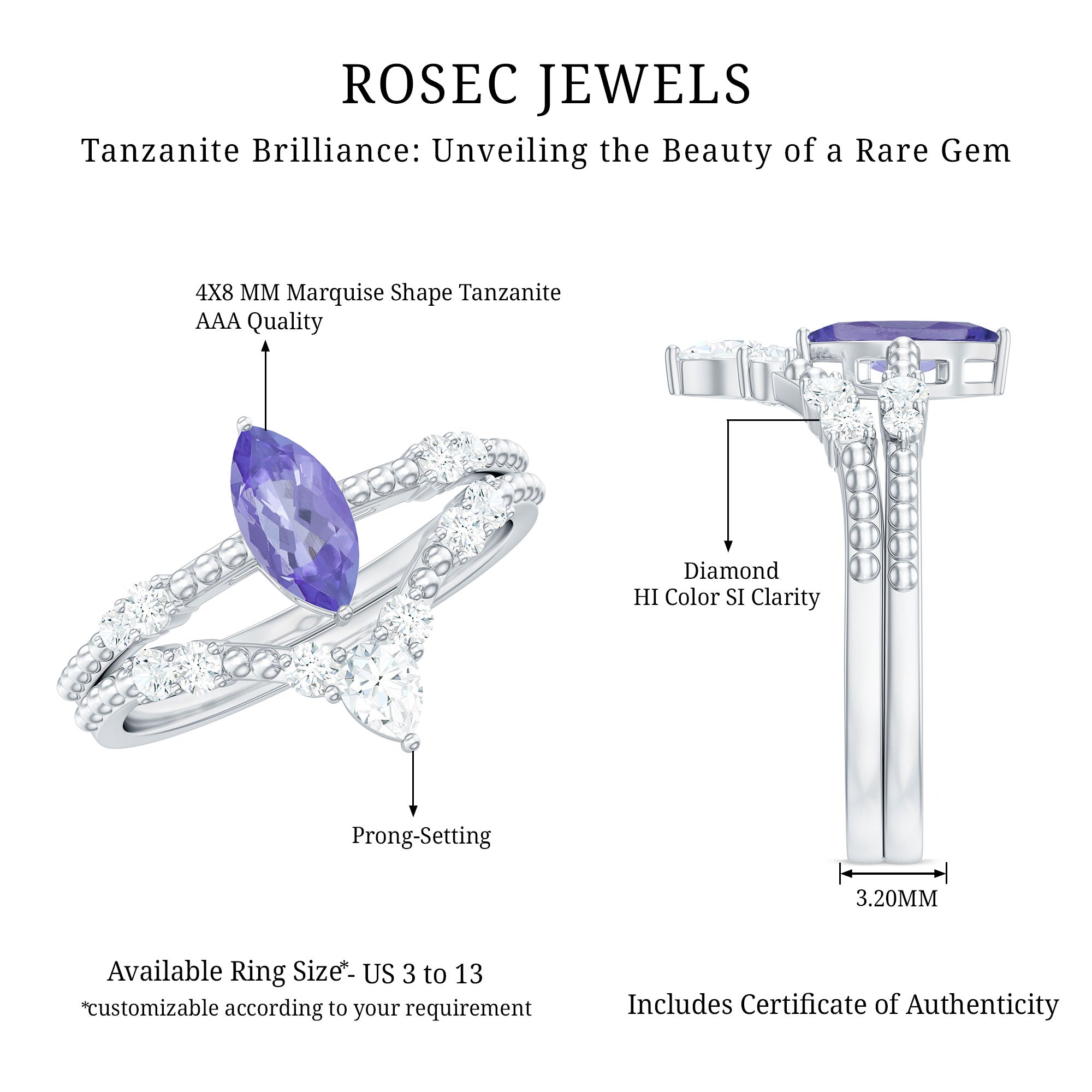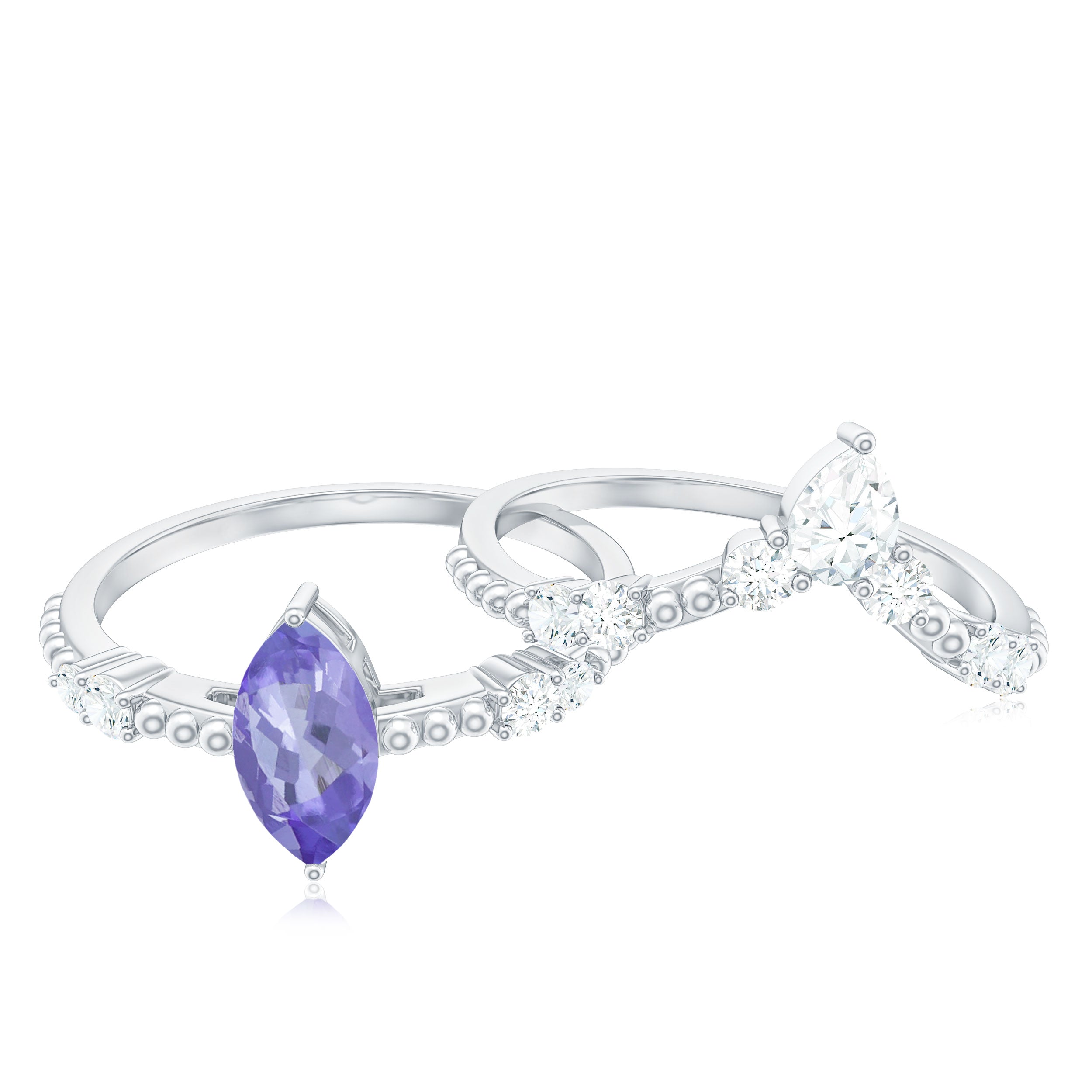 1.25 CT Marquise Solitaire Tanzanite and Diamond Ring Set