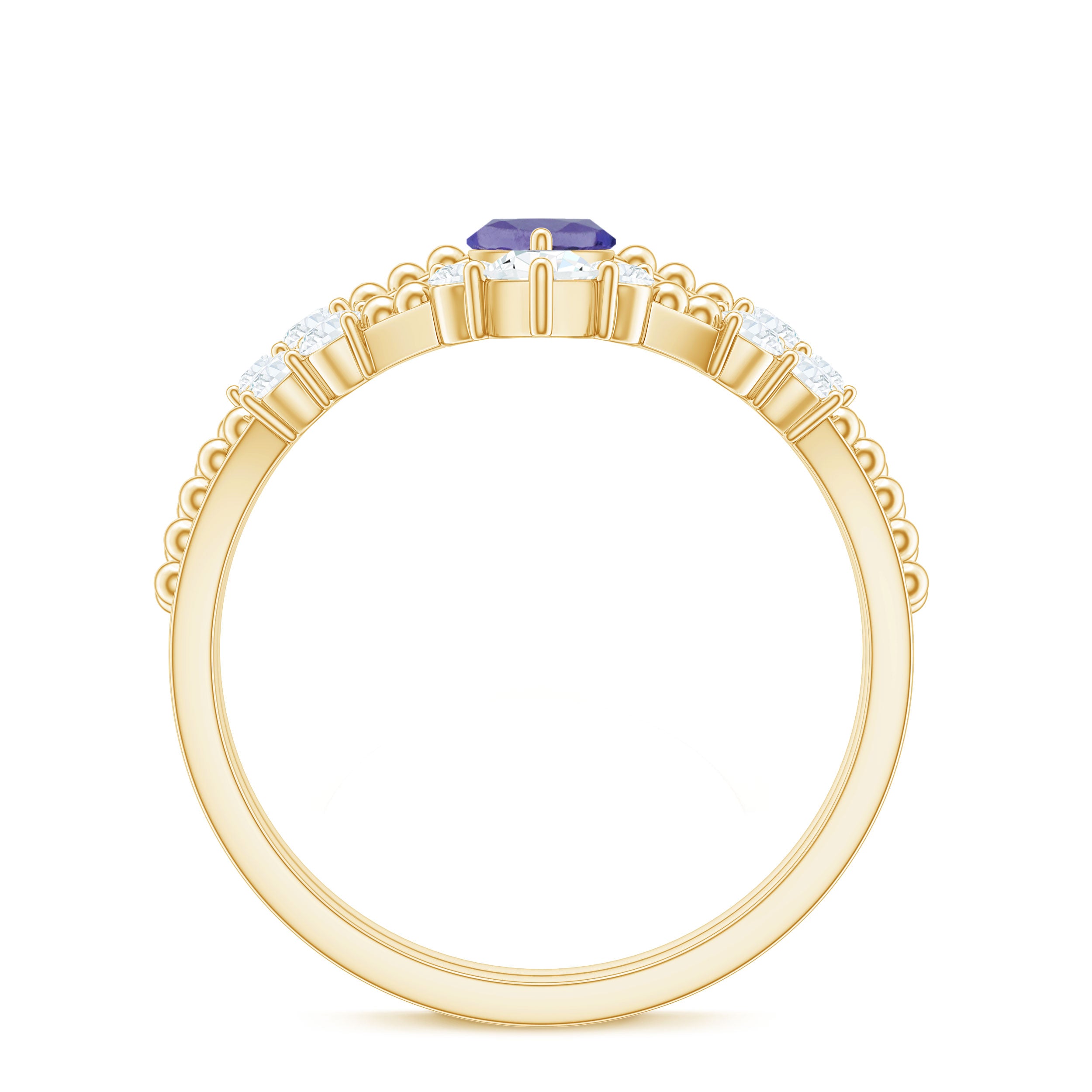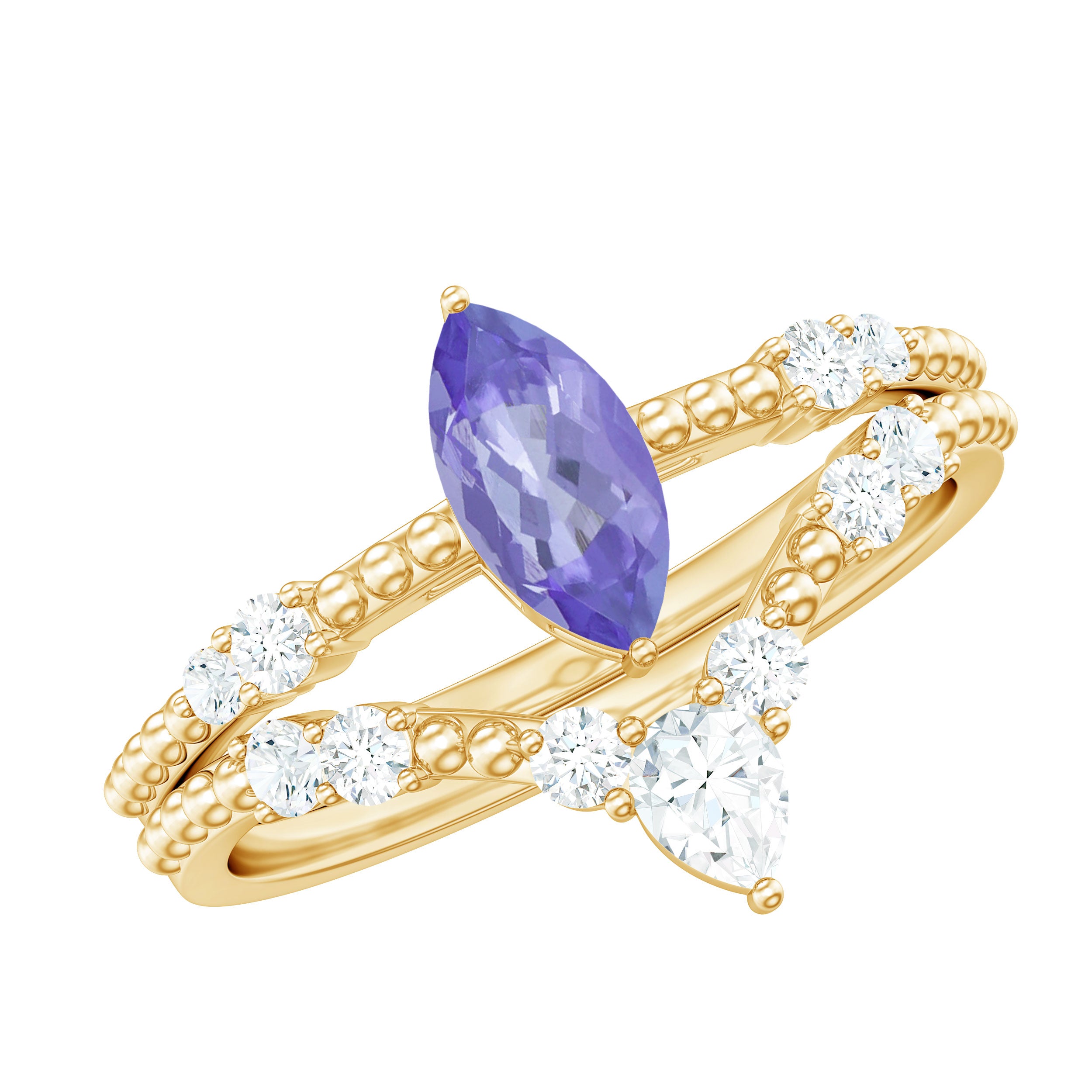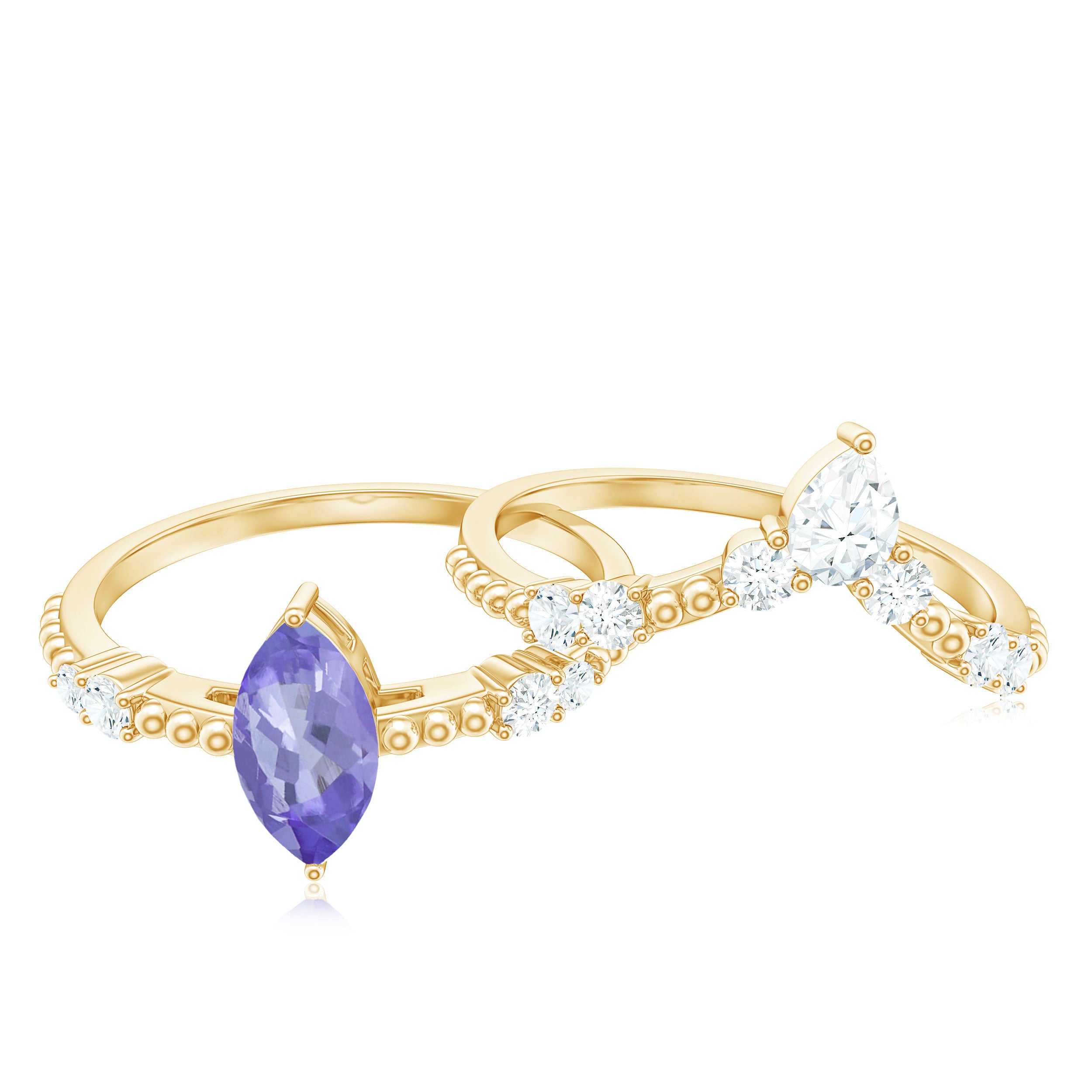 Glitter her attire with this Tanzanite Ring Set. Adorned with Marquise Cut Tanzanite in Prong Setting and Diamond on Solitaire Ring Set. Composed of Gold, this Ring Set is a must have jewelry for your wardrobe jewelry.