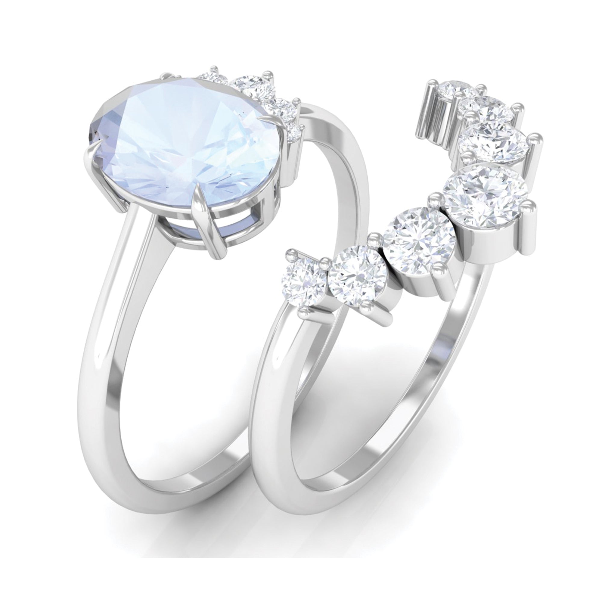 1.25 CT Moonstone and Diamond Engagement Enhancer Ring Set