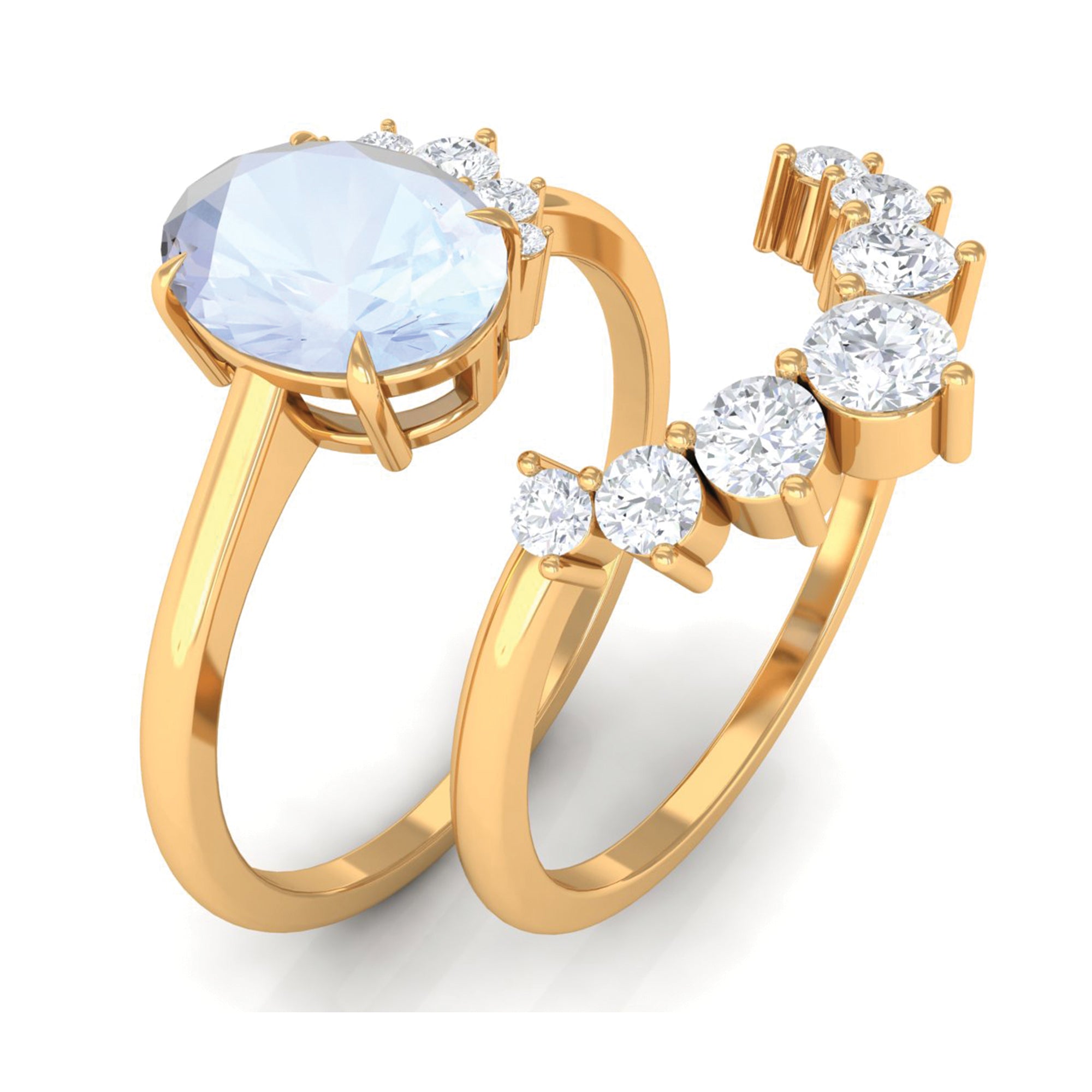A Perfect and Lovely Engagement Enhancer Ring Set has adorned with Oval Shape Moonstone set as a solitaire in a claw setting and Round Shape Diamond in a prong setting on enhancer band. This Engagement Enhancer Ring Set is crafted in solid gold.