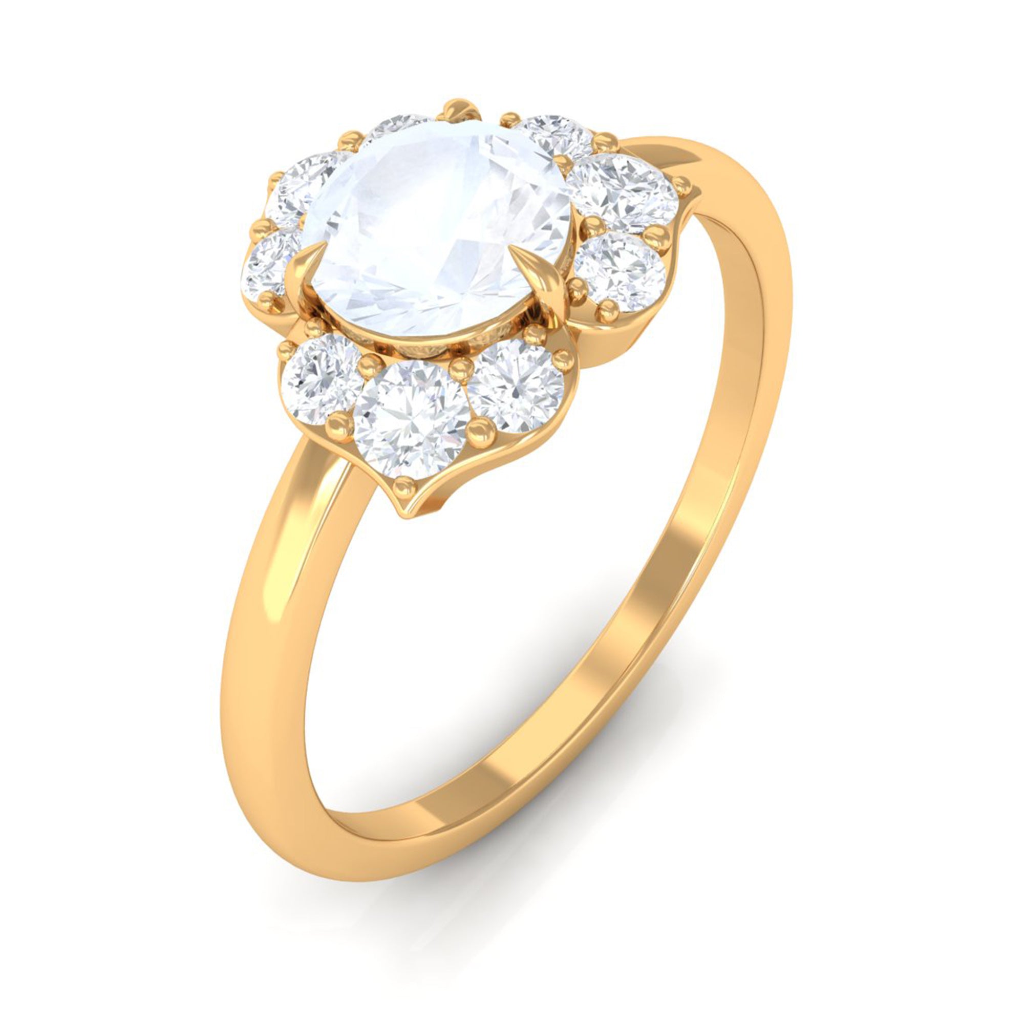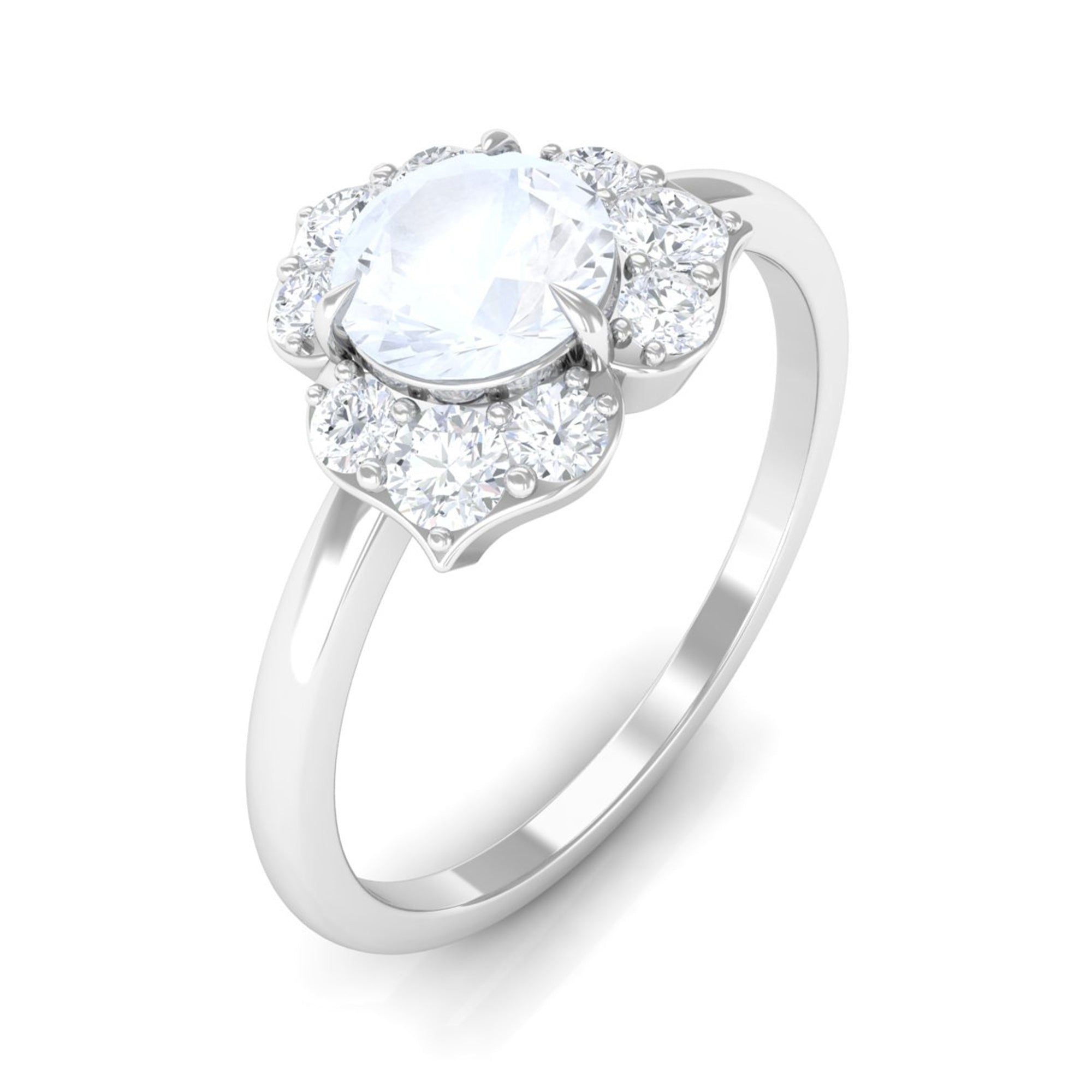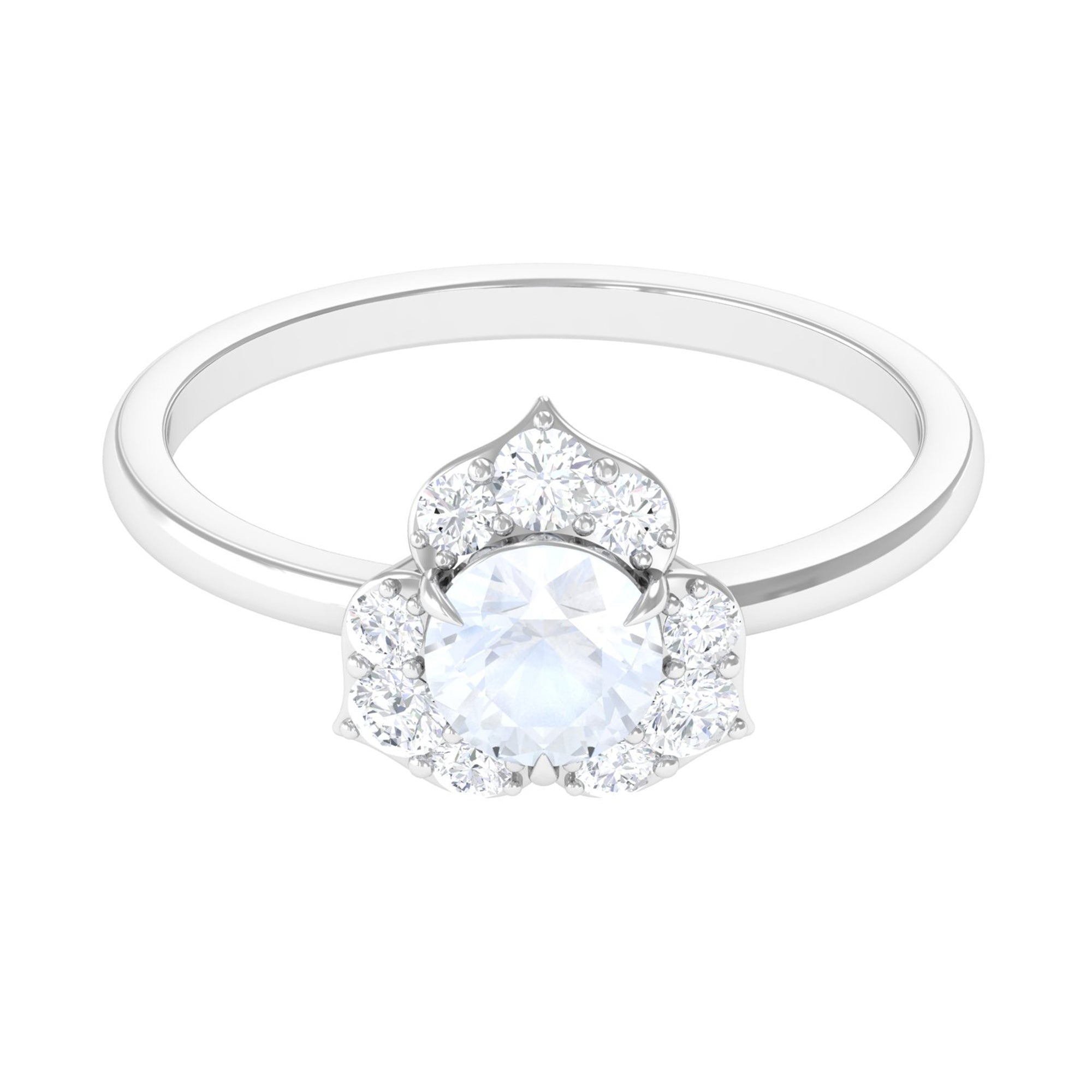 1.25 CT Moonstone and Diamond Floral Engagement Ring