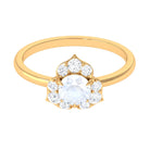 Ask for her hand with this enchanting Flower Engagement Ring. Fashioned in Gold, this brilliant style features a Round Moonstone center stone bordered with a Flower-Shaped frame of smaller accent Diamond stones.