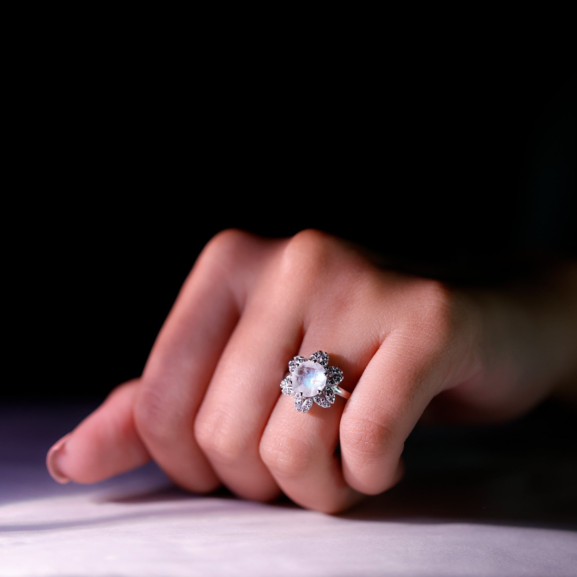 1.25 CT Moonstone and Diamond Floral Halo Ring