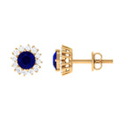 Experience the epitome of class and sophistication with these stunning Blue Sapphire Stud Earrings. Each earring showcases a round-cut blue sapphire, exuding a mesmerizing sparkle that is further enhanced by a halo of Diamond. The combination of the deep blue sapphire and the brilliant Diamond stones creates an enchanting contrast, resulting in an exquisite pair of earrings. These Blue Sapphire and Diamond Earrings make for a truly remarkable gift, symbolizing love and elegance for your special lady.