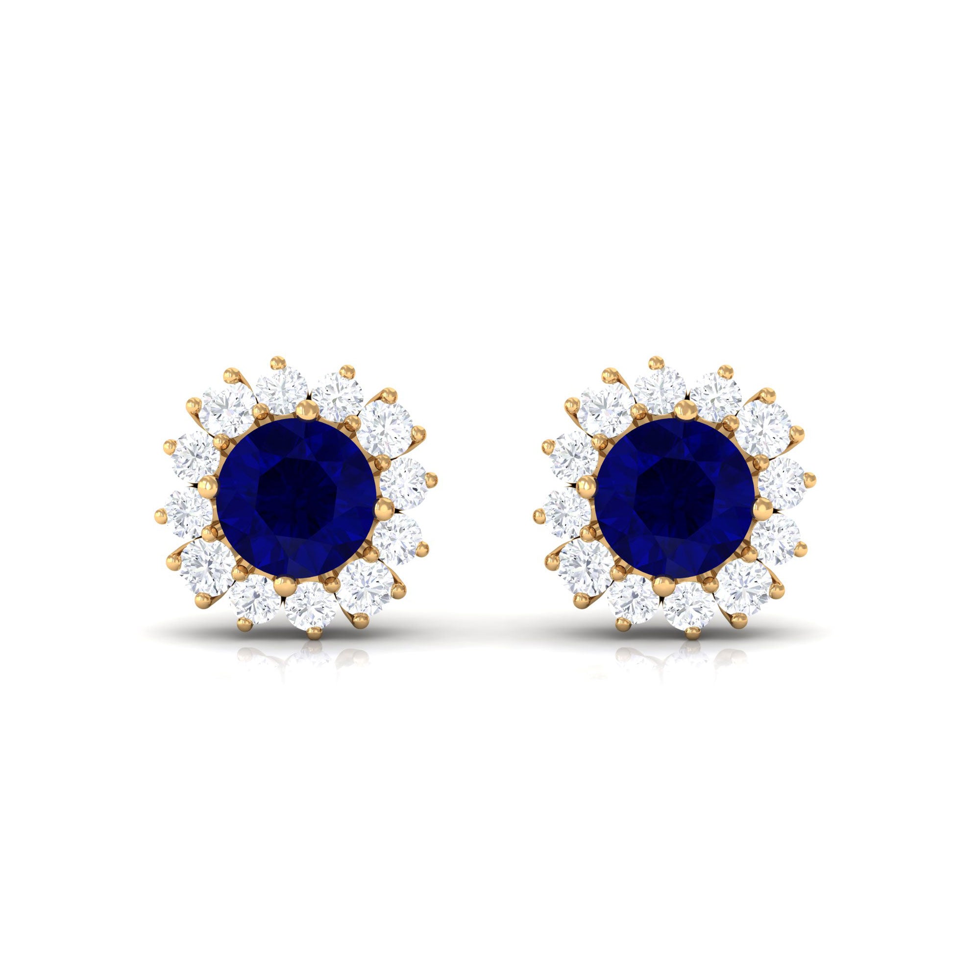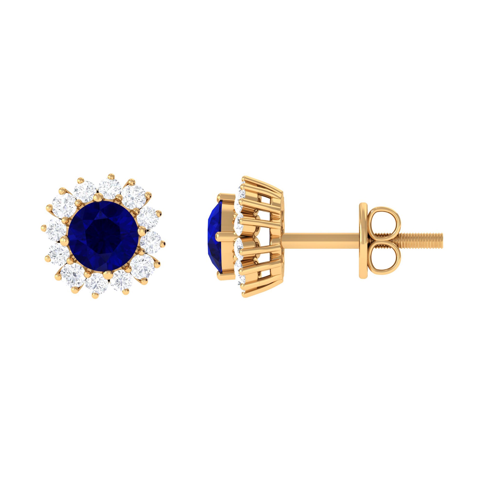 1.25 CT Natural Blue Sapphire and Diamond Halo Stud Earrings