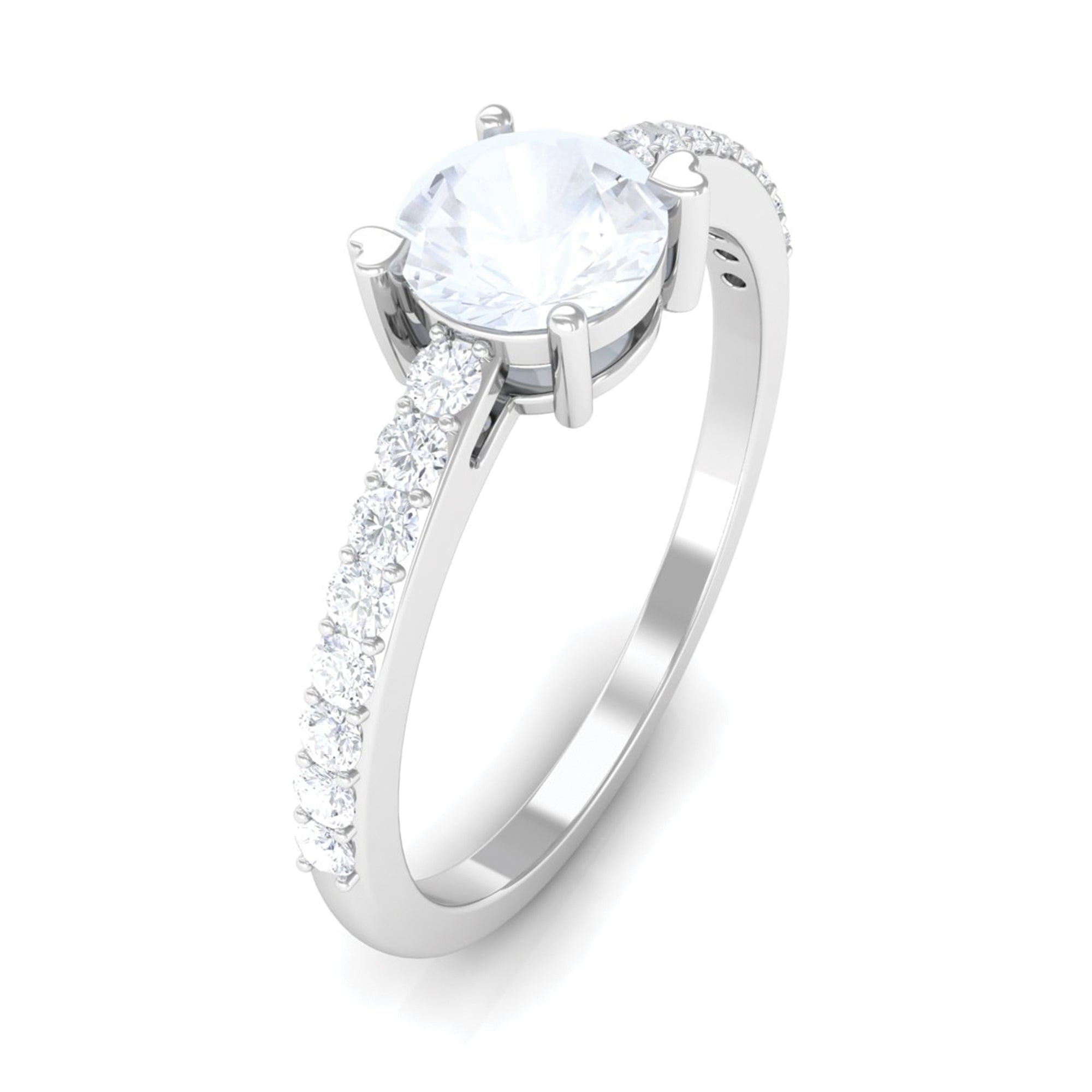 1.25 CT Natural Moonstone Solitaire Promise Ring with Diamond