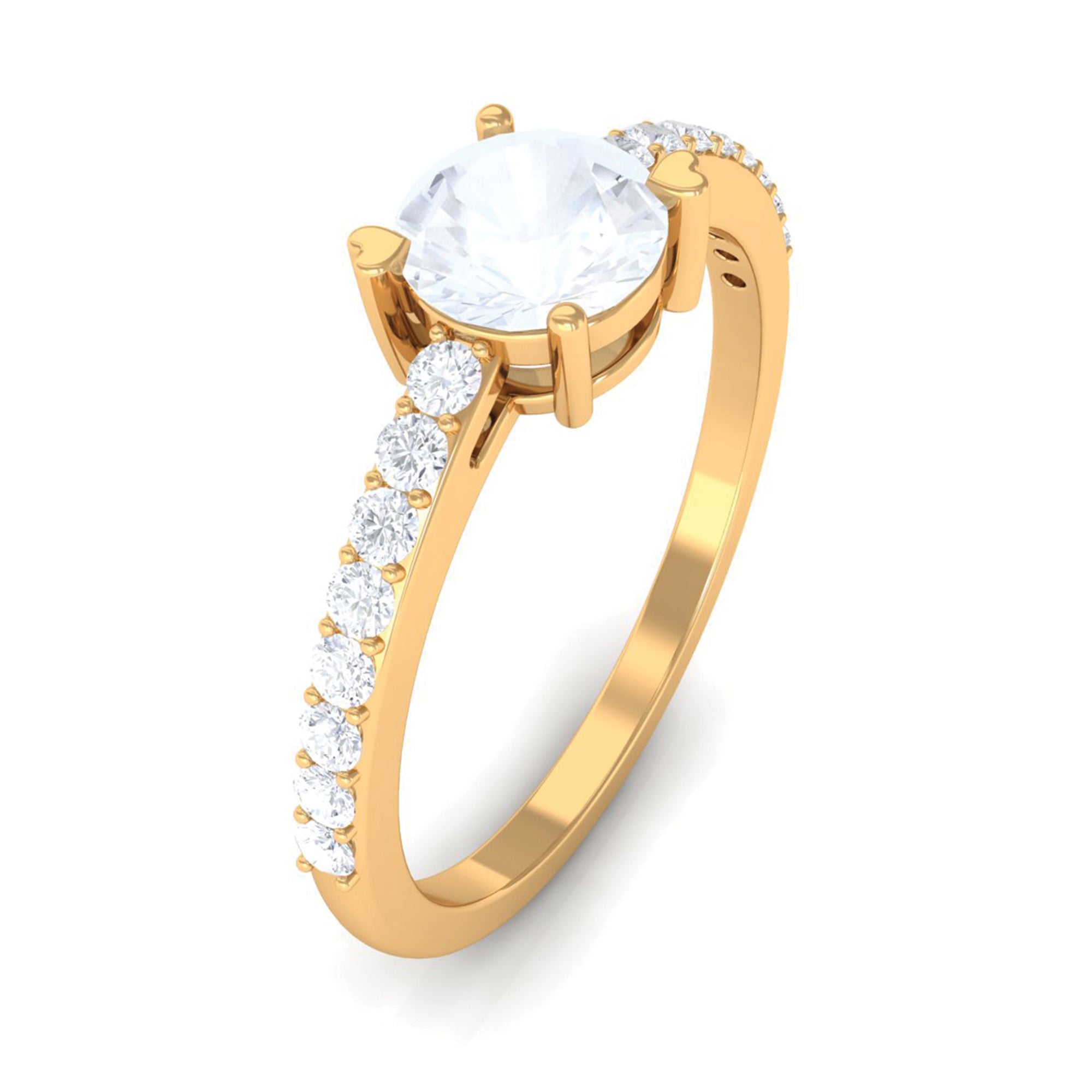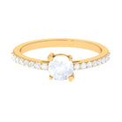 Give her a ring as precious as the promise of love. Crafted in fine Gold, this sweet Promise Ring showcases a brilliant Round Shape Moonstone set as Solitaire in Designer Setting with Diamond Side Stones. Polished to a brilliant shine, when you slip this beauty on her finger, it will take her breath away.