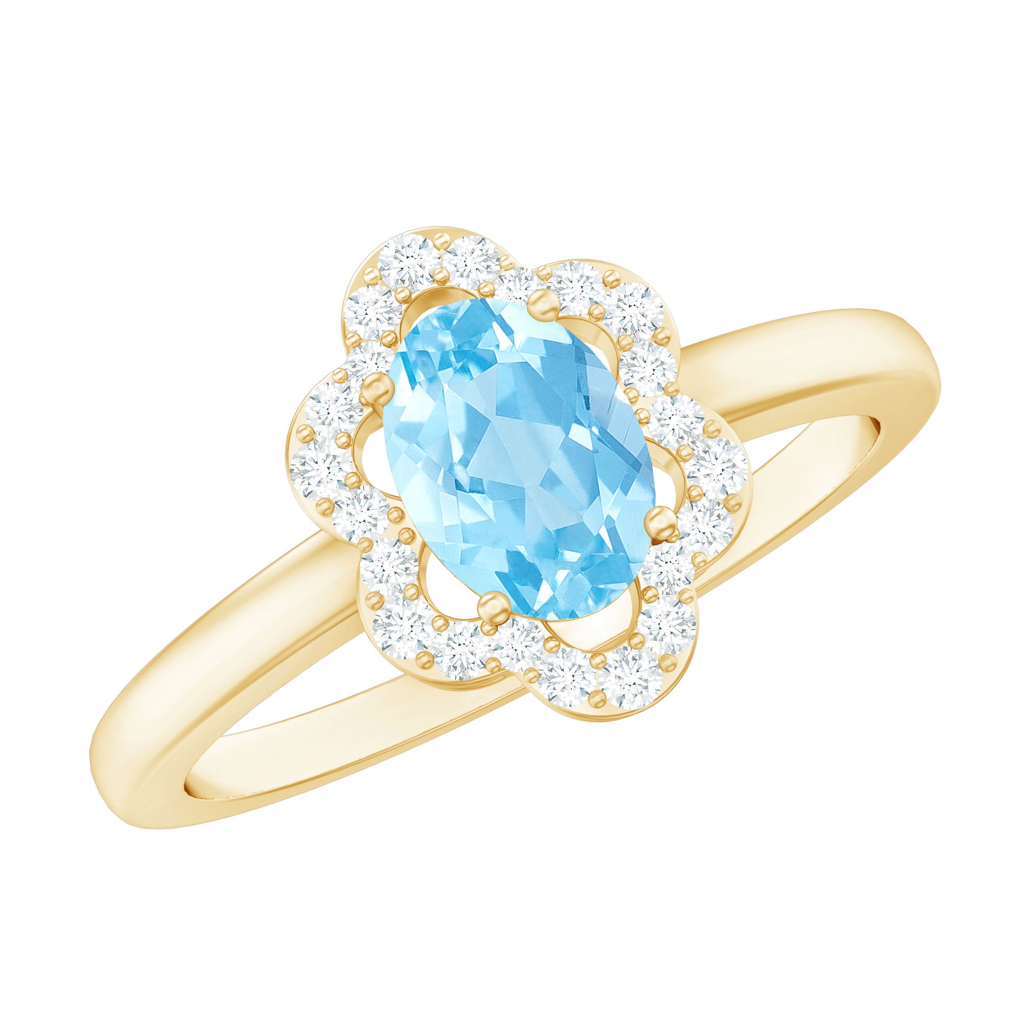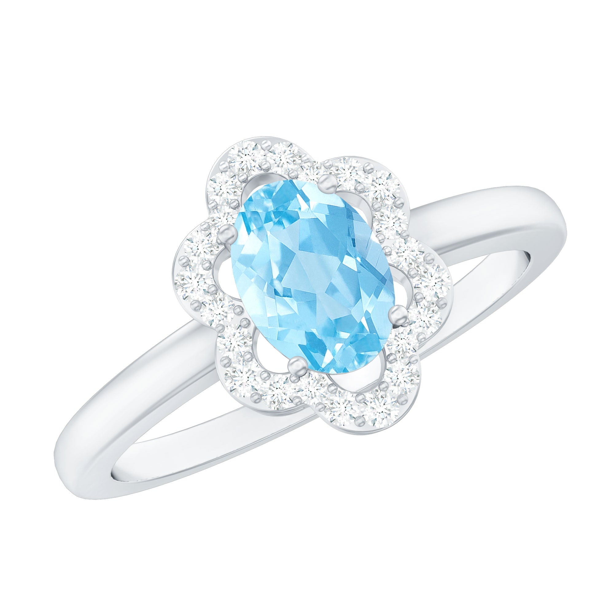 1.25 CT Oval Aquamarine Cocktail Engagement Ring with Diamond Floral Halo