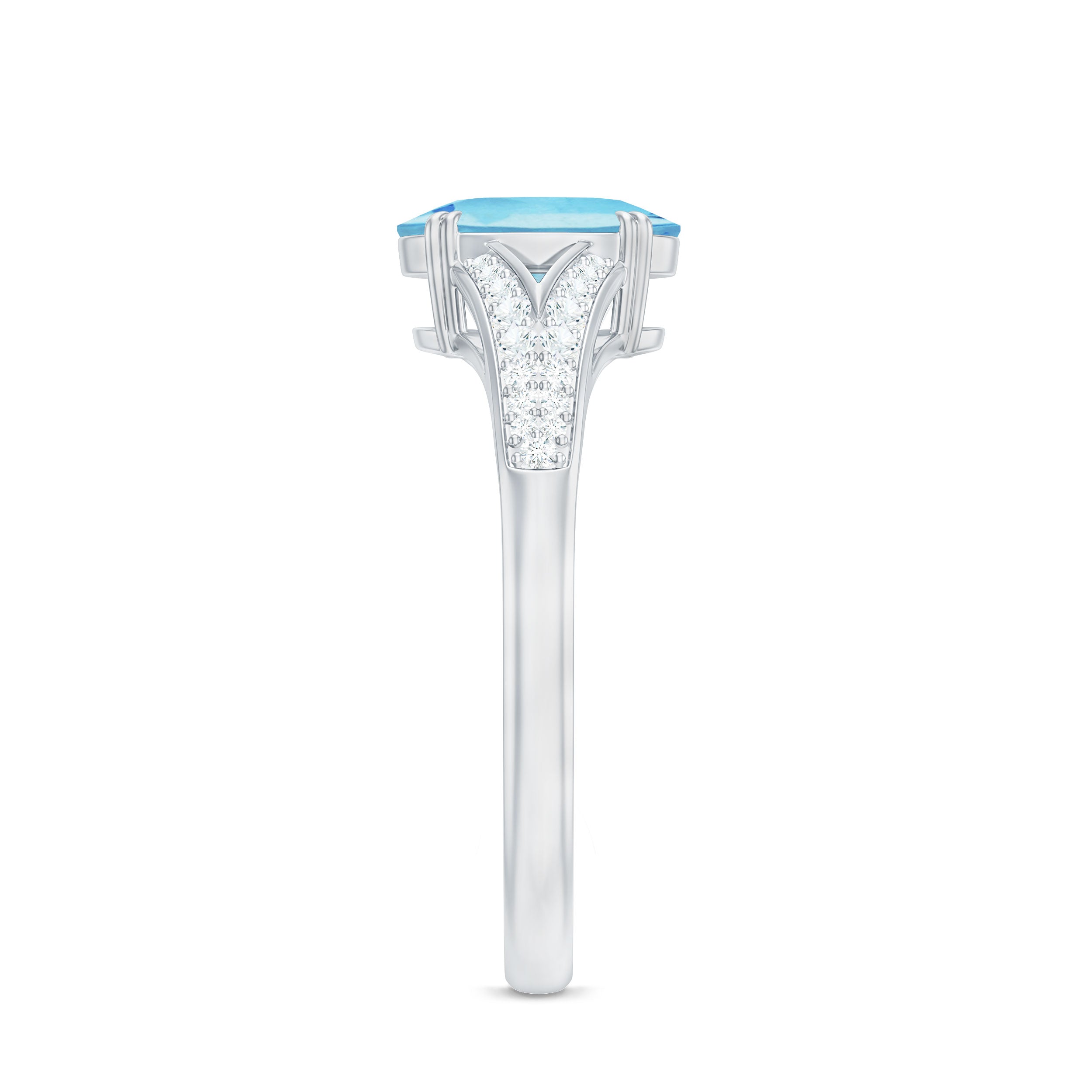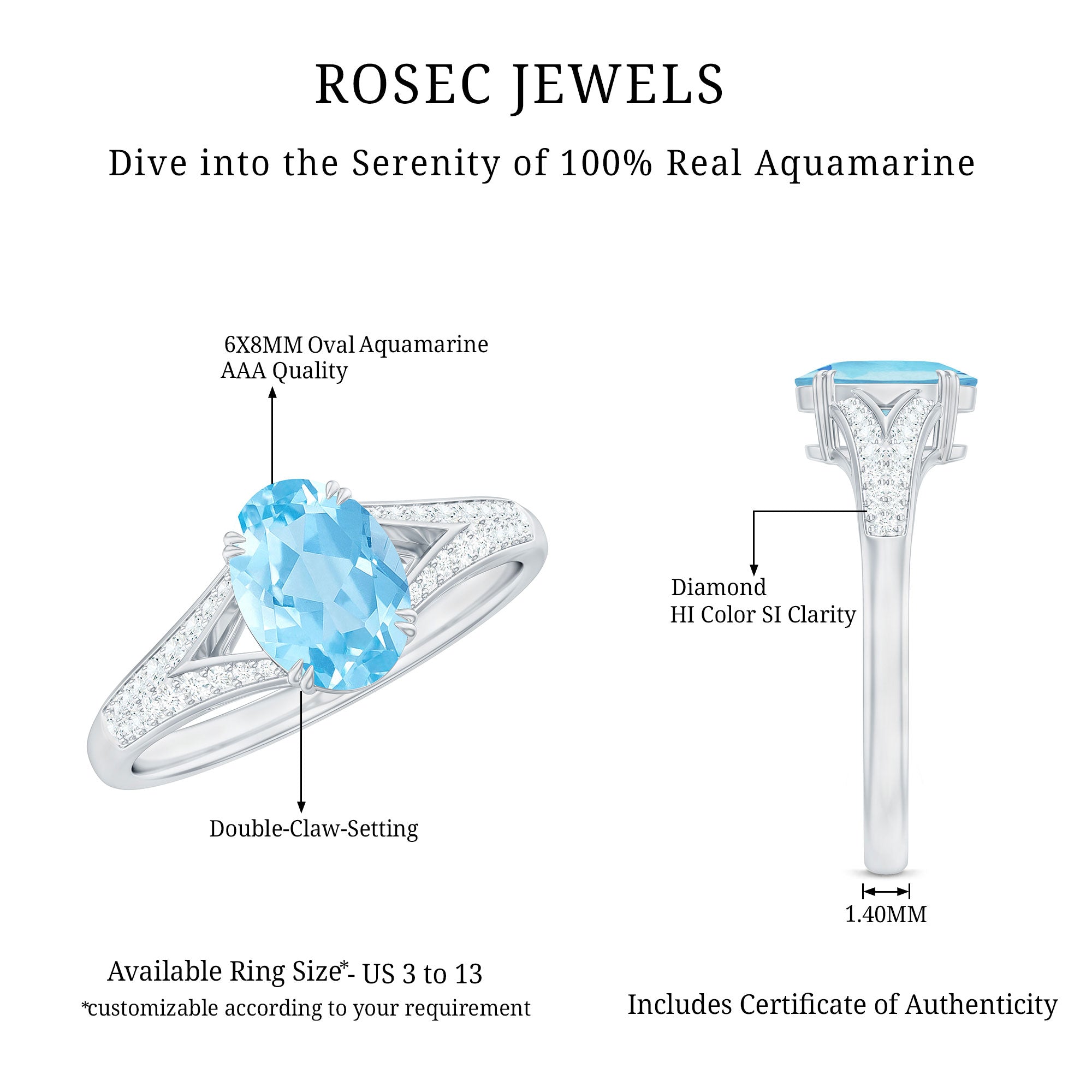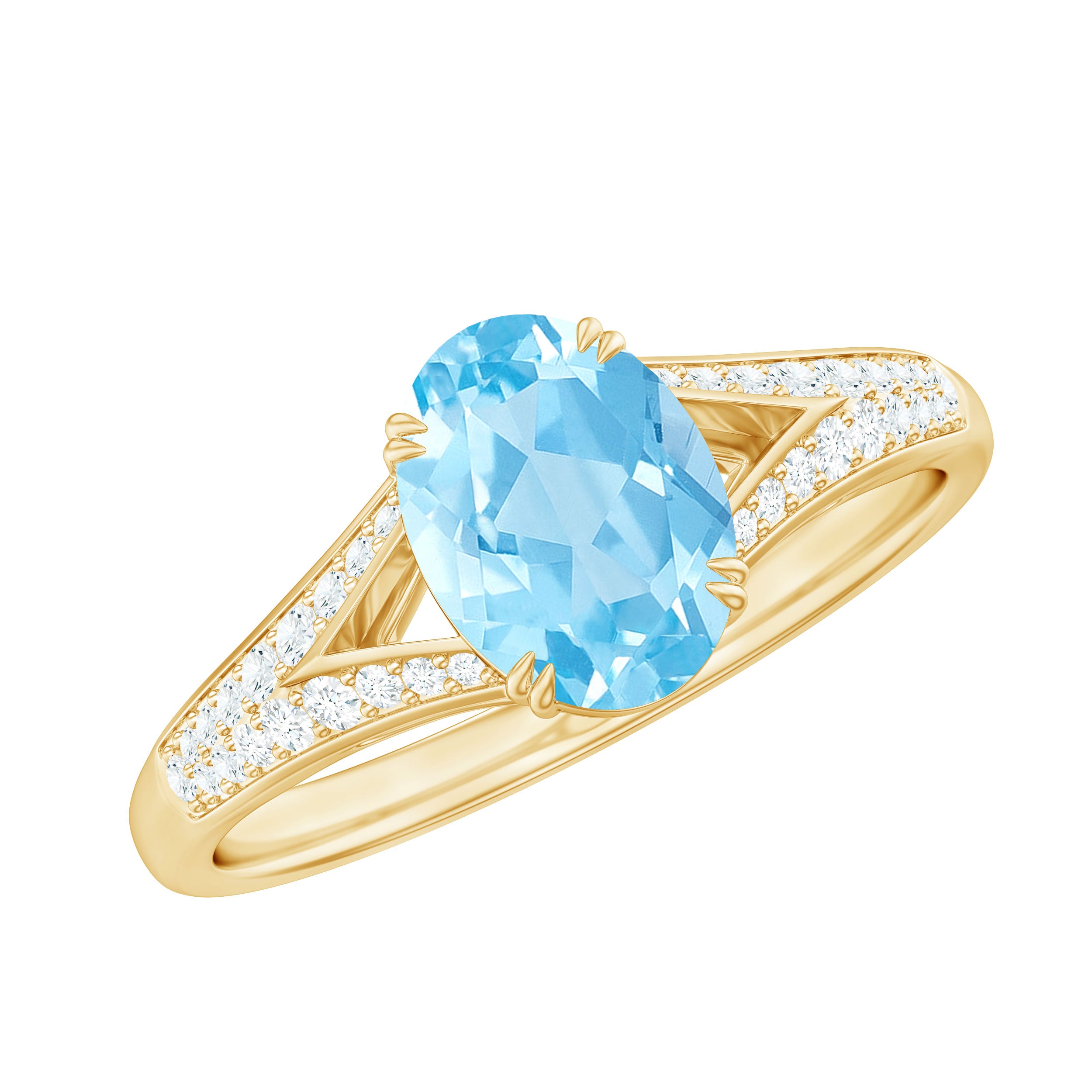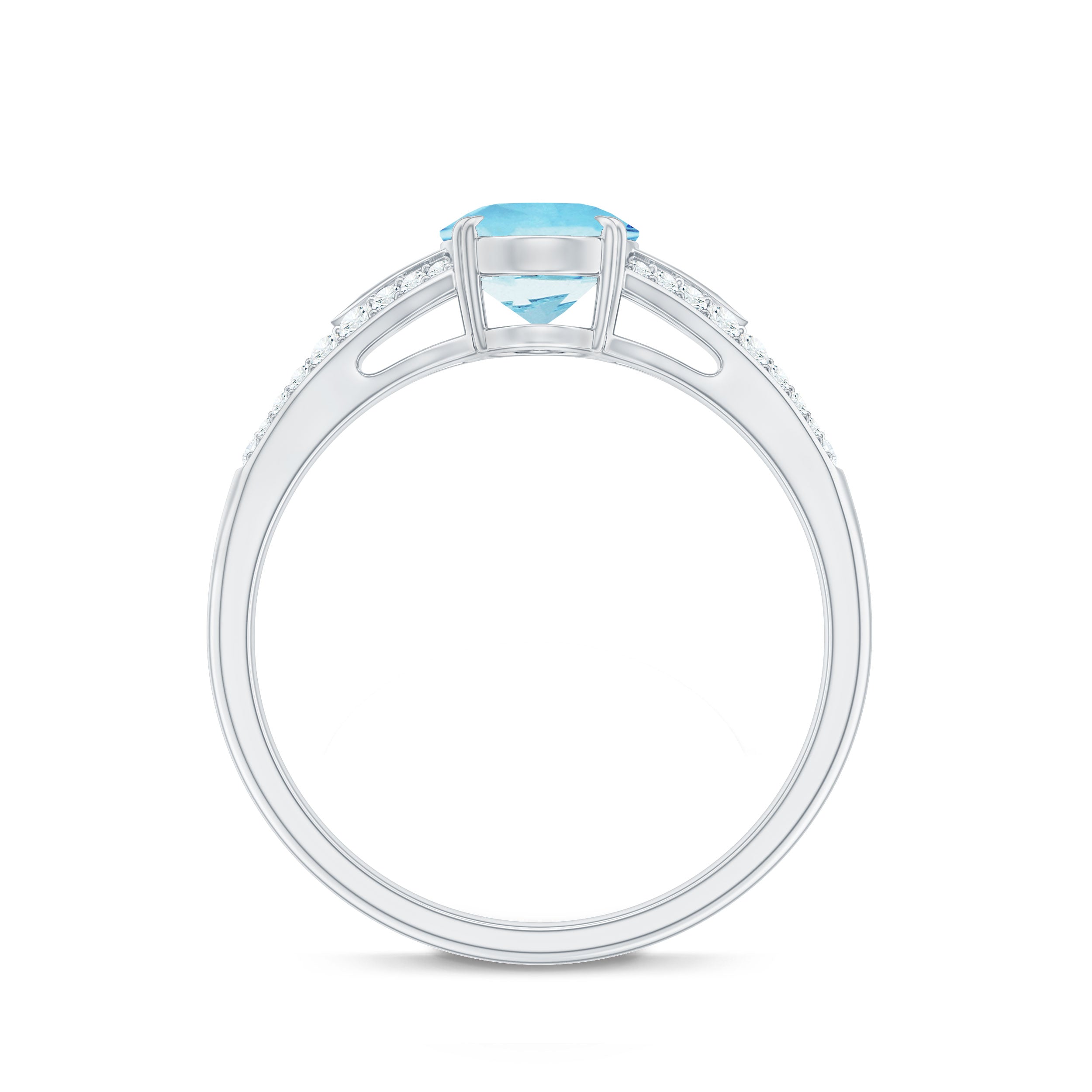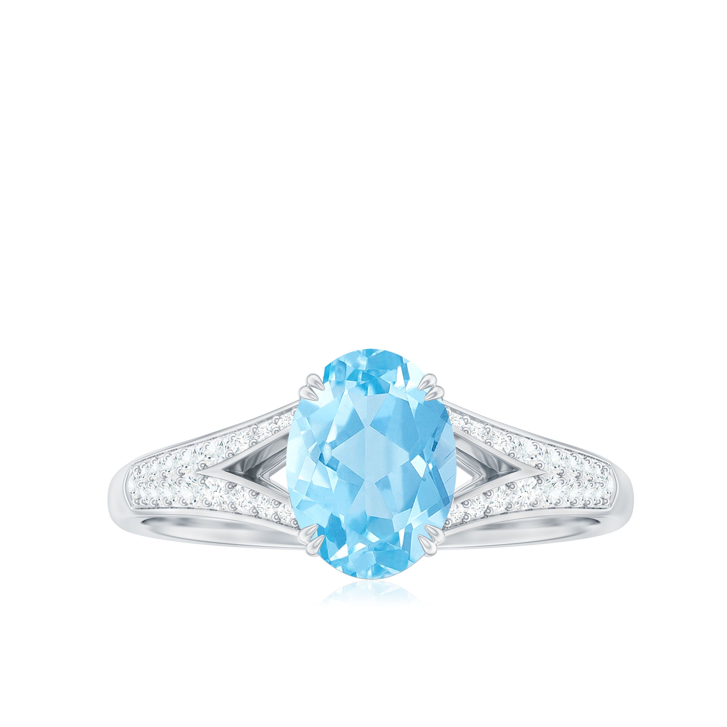 1.25 CT Oval Aquamarine Solitaire Engagement Ring with Diamond Accent