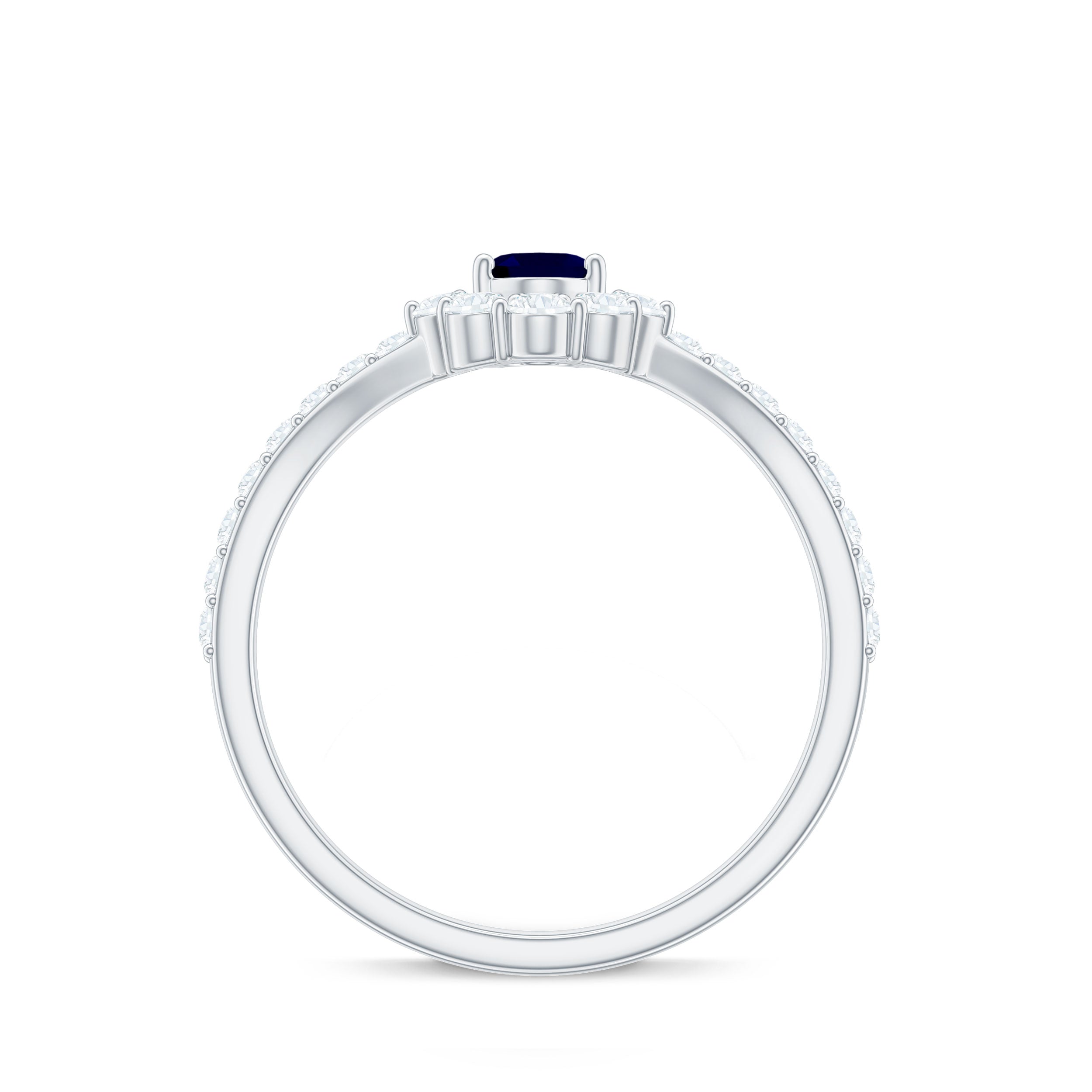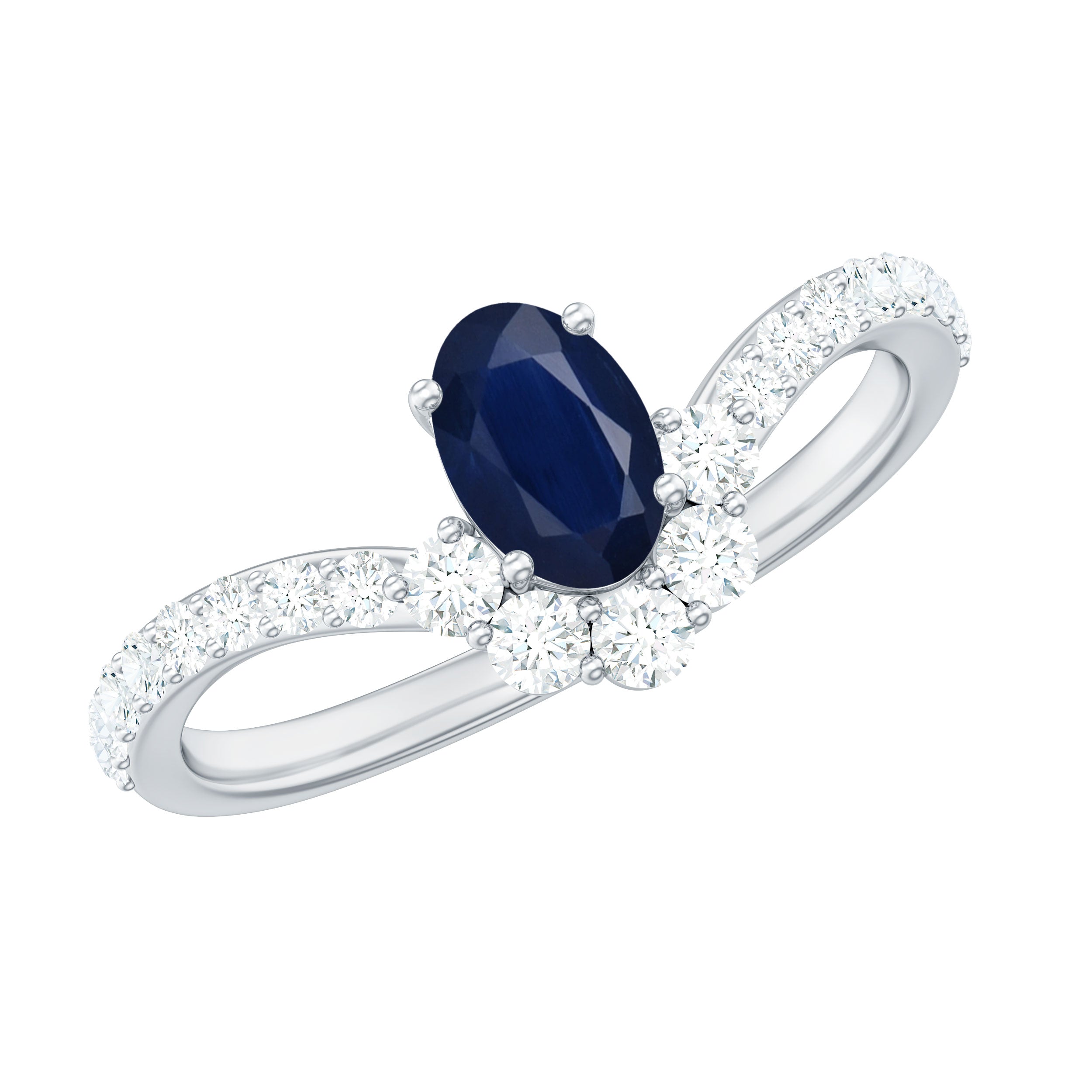 1.25 CT Oval Cut Blue Sapphire and Diamond Chevron Ring