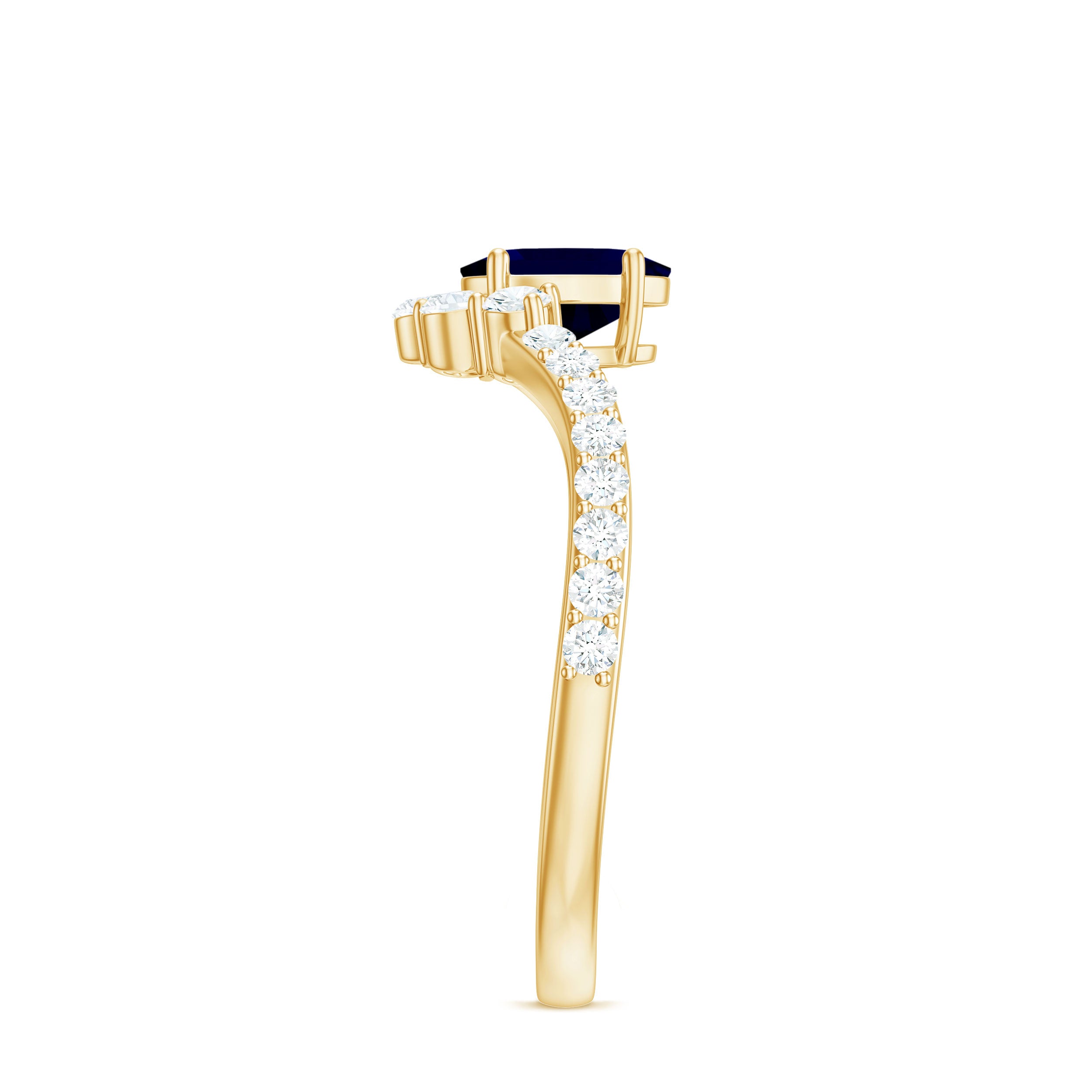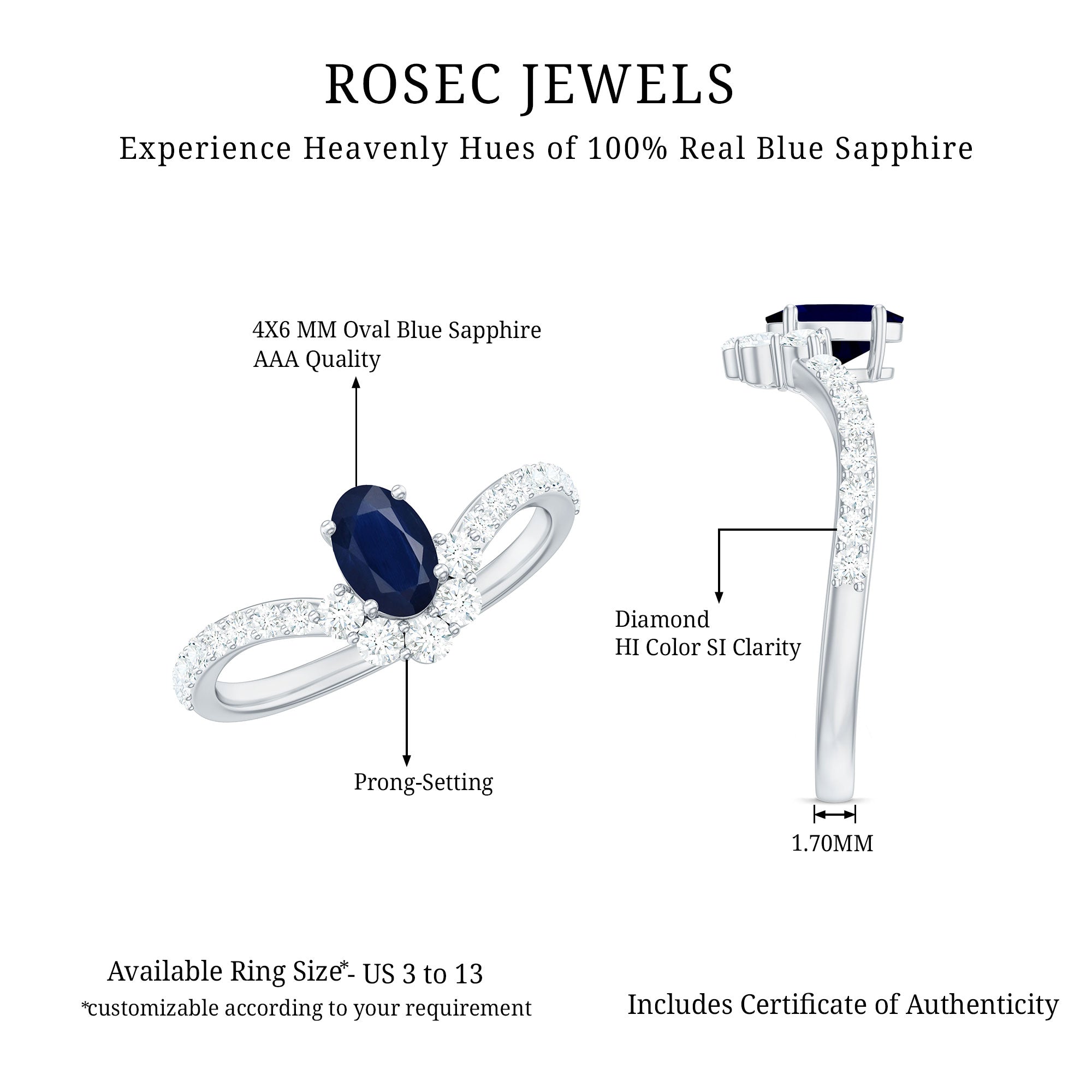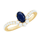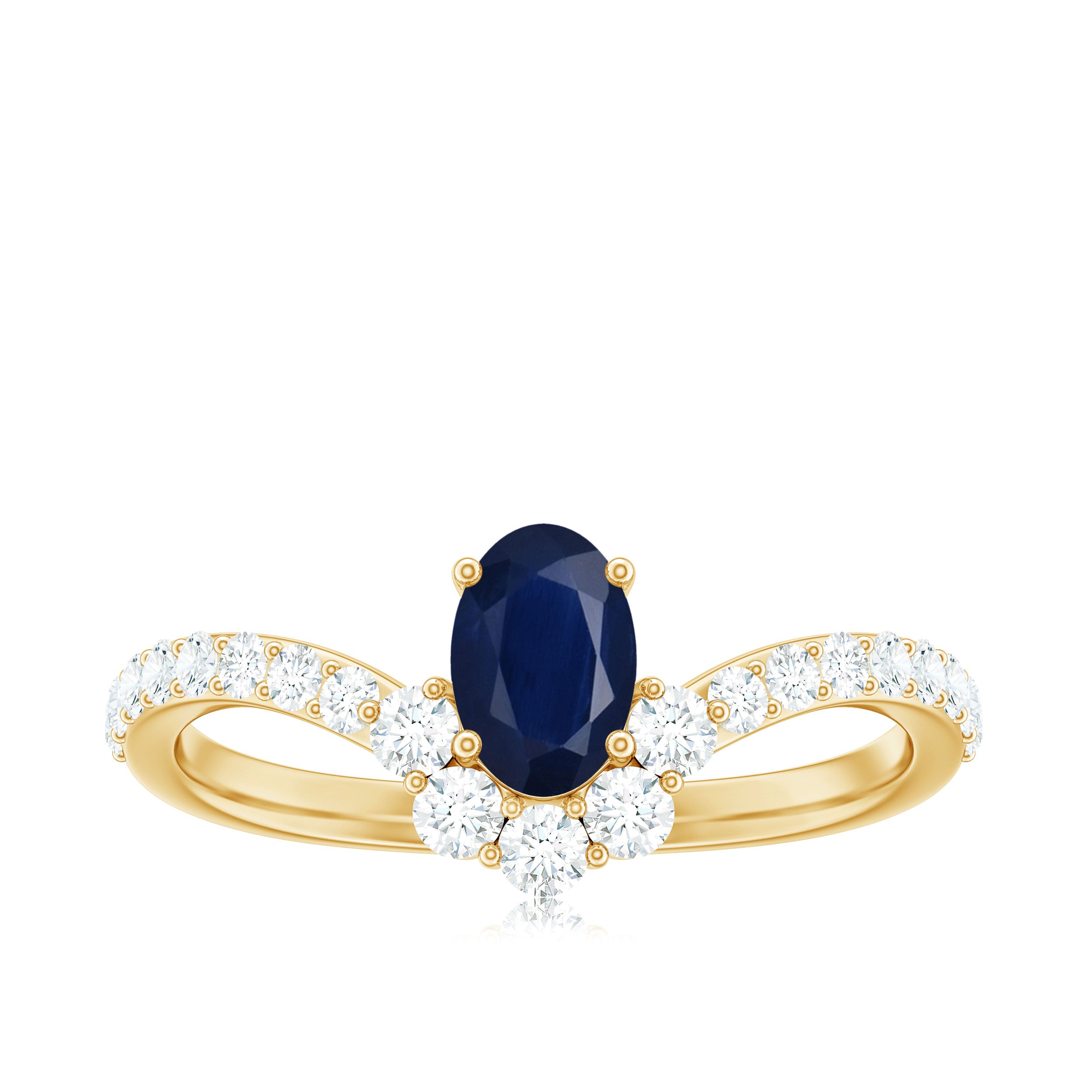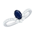 Shine like a Queen with Blue Sapphire Chevron Ring. Embellished with Oval Cut Blue Sapphire Stone on V Shape Gold Ring with Diamond, this Solid Gold Ring is ideal for September born women.