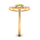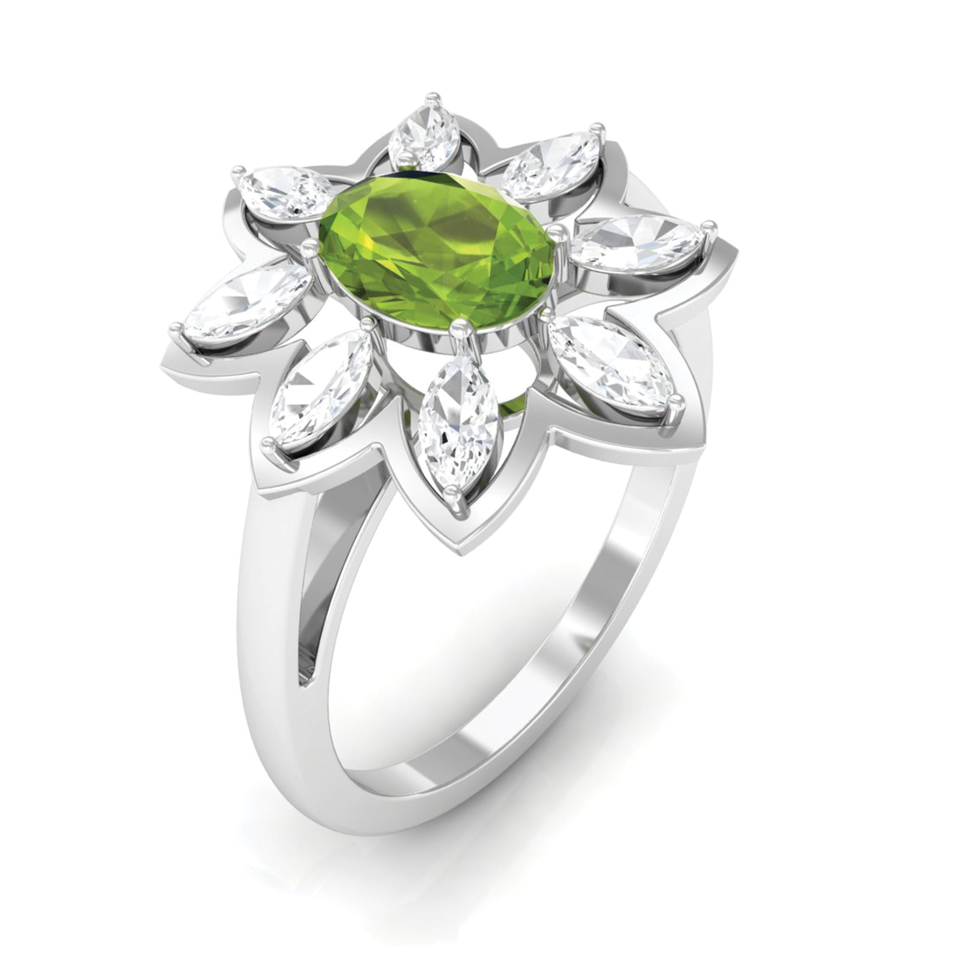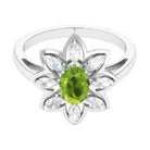 Draw attention to your style by wearing this alluring Flower Cocktail Ring embellished with Oval Cut Peridot in Prong Setting with Marquise Cut Moissanite Stones. Crafted with Gold, this Peridot Cocktail Ring will bring you into the spotlight. So, flaunt this gorgeous Peridot Ring and enjoy the attention.