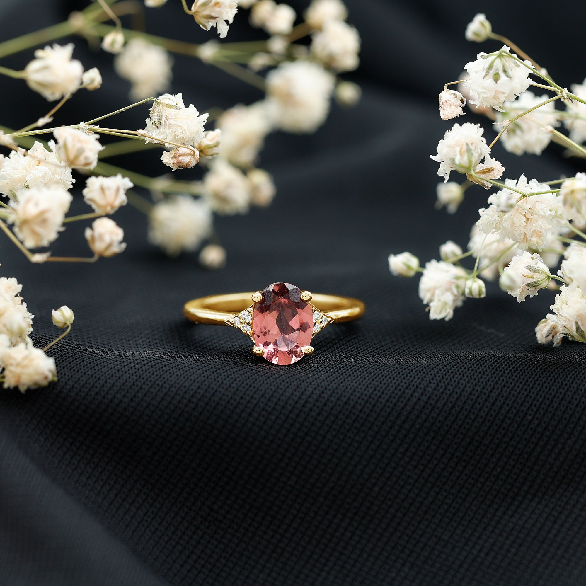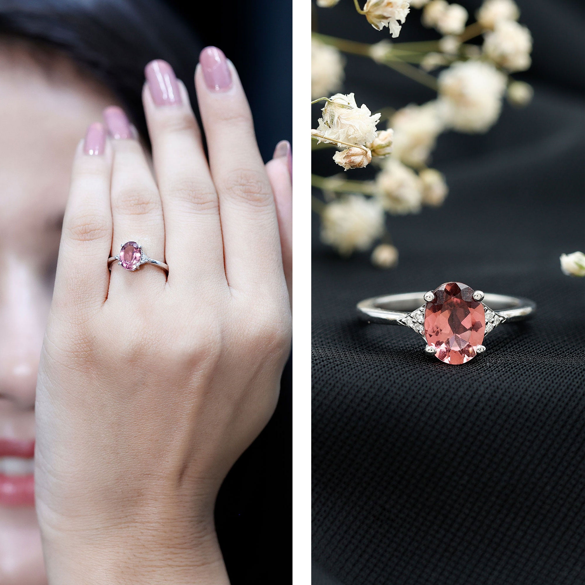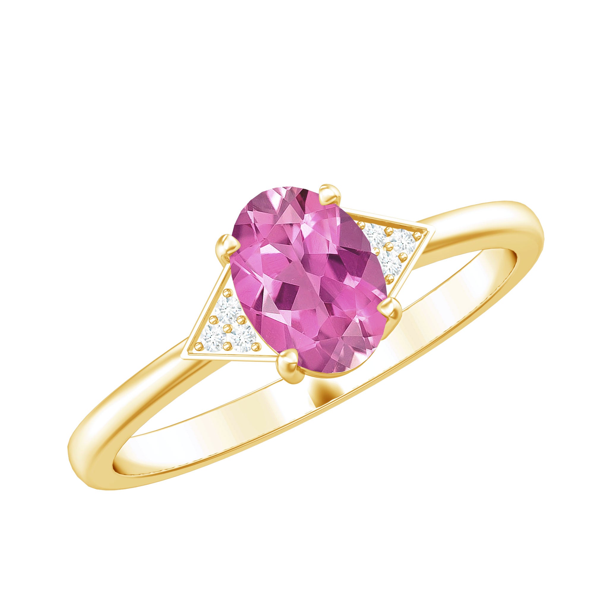 1.25 CT Oval Pink Tourmaline Solitaire Ring with Diamond Accent