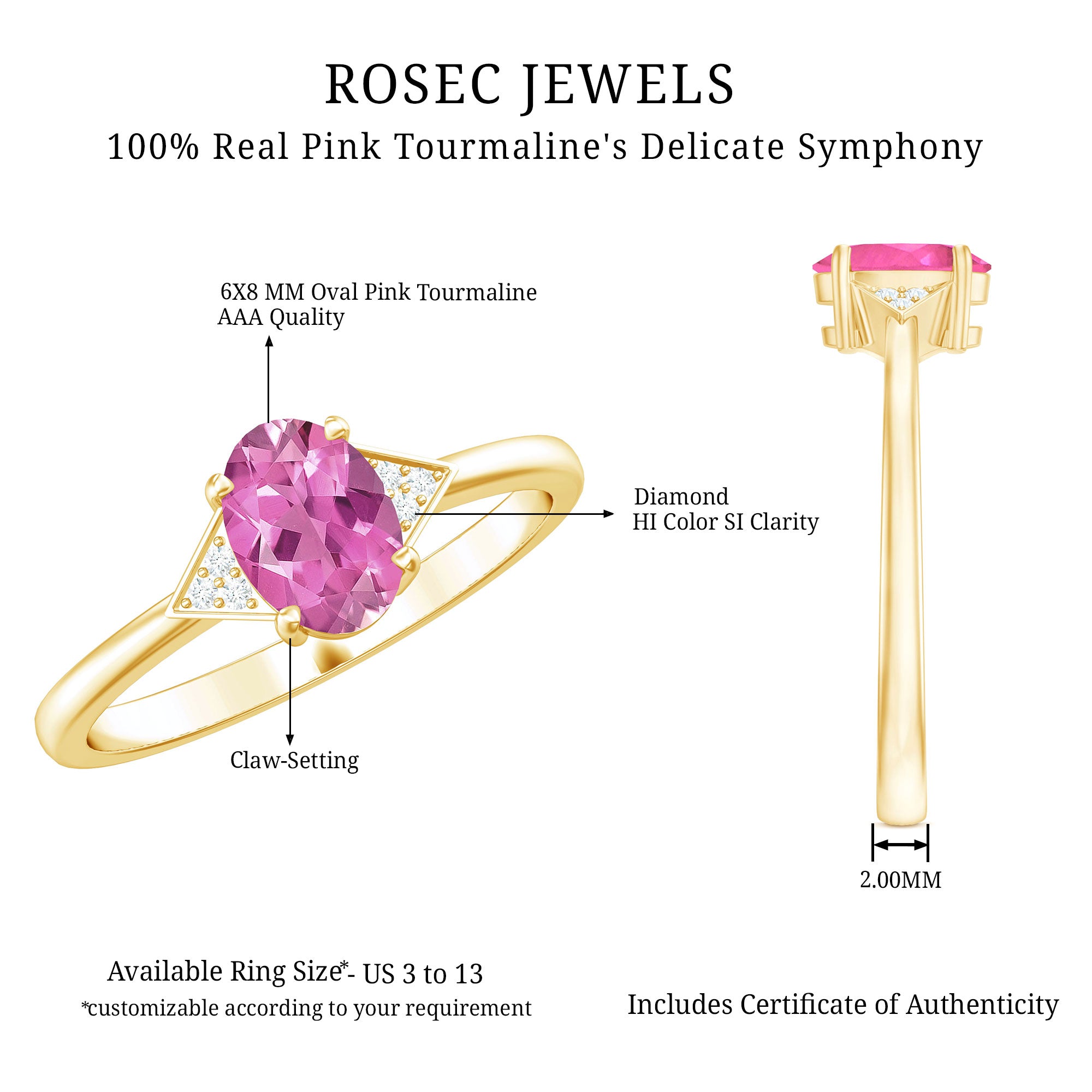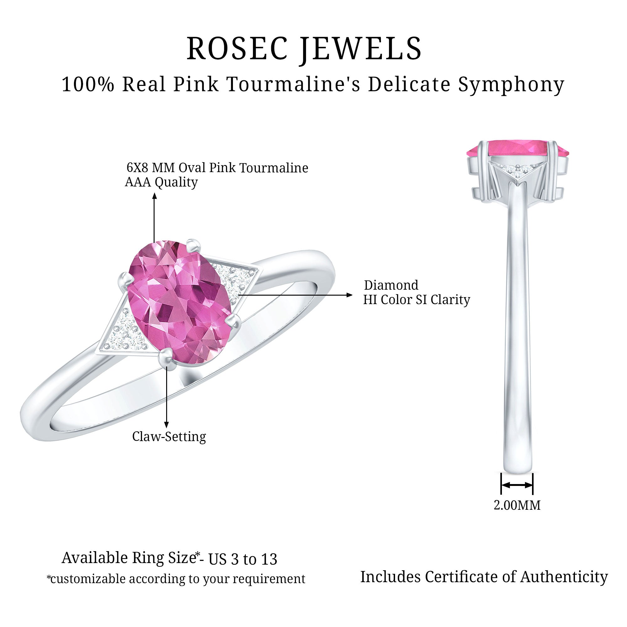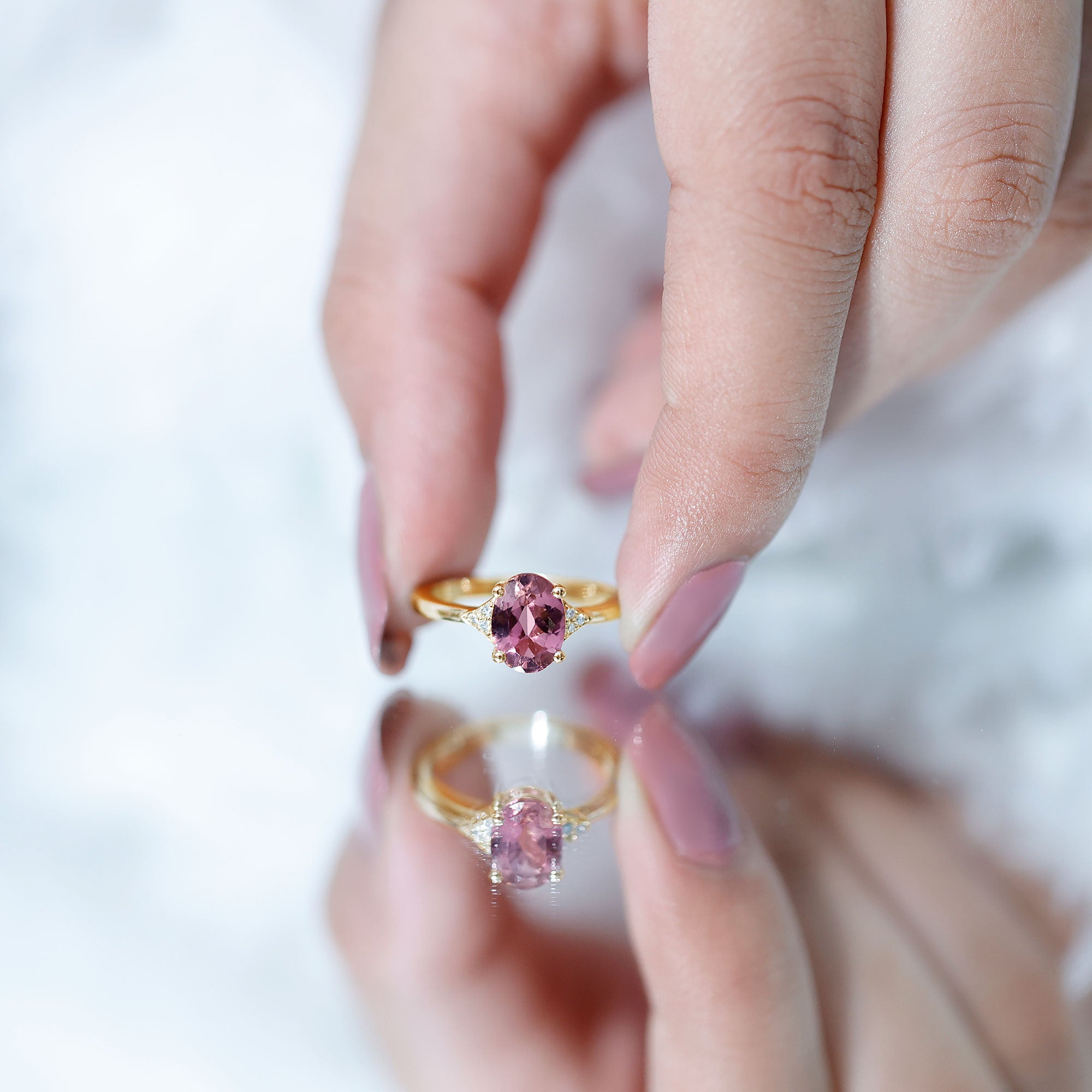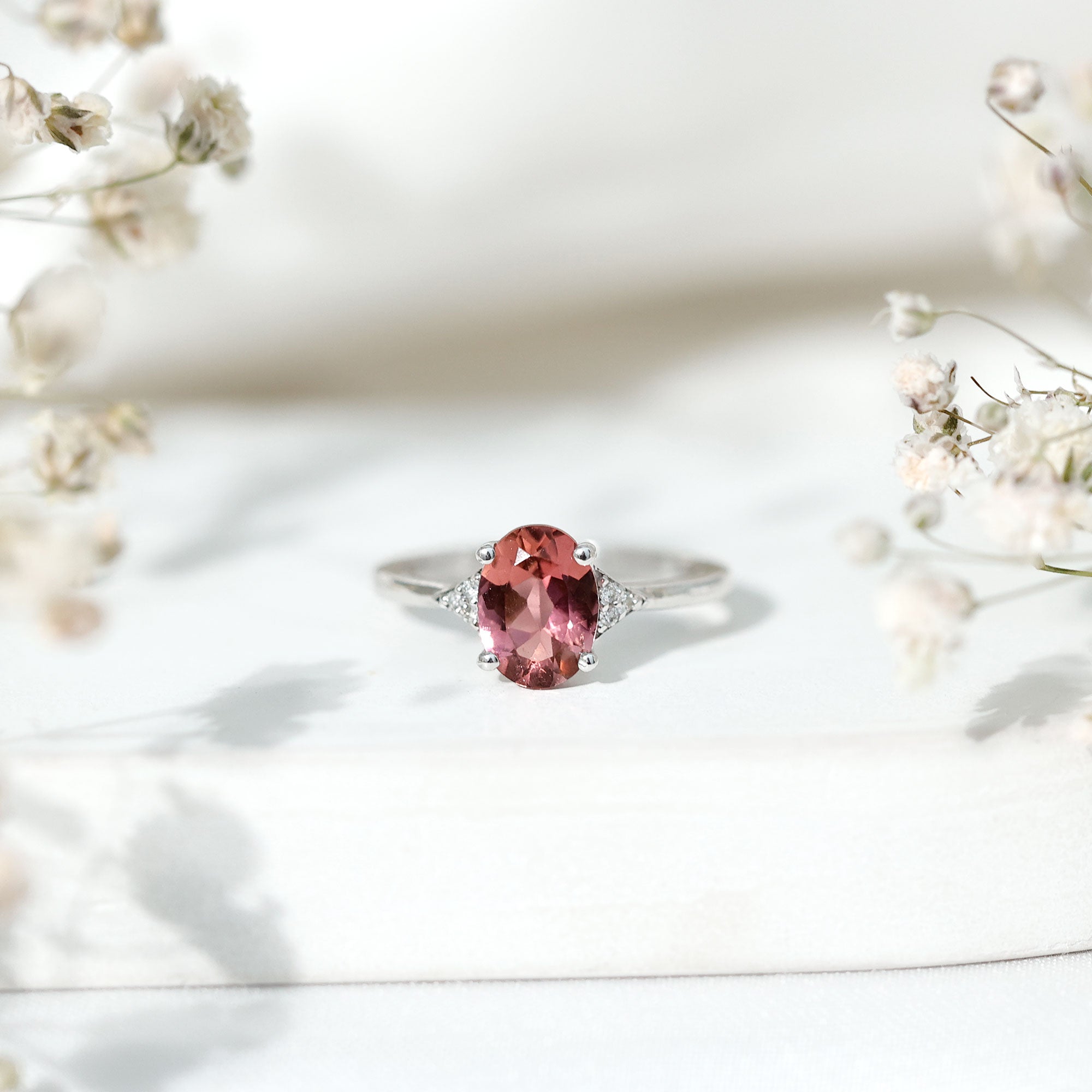 1.25 CT Oval Pink Tourmaline Solitaire Ring with Diamond Accent