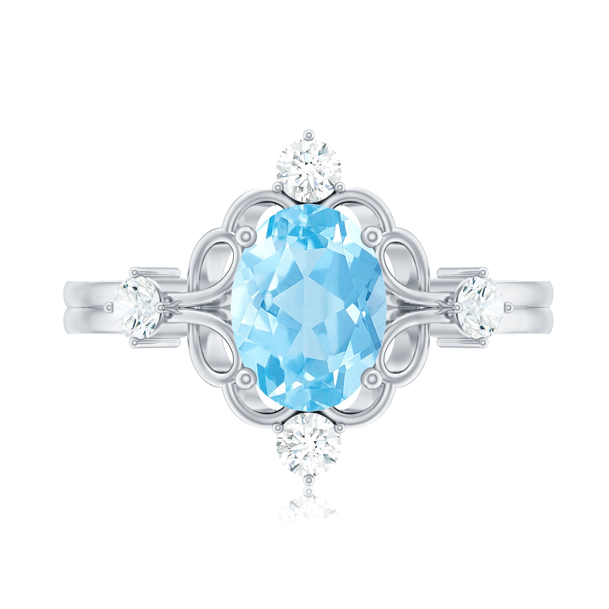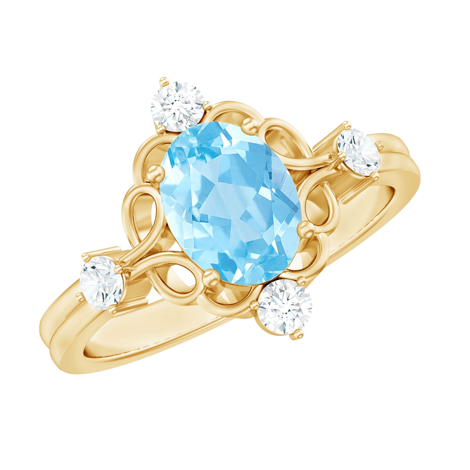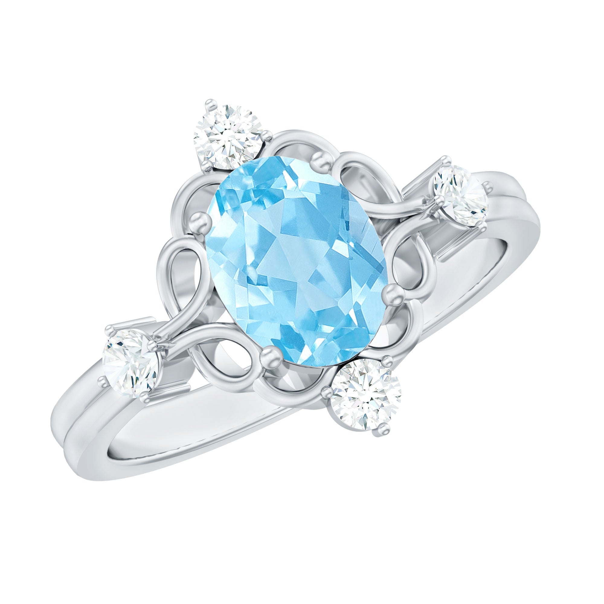 1.25 CT Oval Shape Aquamarine and Diamond Cocktail Ring