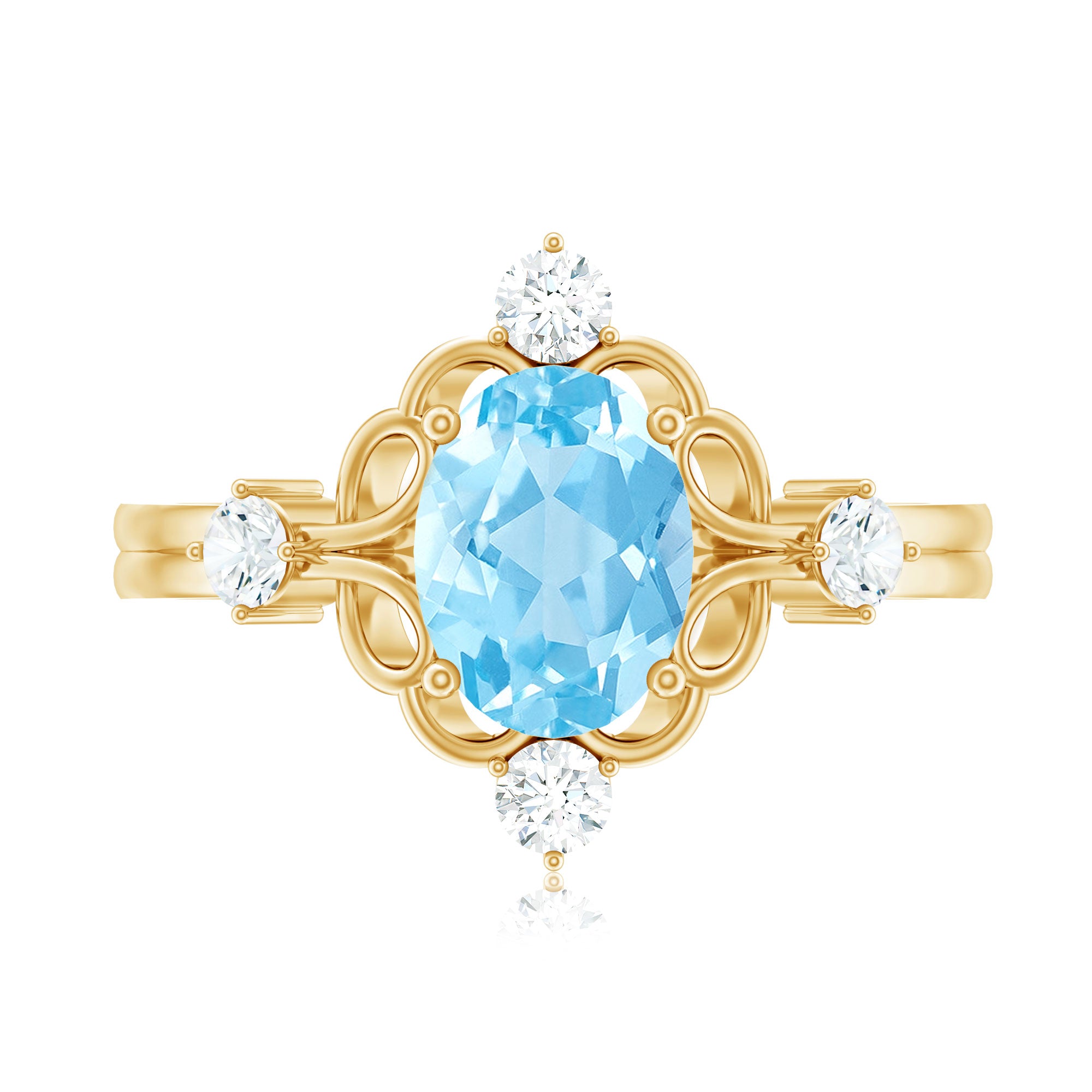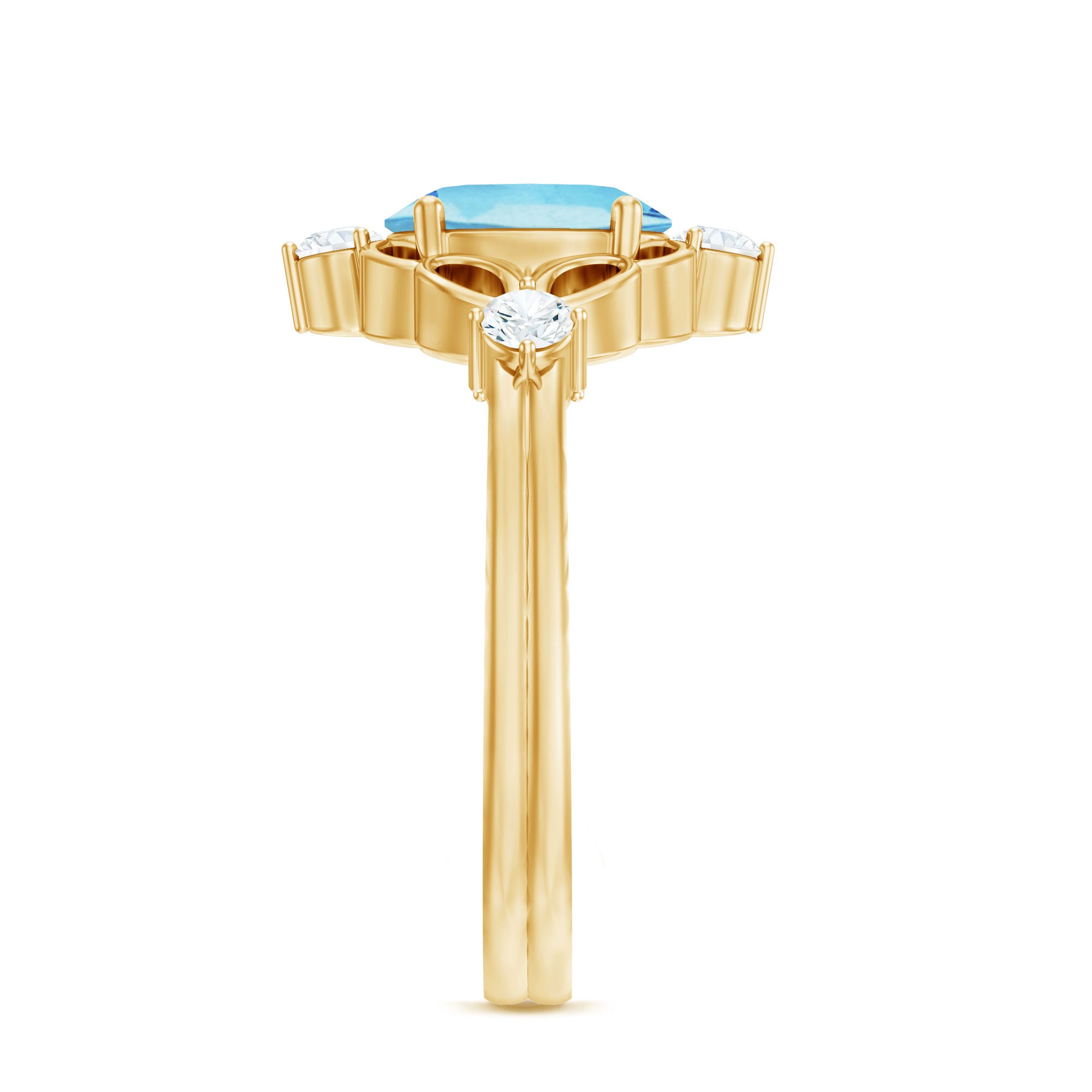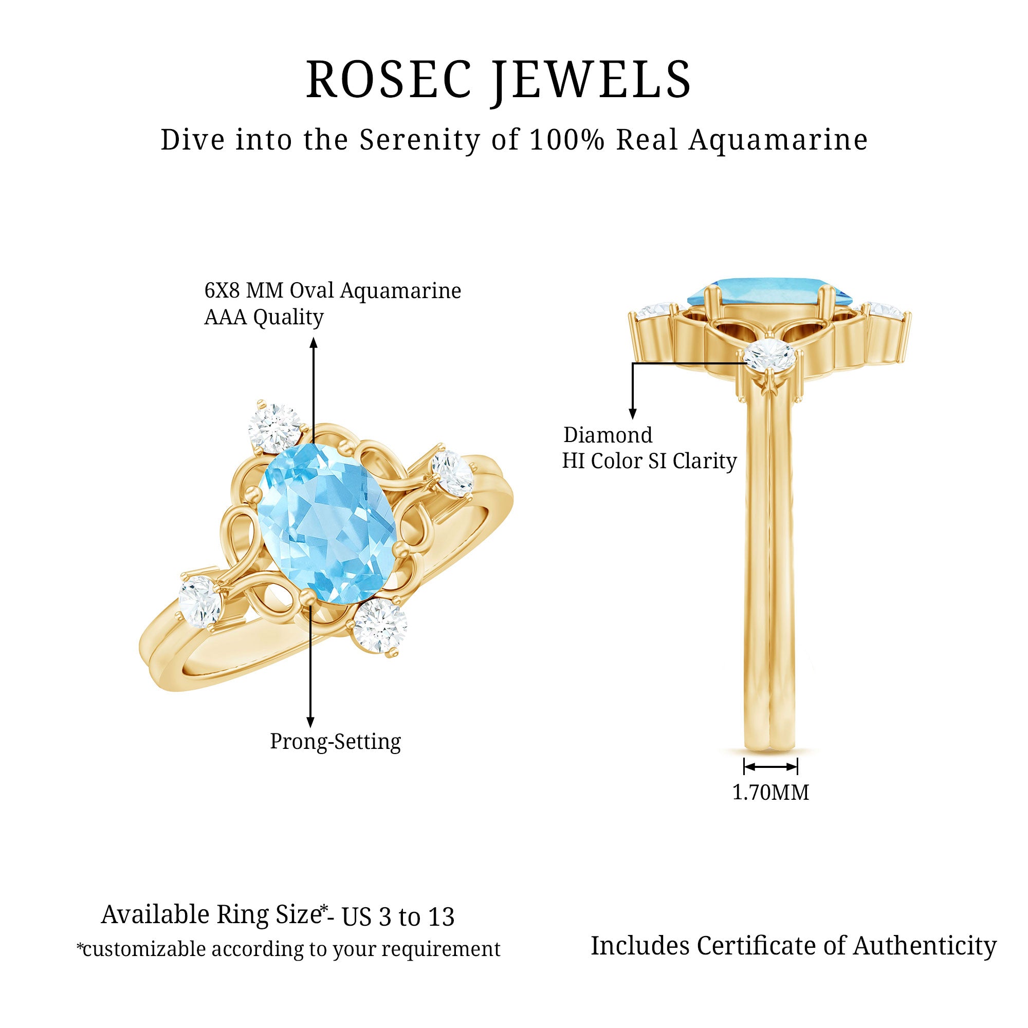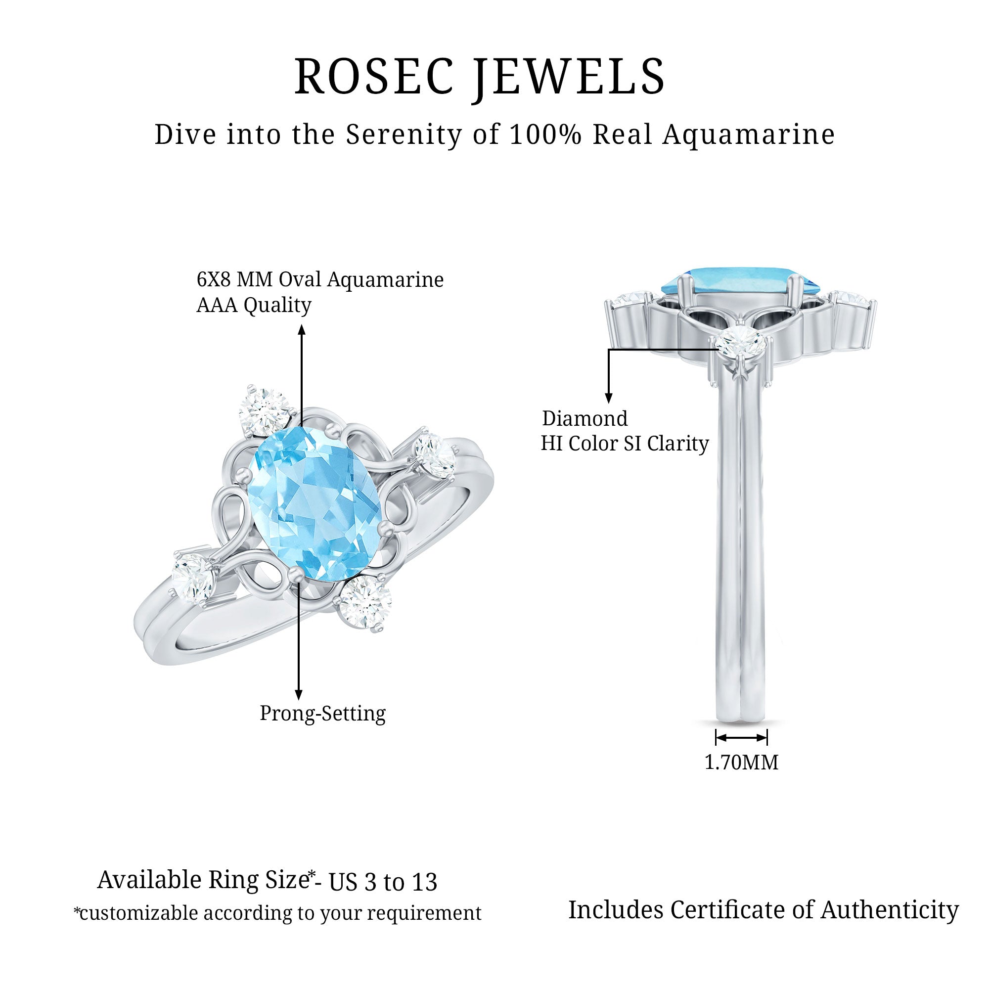 1.25 CT Oval Shape Aquamarine and Diamond Cocktail Ring