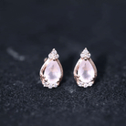 1.25 CT Pear Cut Rose Quartz Teardrop Stud Earrings with Diamond Accent