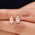 Celebrate your anniversary with the most timeless and cherished gift: a pair of Natural Gemstone Stud Earrings. These exquisite earrings feature the romantic beauty of Pear Cut Rose Quartz, elegantly cradled in a secure Prong Setting, and are gracefully complemented by the sparkle of Diamonds. Rest assured, our commitment to quality is unwavering, as all our gemstones are certified and subjected to rigorous quality assessments, ensuring you gift your loved one nothing less than the finest craftsmanship on this special occasion.