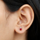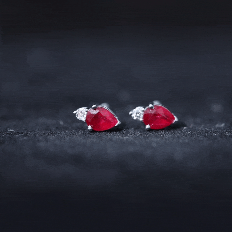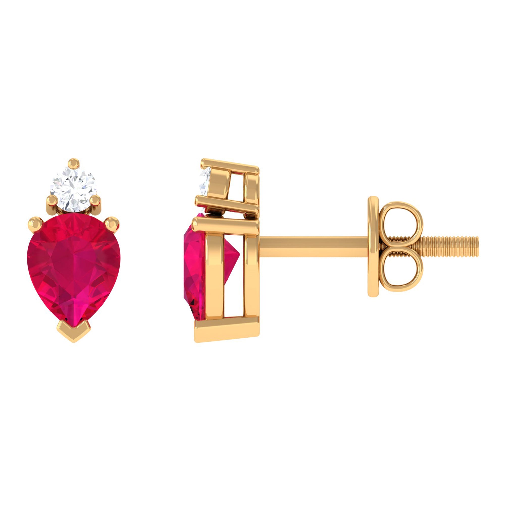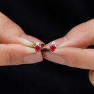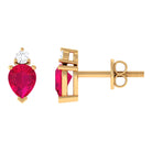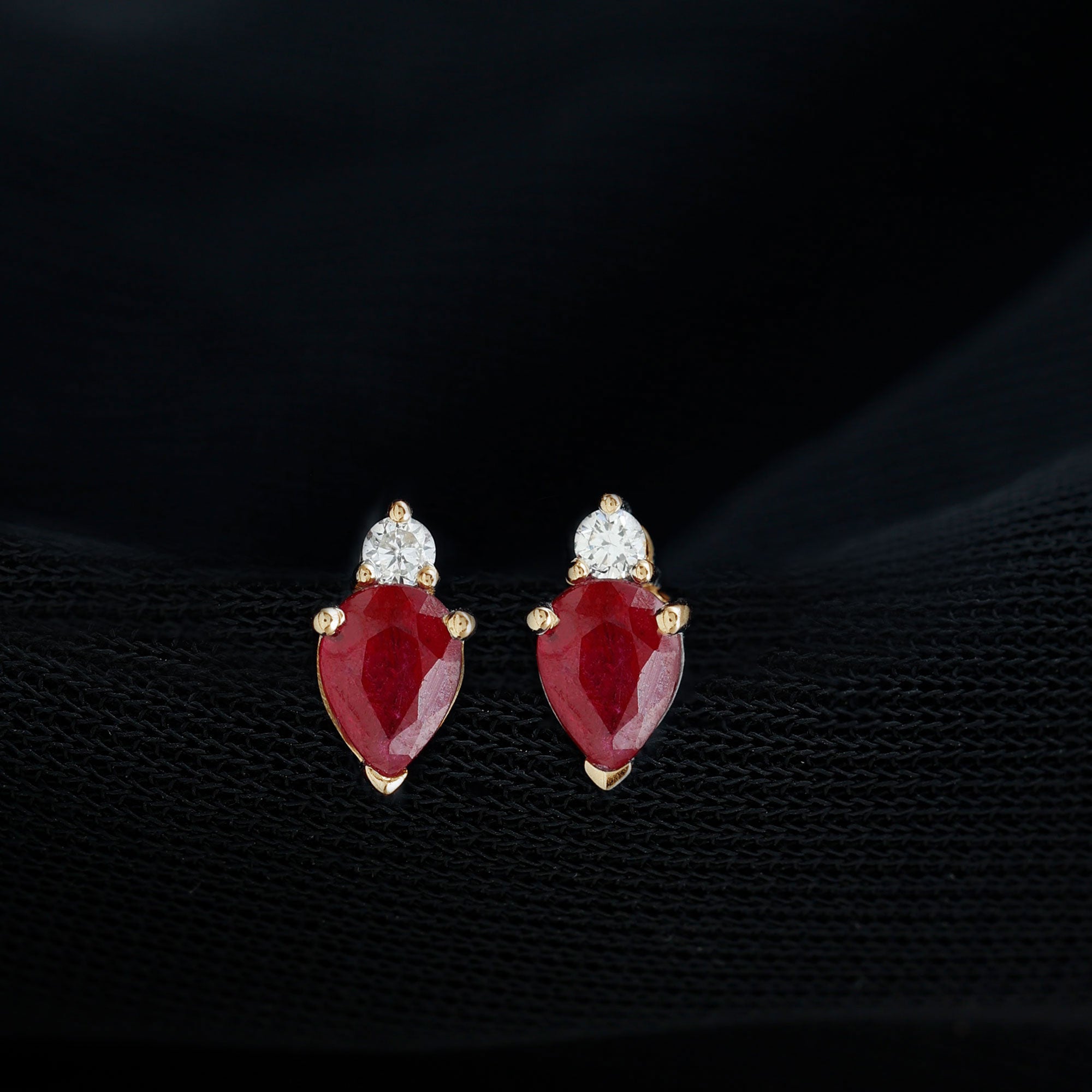 Elevate your style with these elegant Stud Earrings, embellished with Pear Cut Rubies and Round Shape Diamond stones in a Prong Setting. The cute dainty earrings are crafted from Solid Gold, offering a luxurious and refined appeal to complement any outfit.