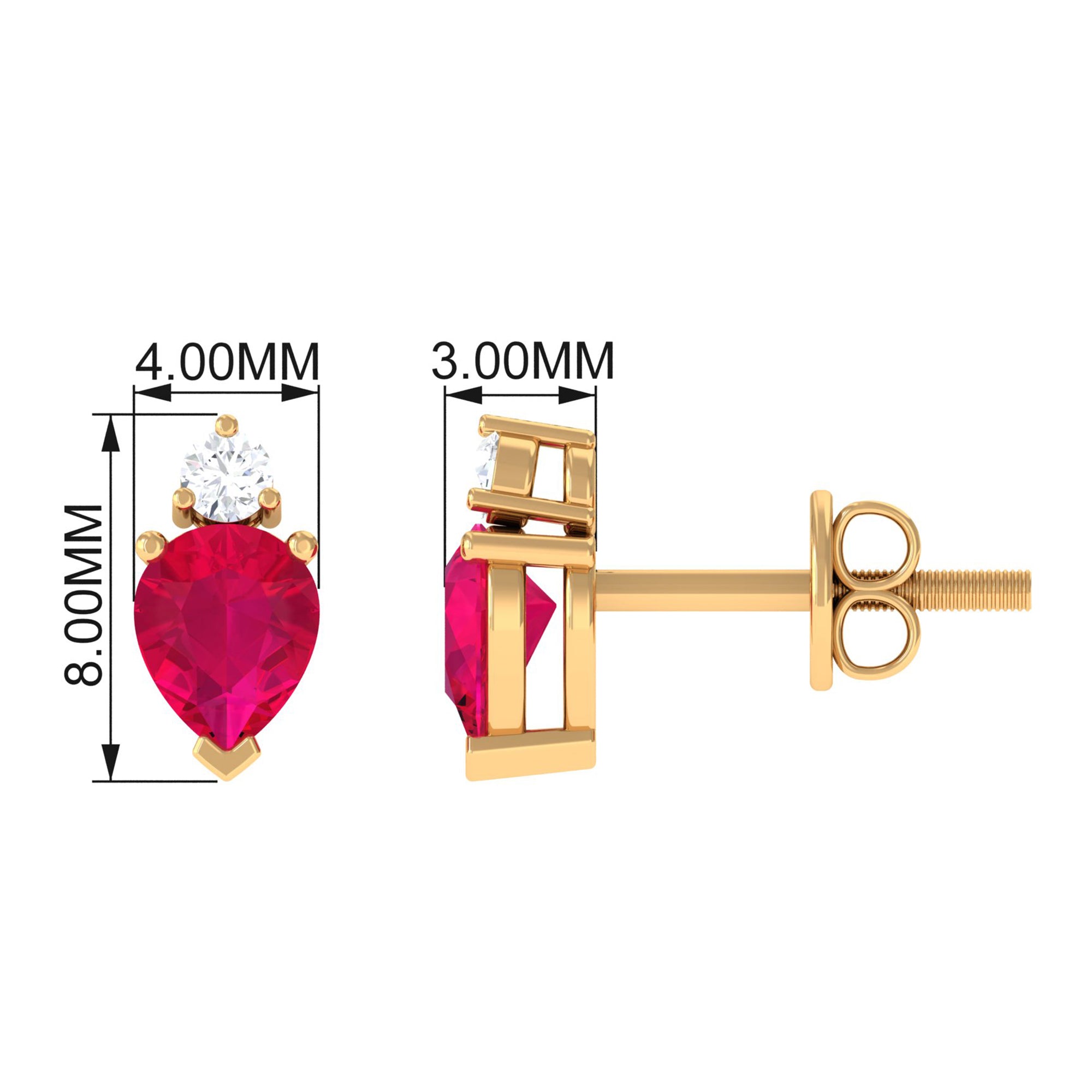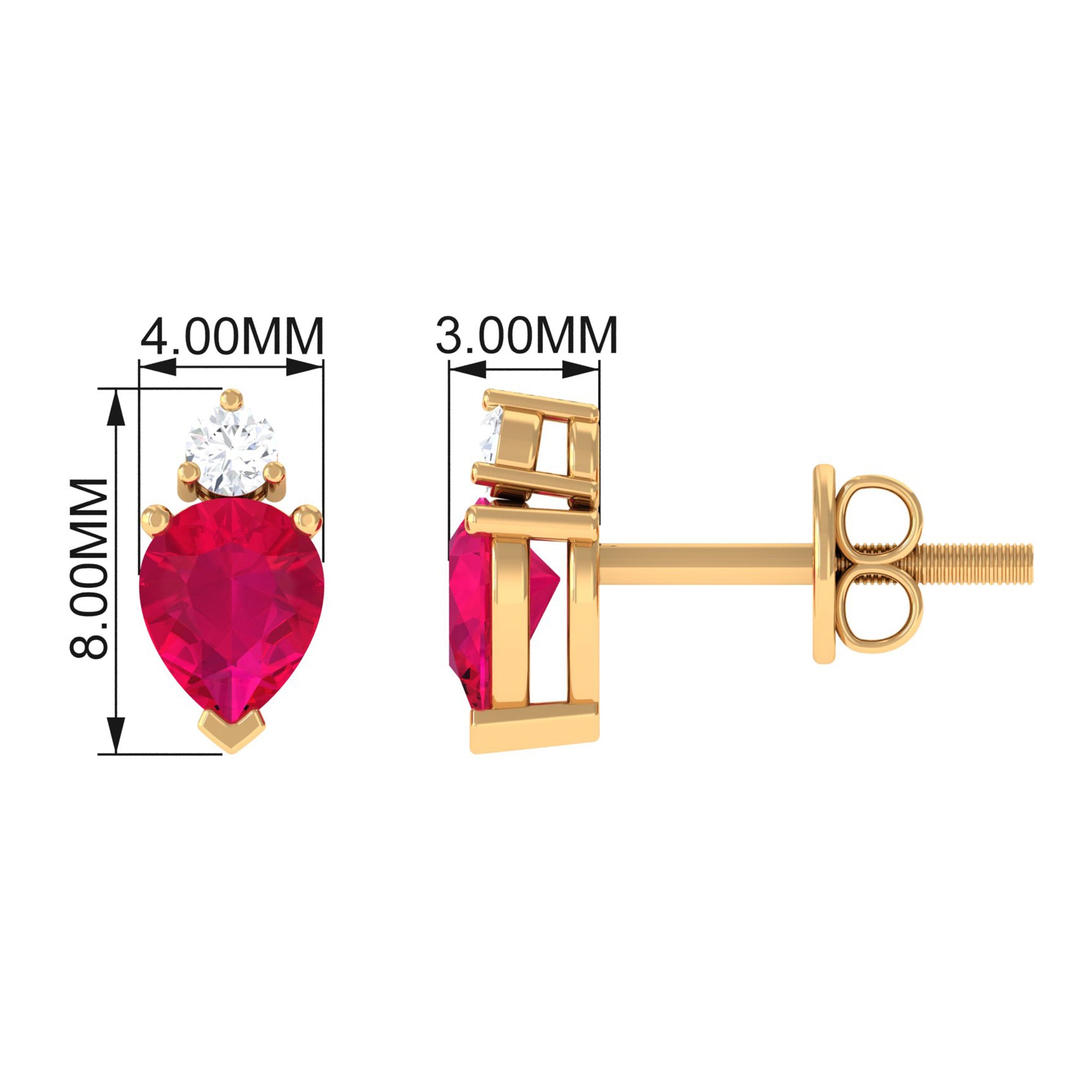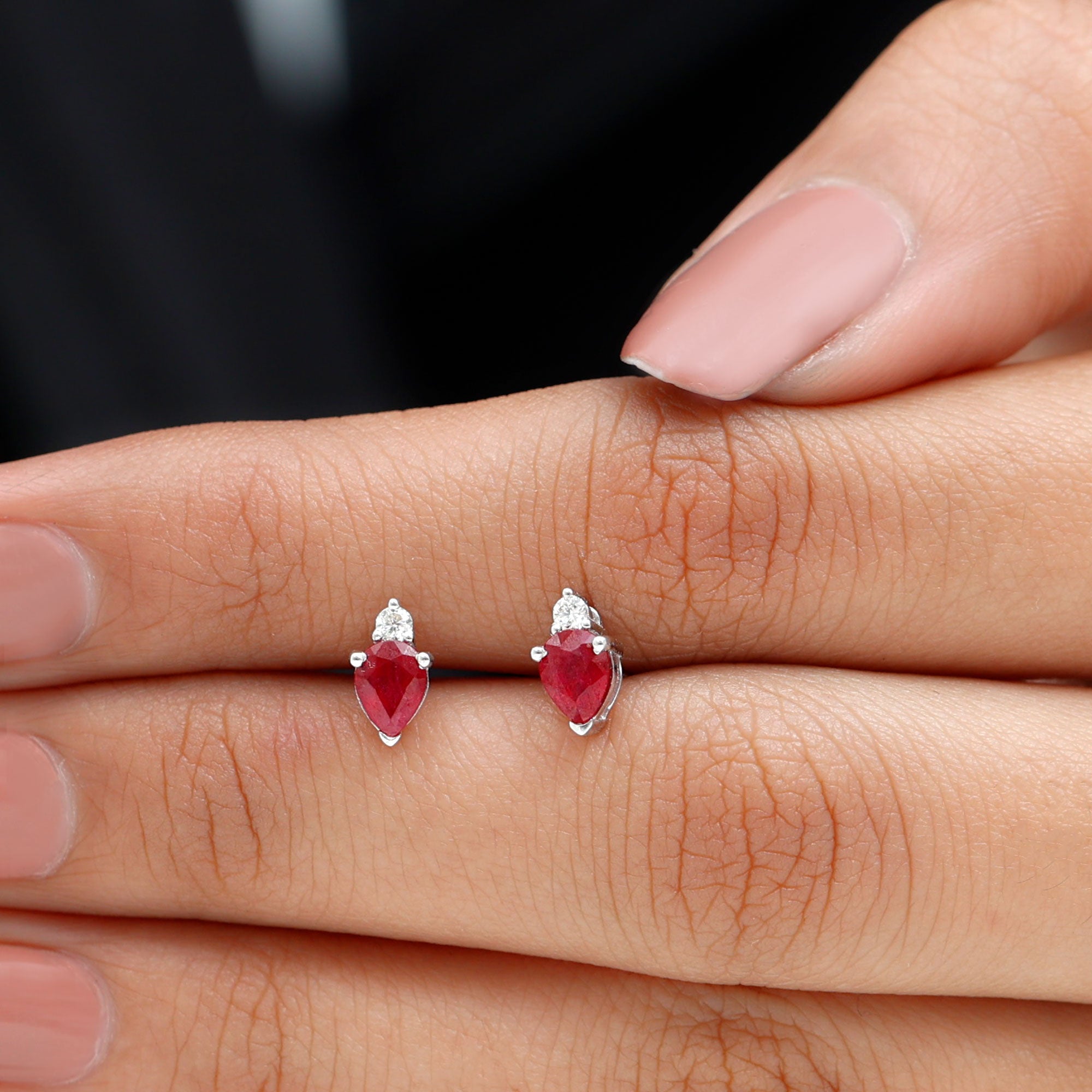 1.25 CT Pear Cut Ruby and Diamond Dainty Stud Earrings