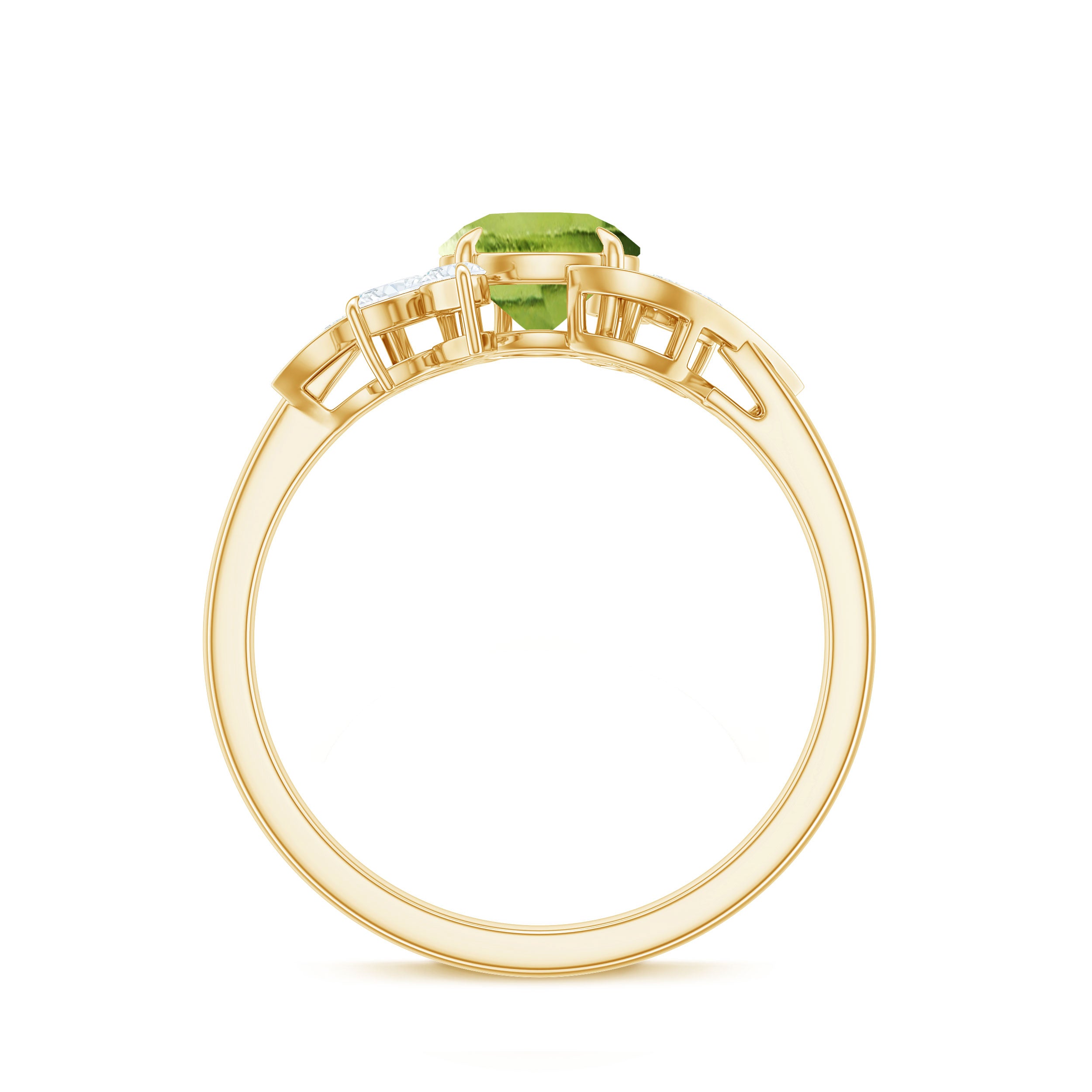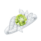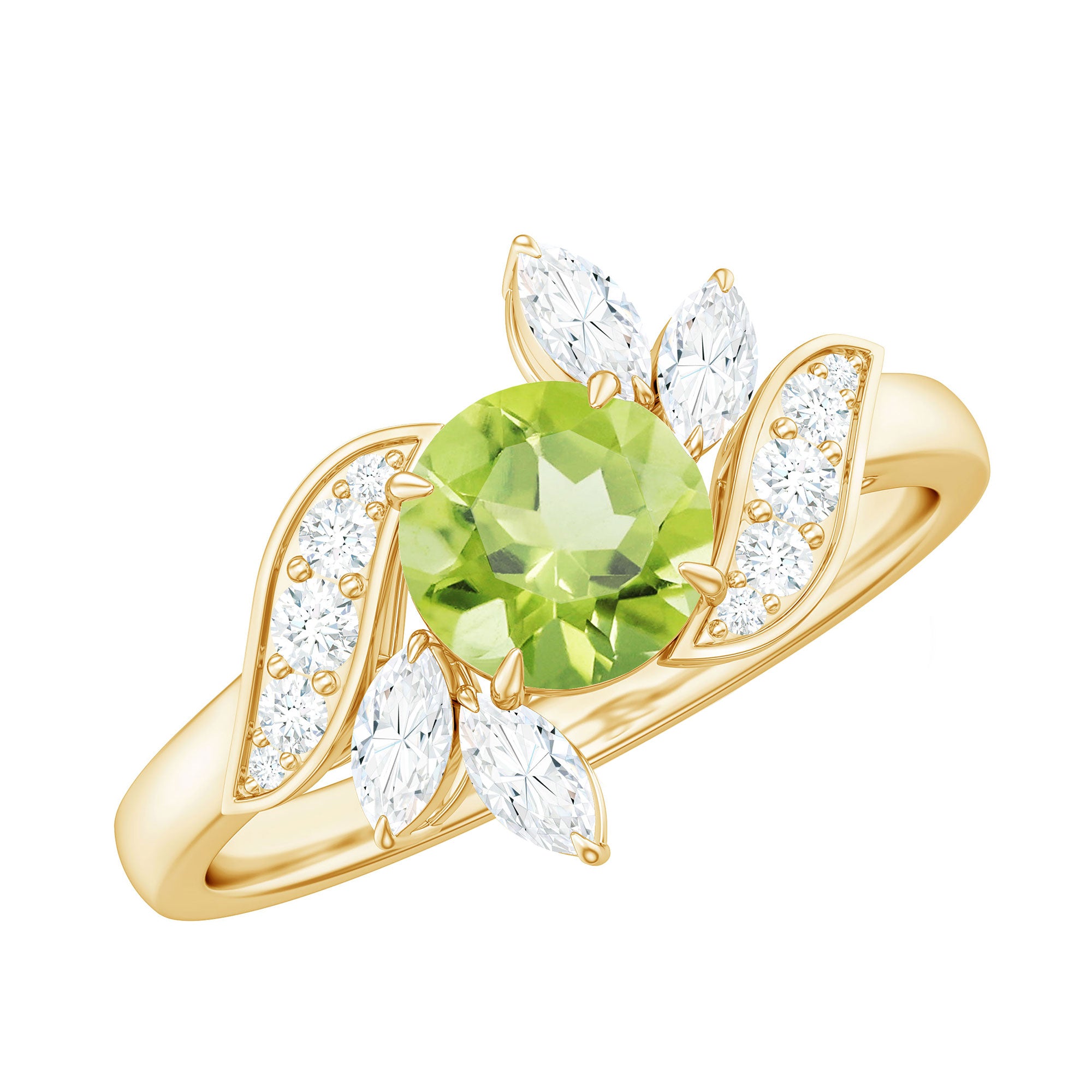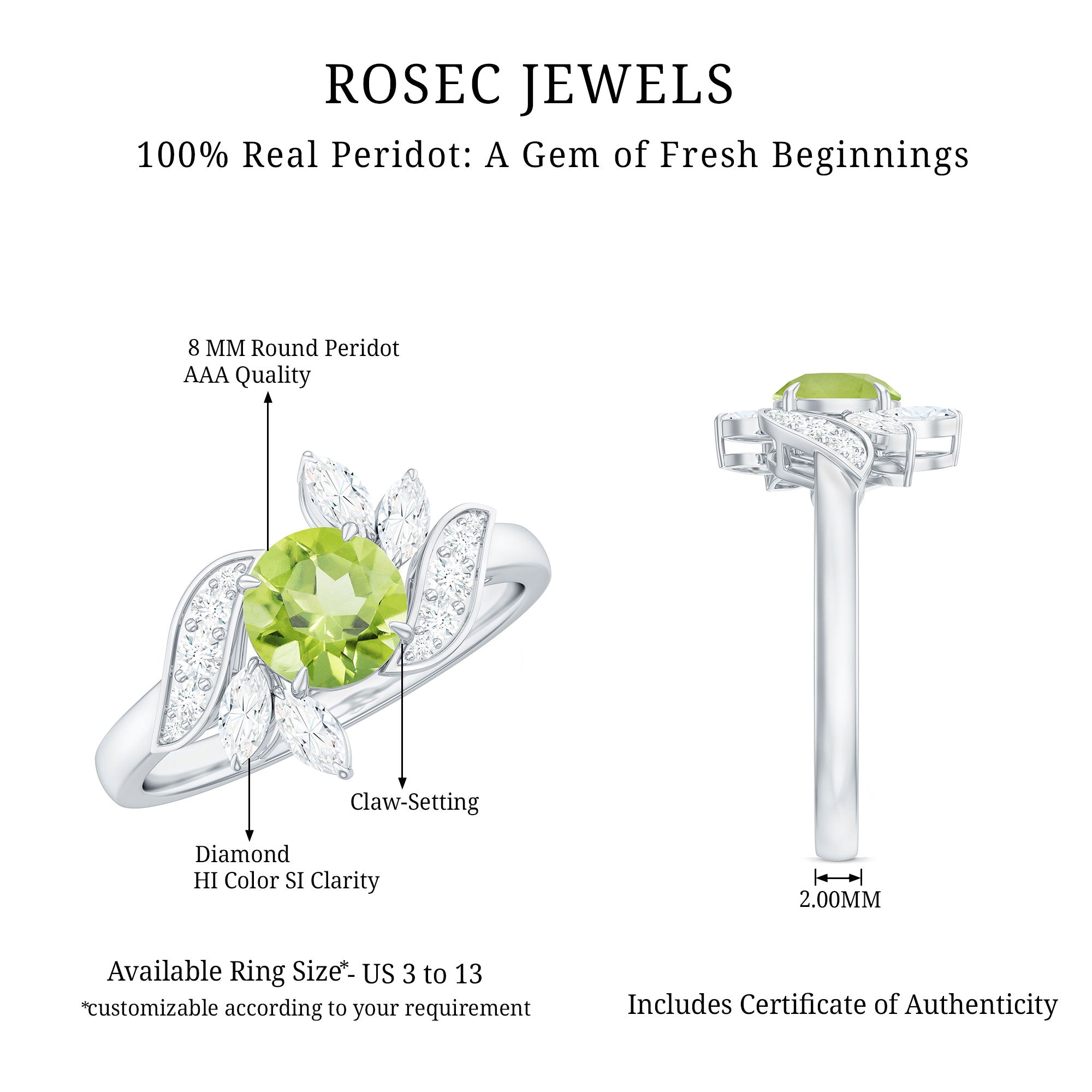 Every moment of yours is worth celebrating, so why not celebrate it with an alluring fine jewelry. This Peridot Engagement Ring is exactly what your are looking for your partner, Round Peridot and Marquise Diamond is held in Claw Setting and Round Diamond is held in prong setting are featured in leaf pattern. Show your love to your partner with this Vintage Peridot Ring.