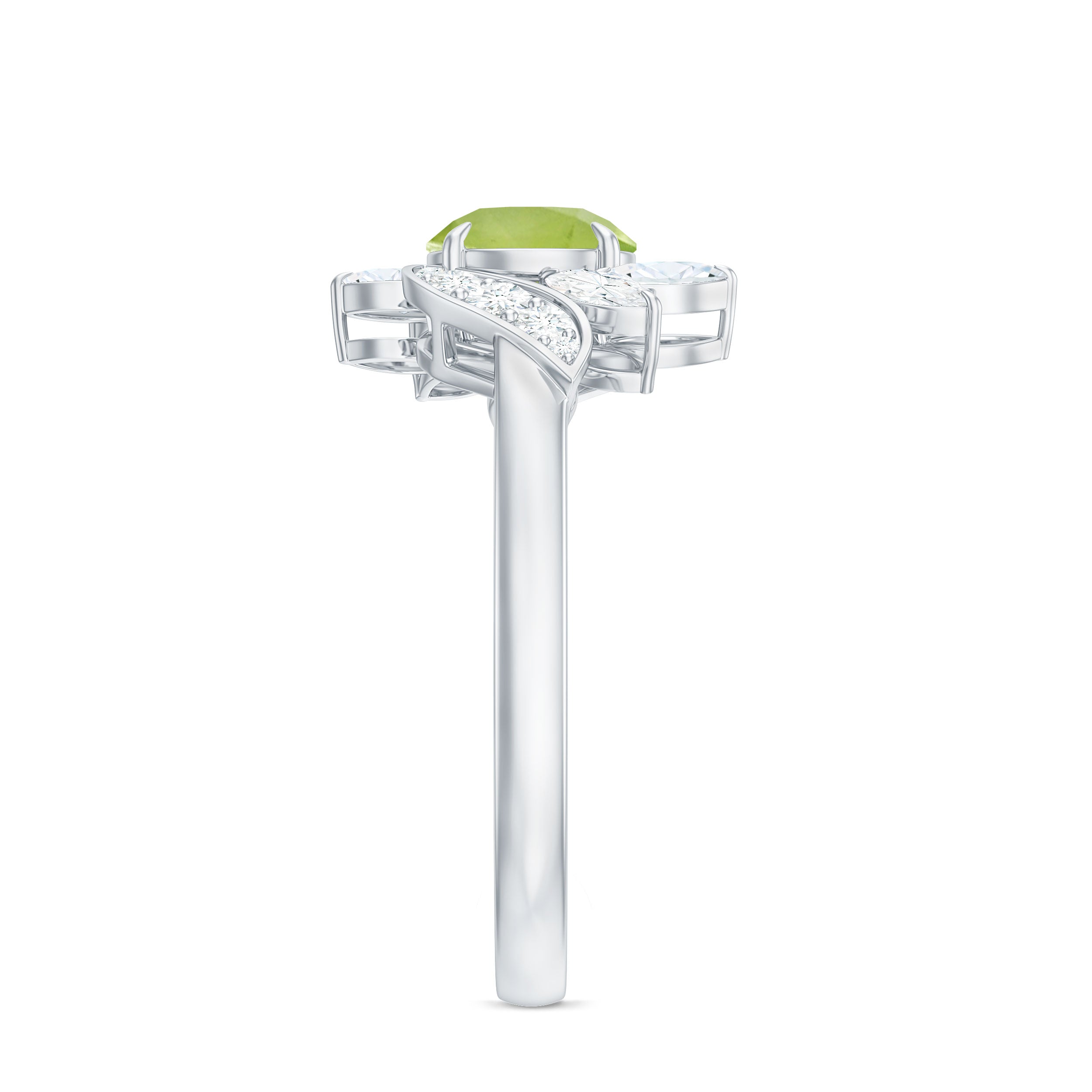 1.25 CT Peridot Flower Engagement Ring with Diamond