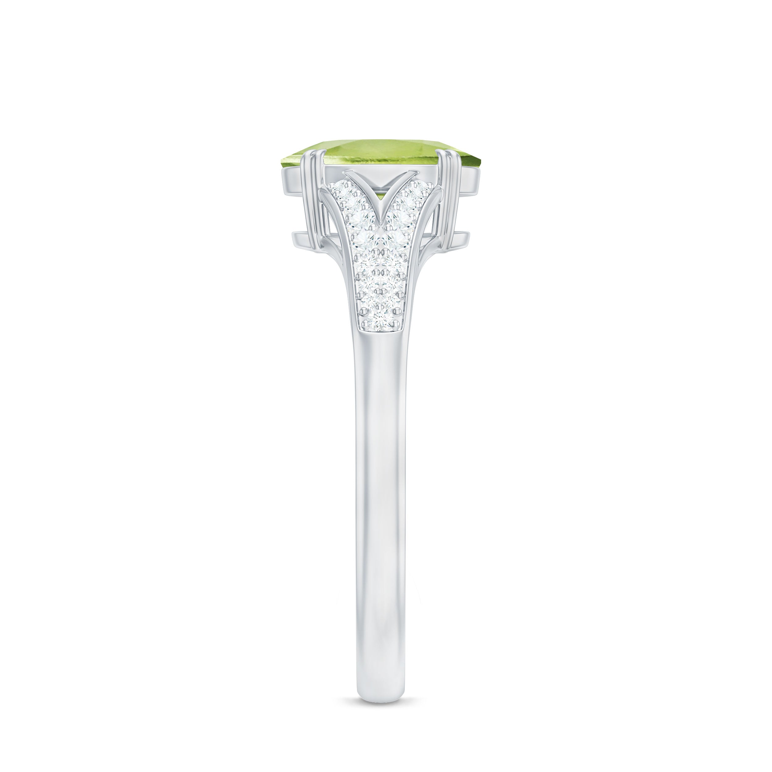 1.25 CT Peridot Solitaire Engagement Ring with Diamond Accent
