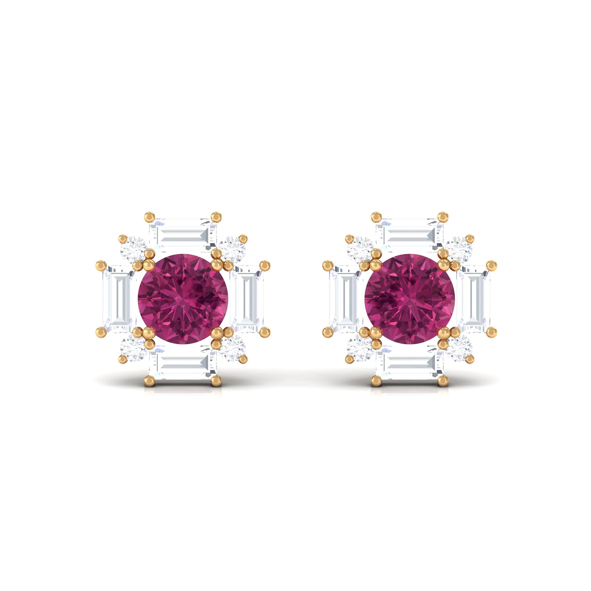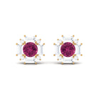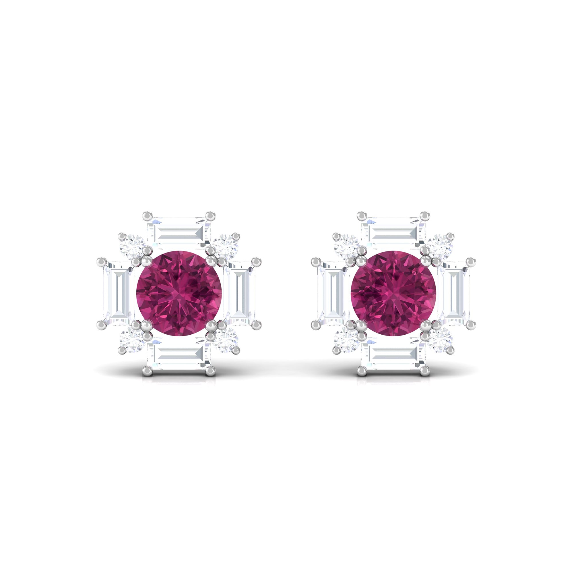Adorned with a captivating round-shaped Pink Tourmaline as the focal point, these stud earrings feature an elegant prong setting surrounded by a halo of diamonds. Designed as a perfect accessory for women, these earrings add a touch of sophistication to any ensemble.