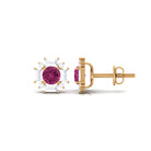 1.25 CT Pink Tourmaline and Diamond Halo Stud Earrings