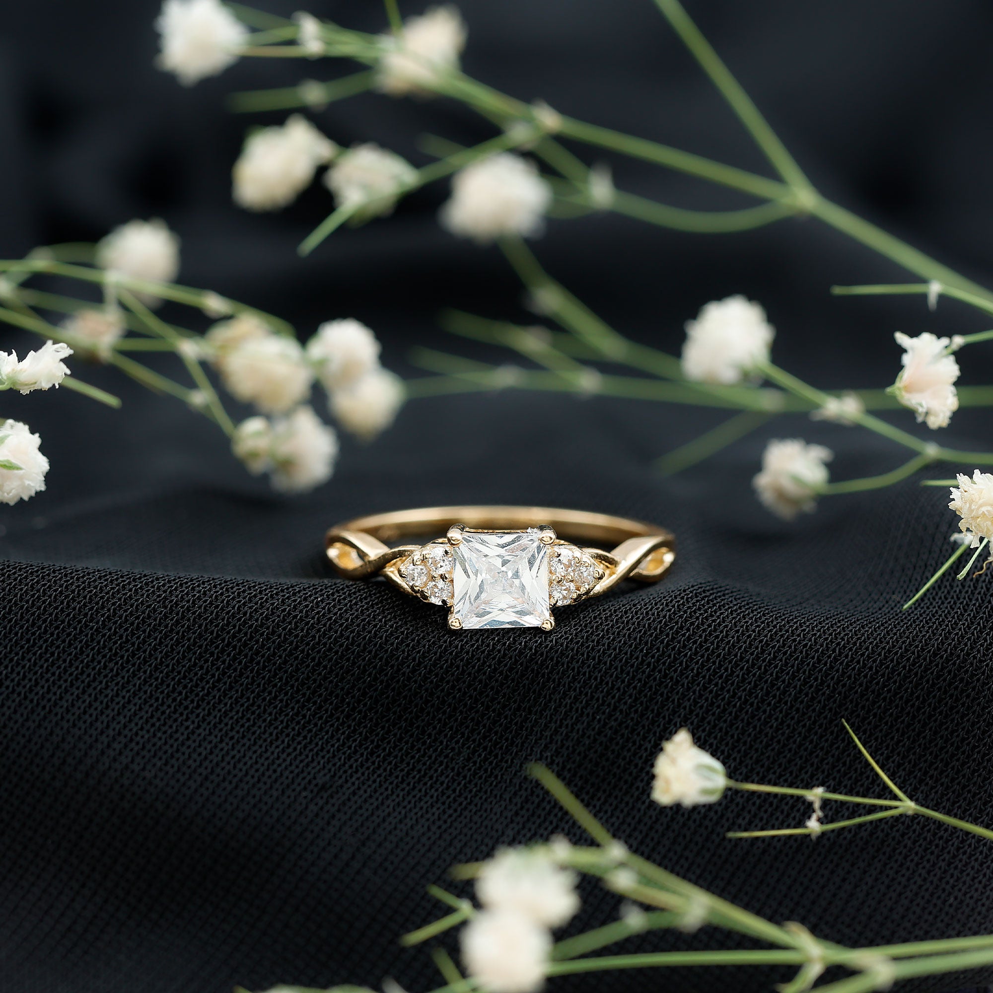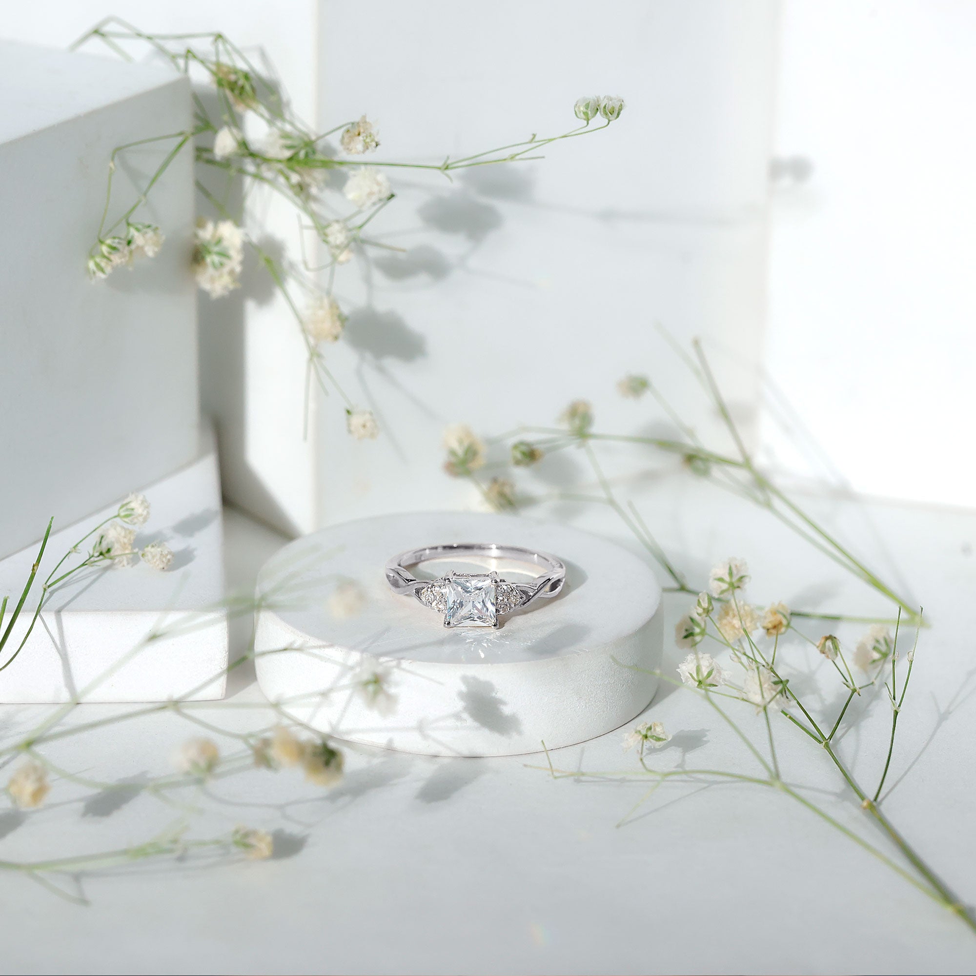 1.25 CT Princess Cut Cubic Zirconia Crossover Engagement Ring