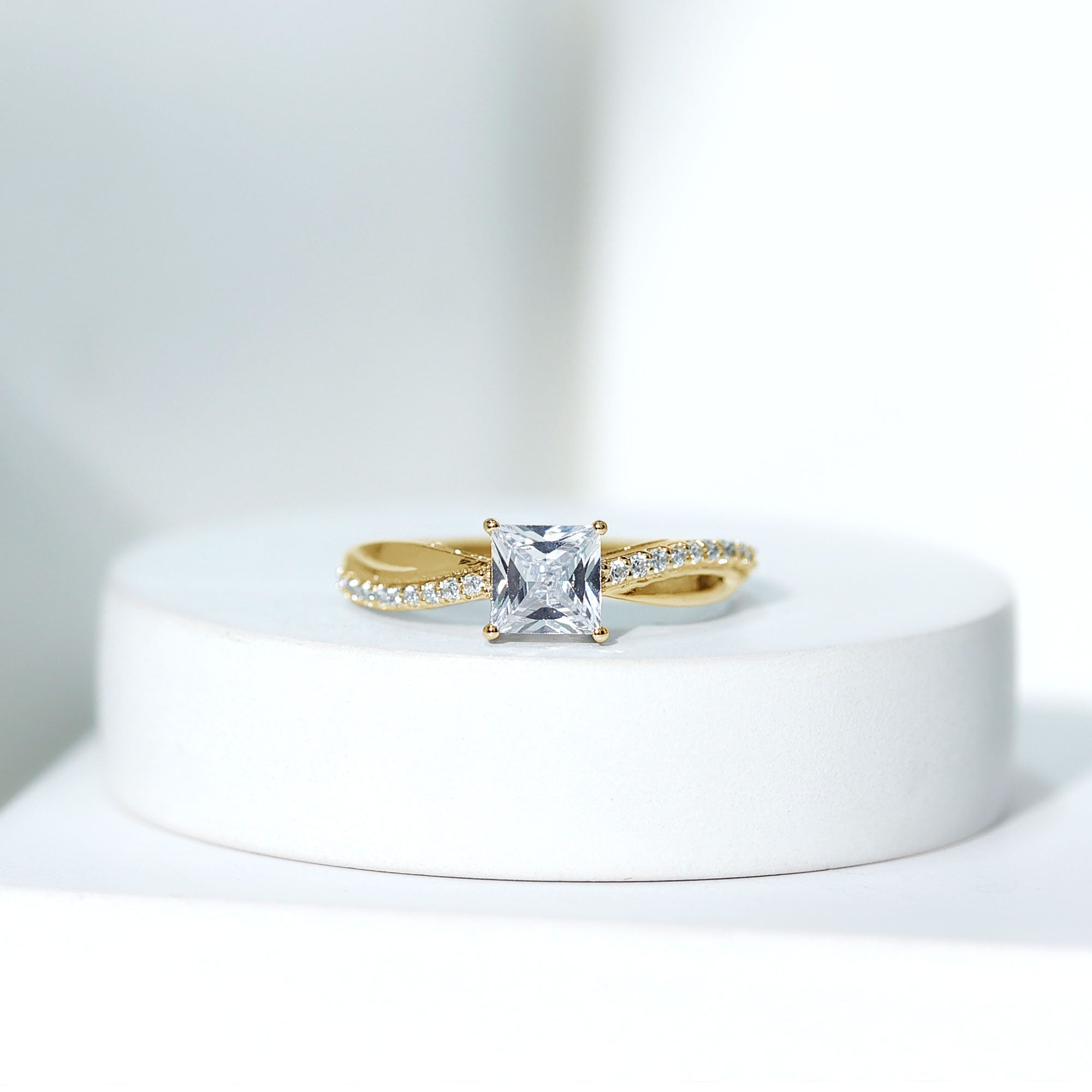 1.25 CT Princess Cut Cubic Zirconia Solitaire Engagement Ring in Gold