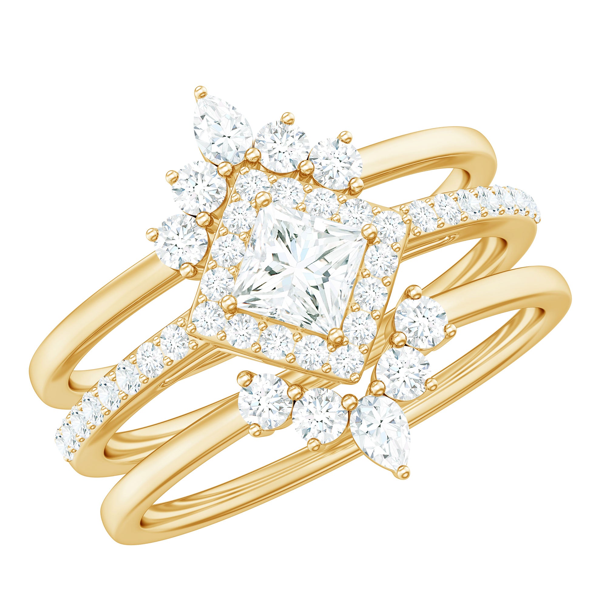 1.25 CT Princess Cut Zircon Trio Wedding Ring Set in Gold