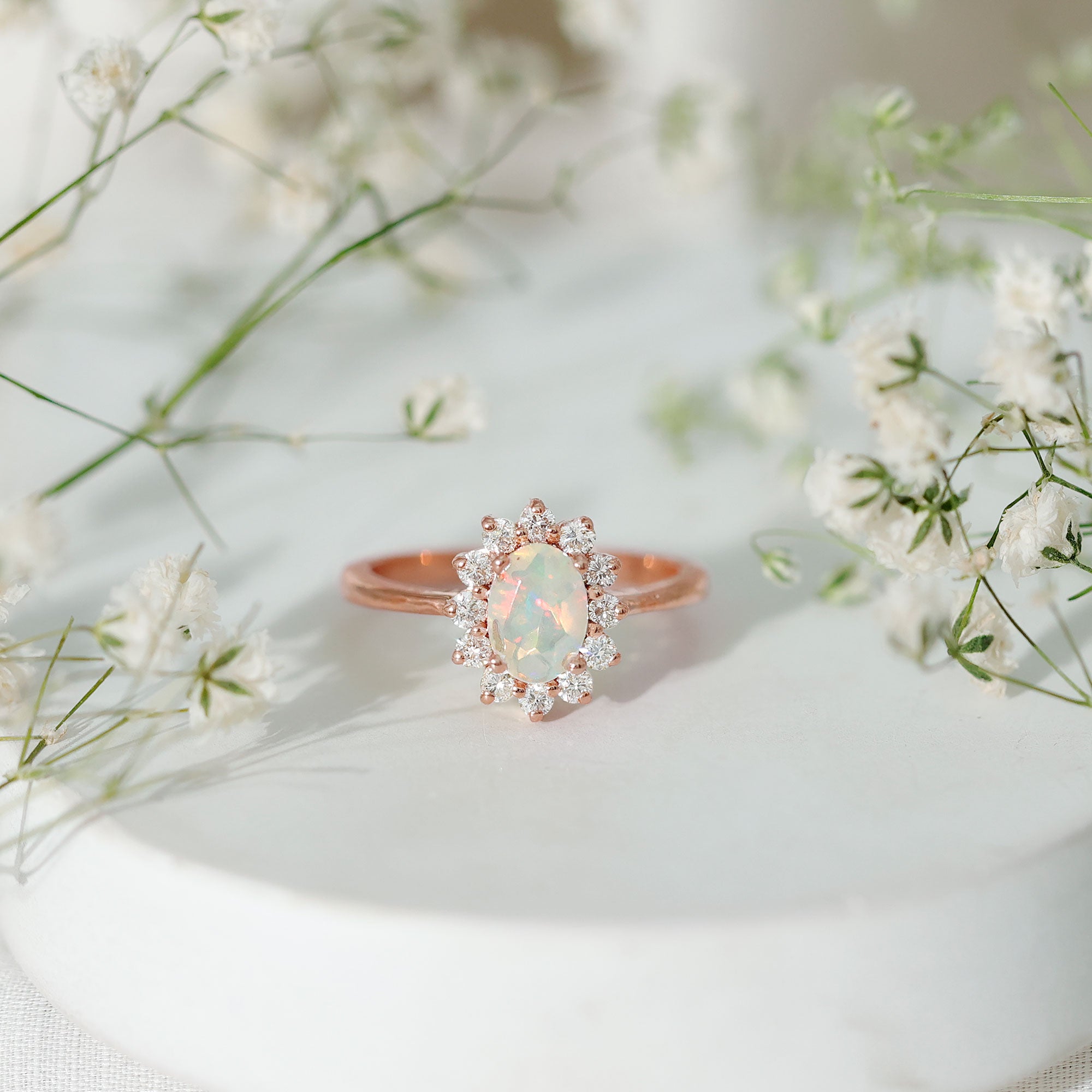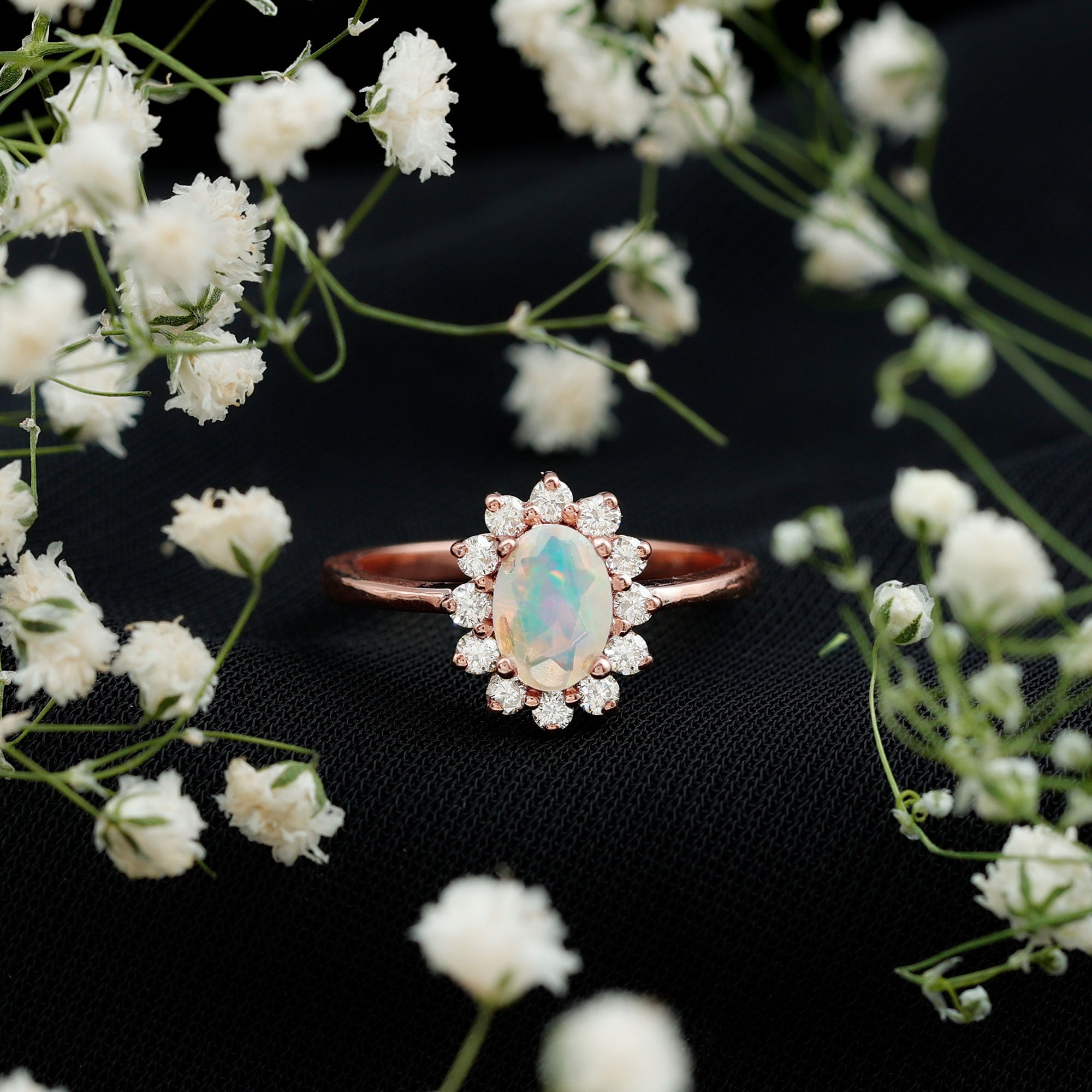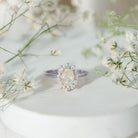 Certified Real Ethiopian Opal Oval Engagement Ring with Diamond Halo