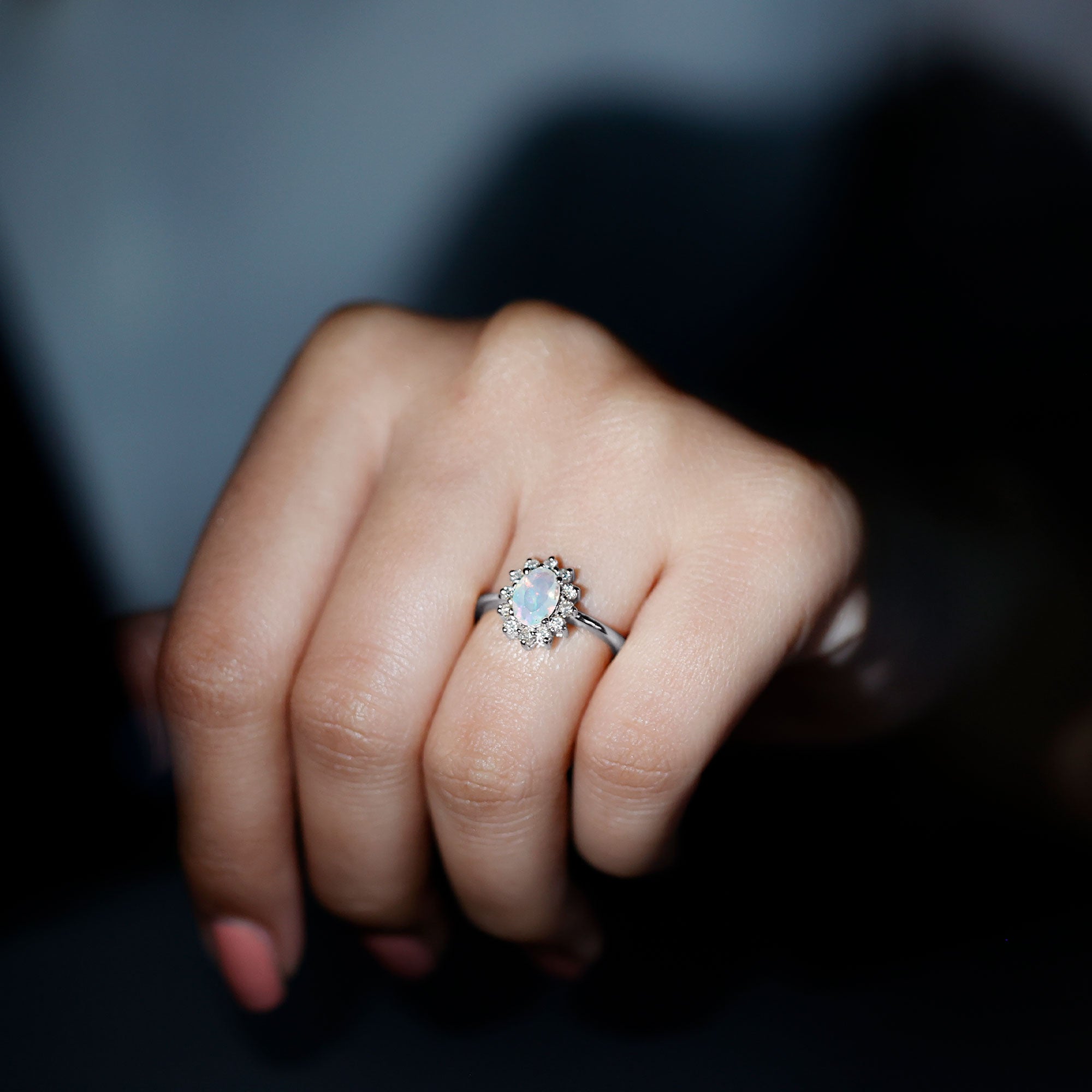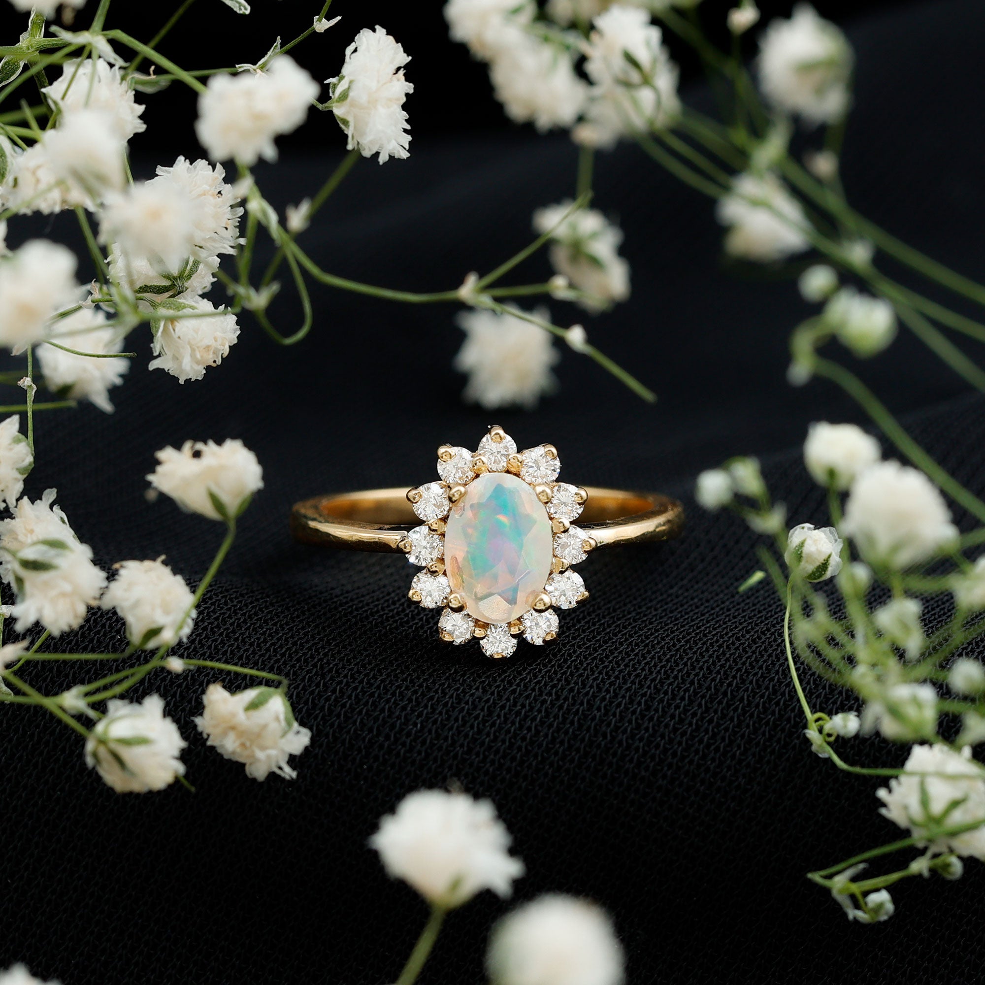 Turn your love story into a work of art with this Ethiopian Opal Engagement Ring, where opulent color meets timeless romance. At the center of this breathtaking design lies a stunning 5X7 mm Oval Shape Ethiopian Opal set in Prong Setting, showcasing its signature play of color that shifts with every glance. Surrounded by a Halo of sparkling Diamond stones, this Oval Engagement Ring exudes a delicate balance of modern elegance and vintage charm. The natural beauty of opal shines through, while the diamond halo enhances its brilliance, making this Oblong Engagement Ring a true showstopper. Whether you are proposing or simply marking a special milestone, this Opal and Diamond Engagement Ring speaks volumes about your unique love. Ethically sourced and meticulously crafted, this Halo Engagement Ring with Opal comes ready to dazzle in a signature jewelry box, making it a perfect gift or a well-deserved treat. Available in a variety of sizes, this Opal Diamond Ring is designed to fit her perfectly, ensuring she can wear it every day as a reminder of your forever. Vibrant, timeless and full of heart, this ring is a radiant symbol of love that is as rare and special as she is.