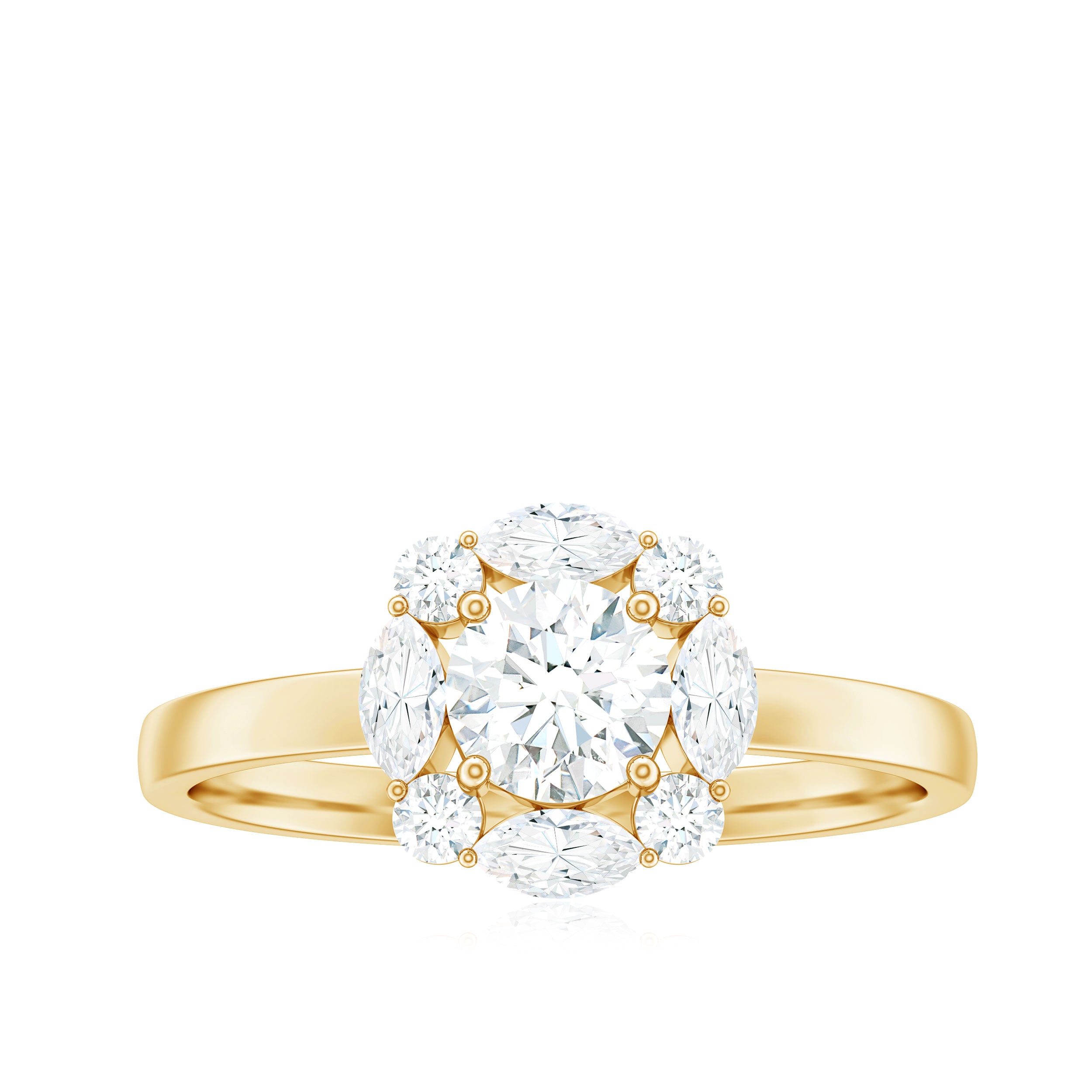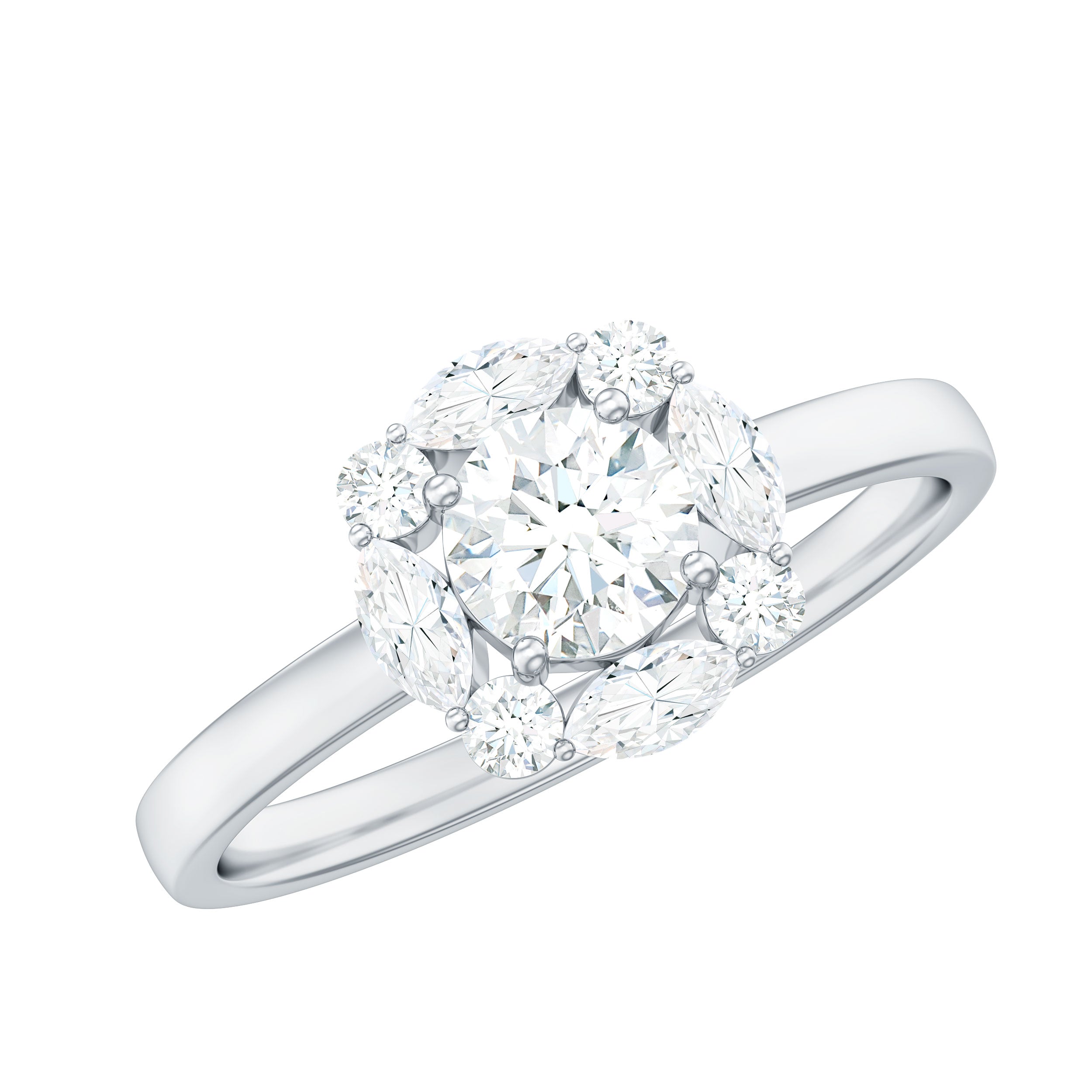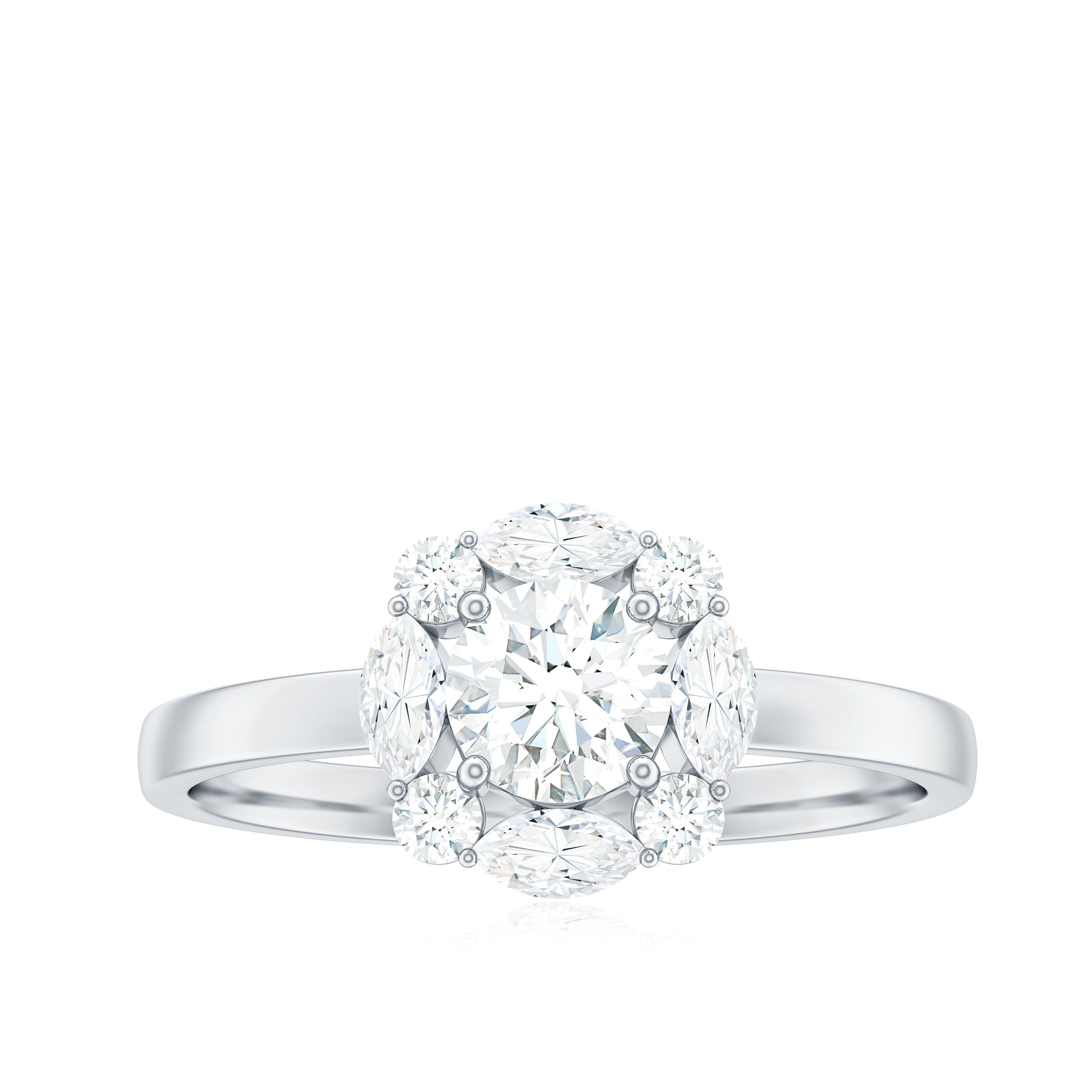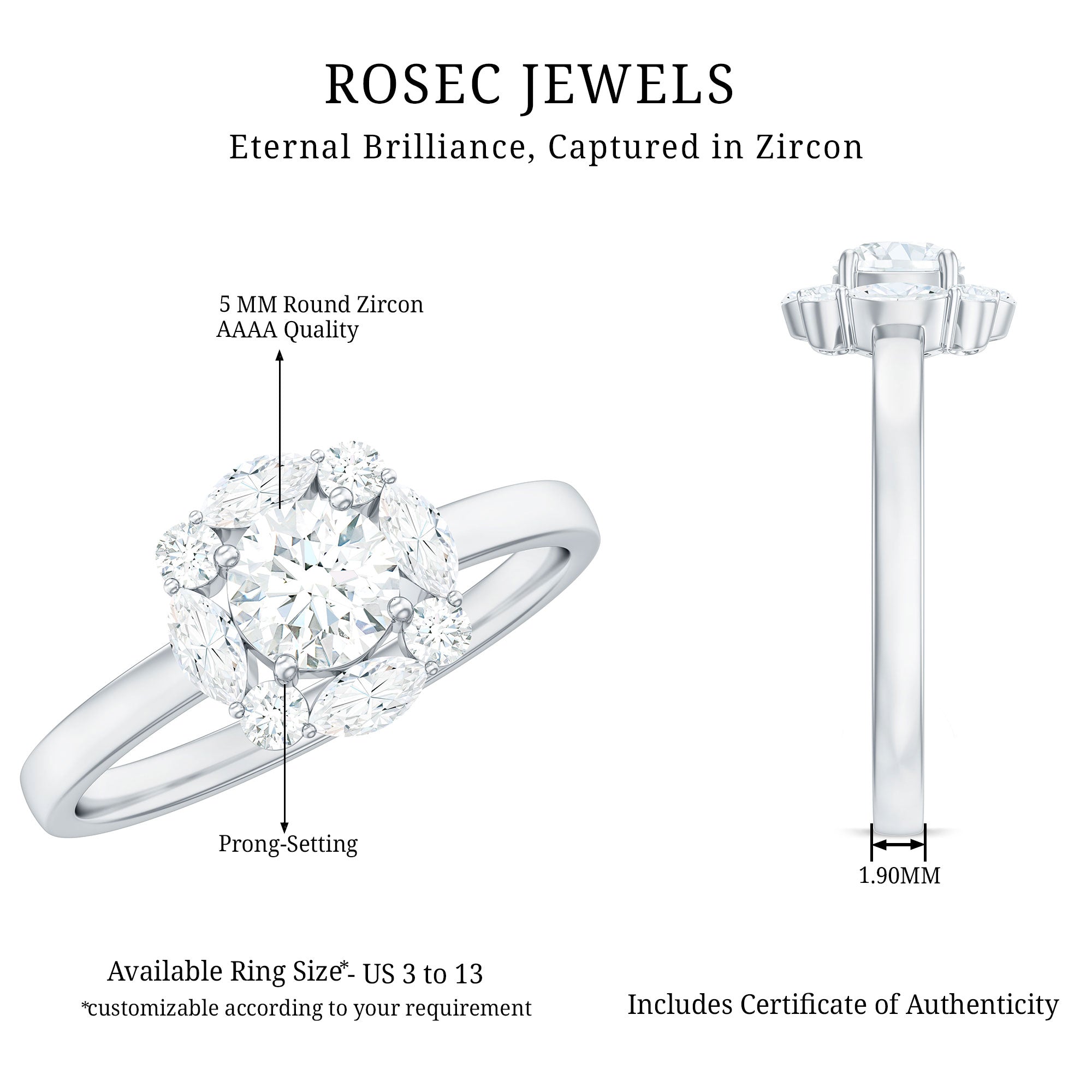 Surprise your love with this elegant Minimal Engagement Ring that has Round Shape Zircon as a center stone in Prong Setting encircled with Round and Marquise Cut Zircon Halo. This Cubic Zirconia Ring is a perfect symbol of love and commitment, and is a great choice for anyone looking for a simple yet elegant engagement ring.