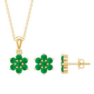 1.25 CT Round Cut Emerald Floral Pendant and Earring Set