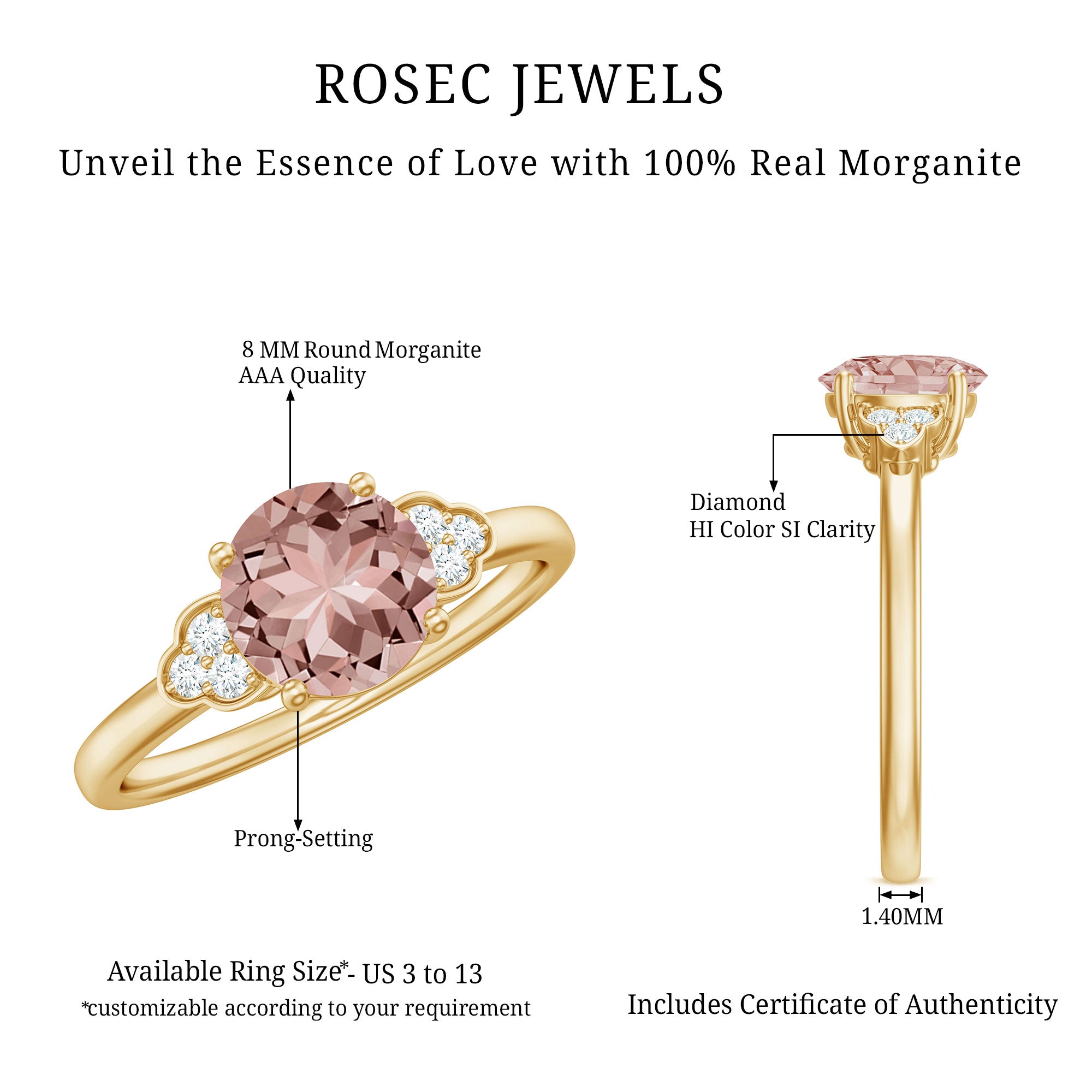 1.25 CT Round Morganite Solitaire Engagement Ring with Diamond