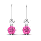 1.25 CT Simple Pink Sapphire Drop Earrings with Diamond